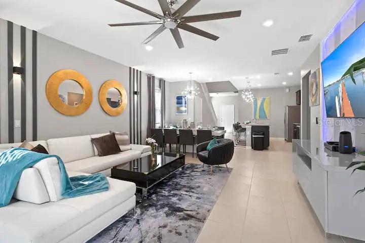 HUGE PRICE IMPROVEMENT! This beautiful vacation home locates in highly desirable Windsor Island Resort. House features with a swimming pool & spa, customized special Moana-themed bedroom, rooms are decorated with the most popular cartoon characters, Walk through the front porch and be amazed by this unique SINGLE FAMILY OME, with ample spaces and a LANAI, POOL, and SPA DECK. Community is specified to use as short-term rental with no minimum days for stay. Amazing community amenities feature with resort pool, lazy river, water slides, outdoor bar and dining, 9-Hole mini golf Course fitness center, basketball courts and so much more! Monthly HOA included all maintenance fee such as lawn care and trash removal. Don't miss this great opportunity to own your dream vacation home and get great rental income. Schedule a showing today!