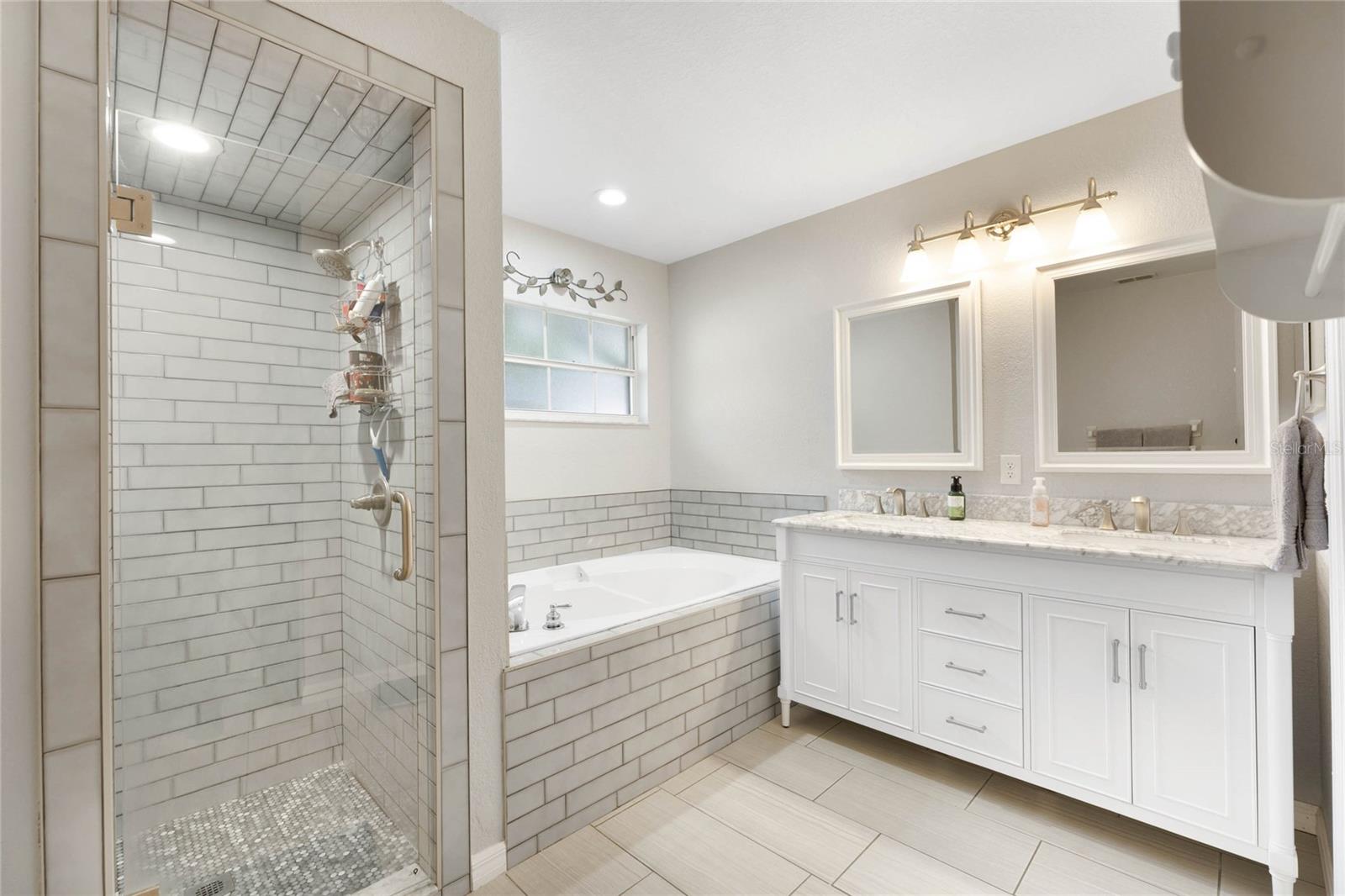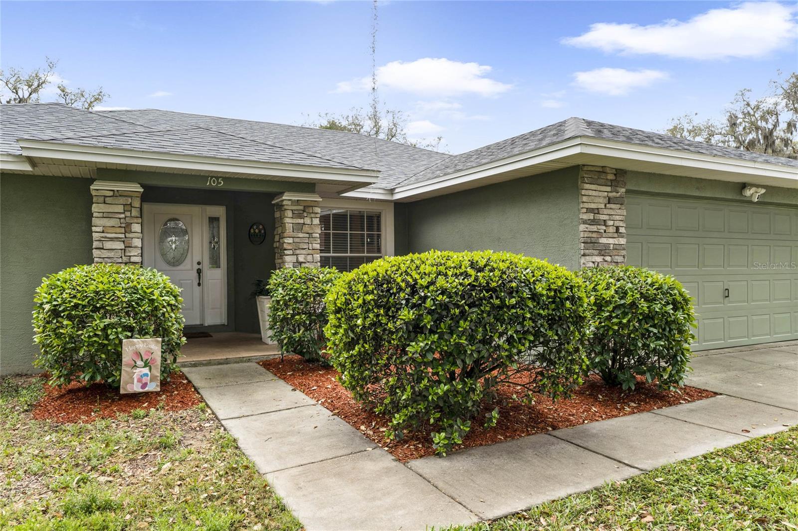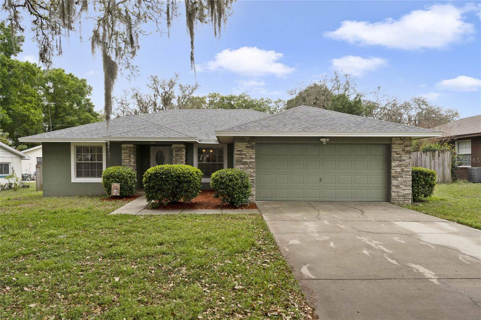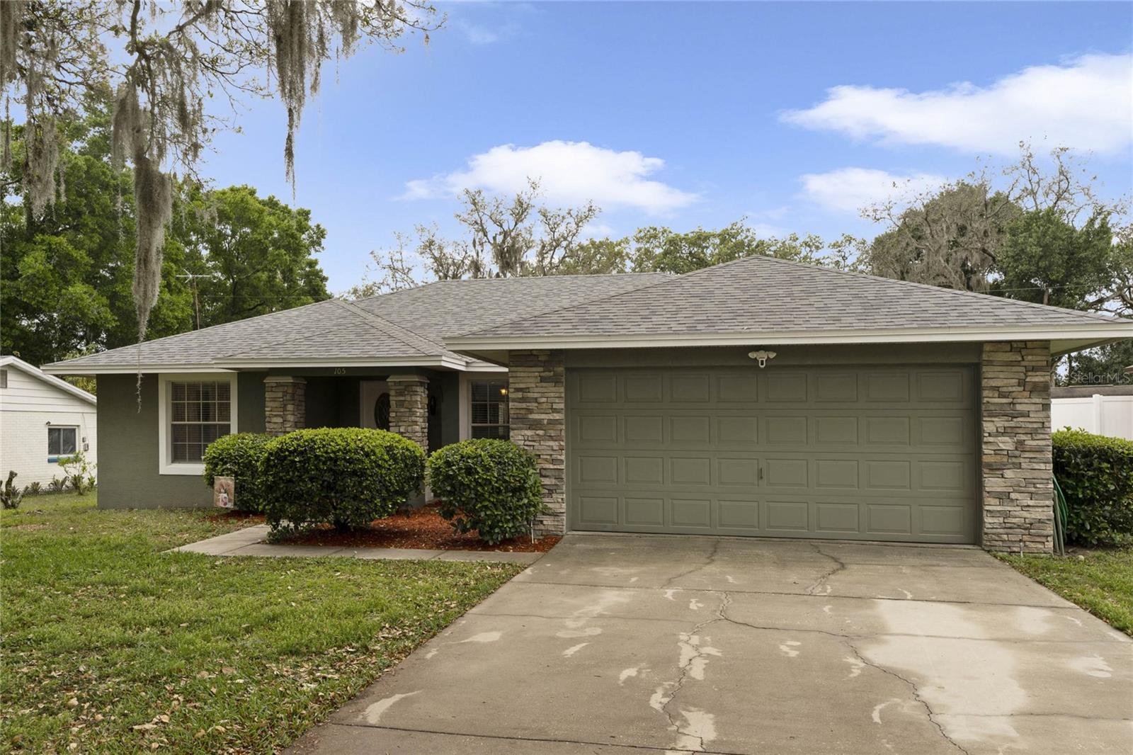 Welcome to a stunning 3 bedroom, 2 bath home on an oversized lot with more than .25 acres and NO HOA! Approaching the home you'll notice a deep driveway, modern colors, and elegant stacked stone accents. Passing by manicured landscaping you'll approach a large covered front porch with upgraded front door and sidelight. Entering the front door you'll be impressed with tall, vaulted ceilings plus ceiling fans and large ceramic floor tiles. A spacious formal dining area has ample seating for 6 adults in front of a large bay window with decorative chandelier. A formal living room works great as a second flex space and leads to the huge, screened in back porch through a set of sliding glass doors. The kitchen is open to the family and features lots of storage along with a full set of coordinated black appliances that include a microwave-hood, range, dishwasher, and refrigerator. The large primary bedroom includes a walk-in closet, ceiling fan, and stunning remodeled primary bathroom with dual vanities, a soaking tub, walk-in shower with frameless glass entry accented with tasteful penny floor tile and subway wall tile. This home features two additional full size bedrooms and another full bath with large vanity and a tub/shower combo. The backyard is huge and fully fenced with a shed for even more storage, plus an extra covered parking pad that's perfect for a boat, side by side, or a project vehicle. Schedule a private showing today!