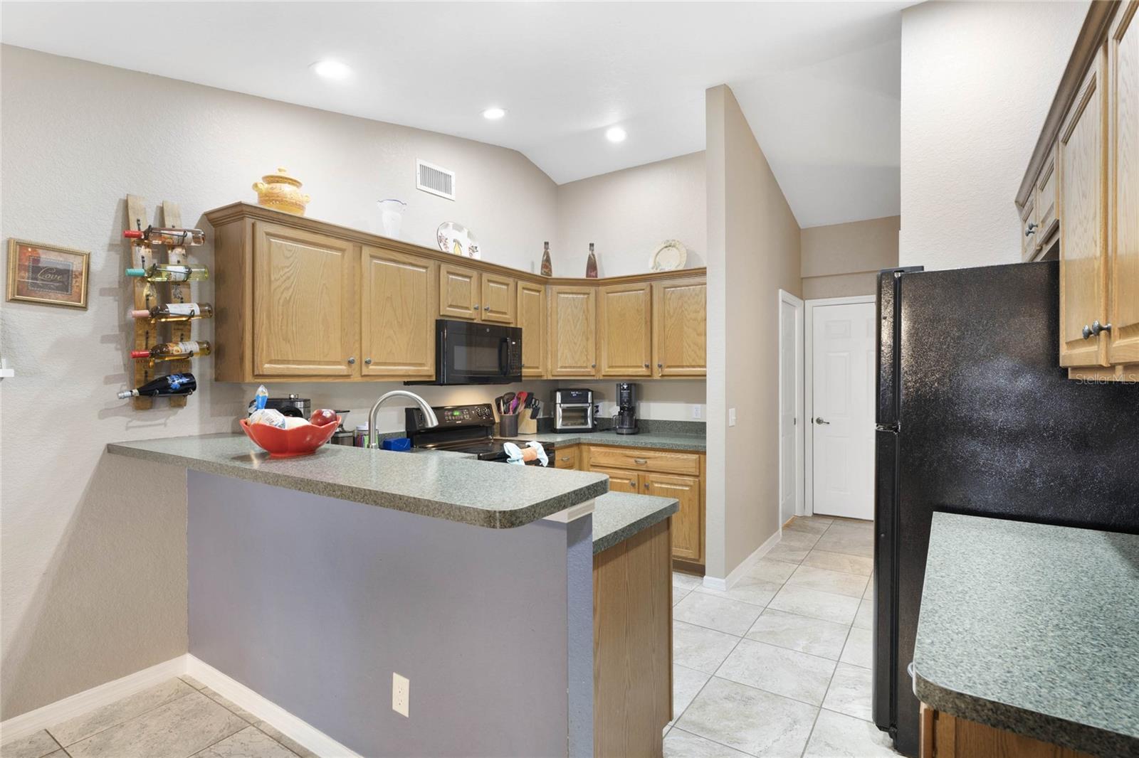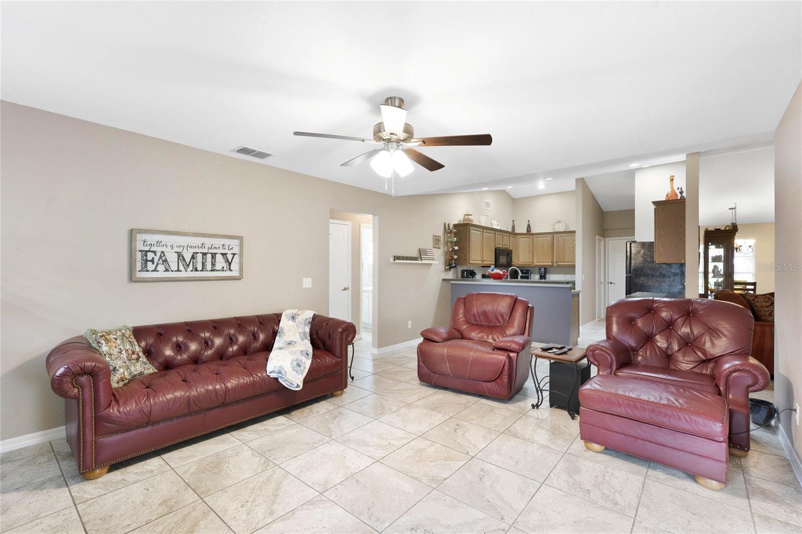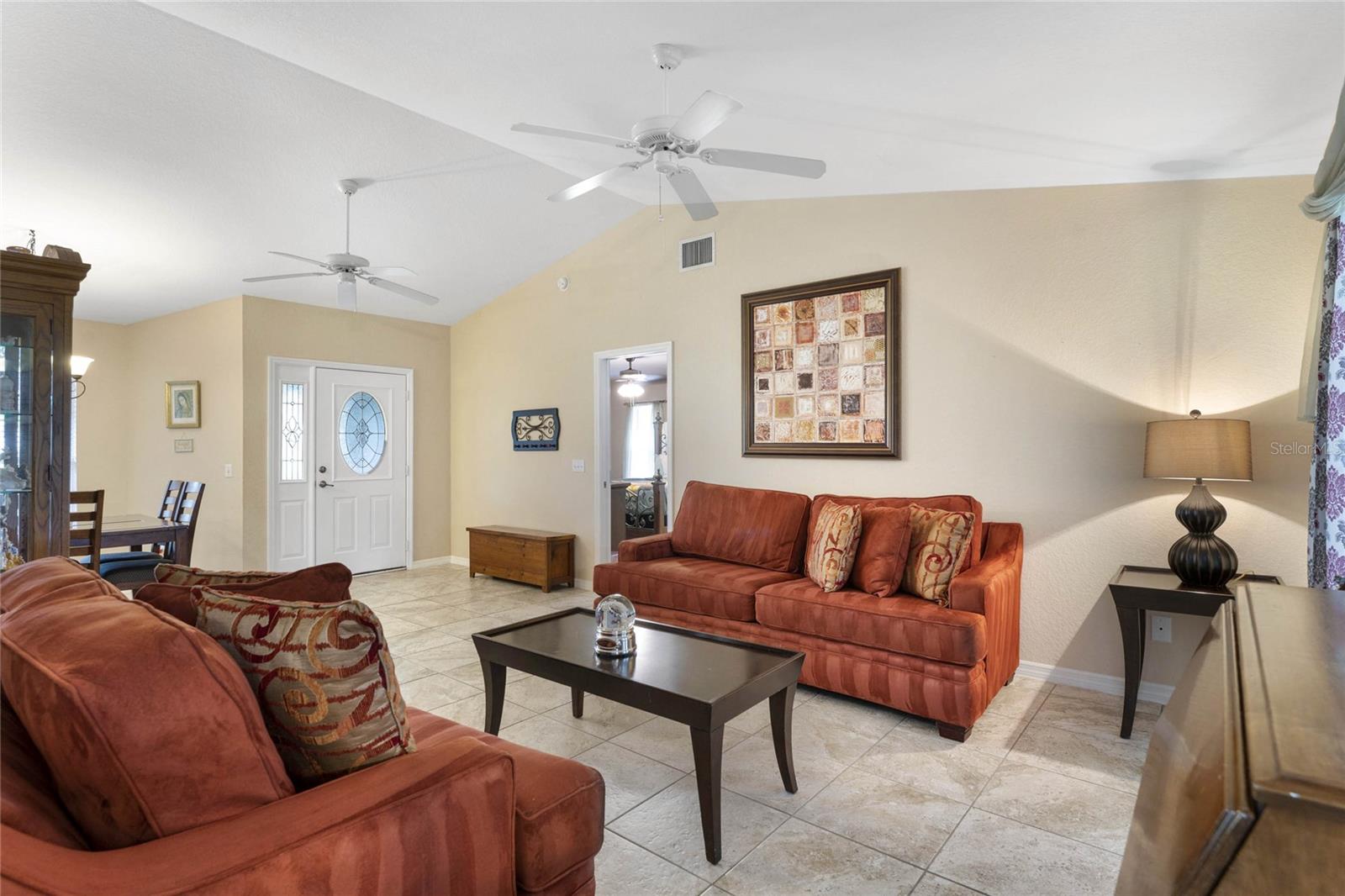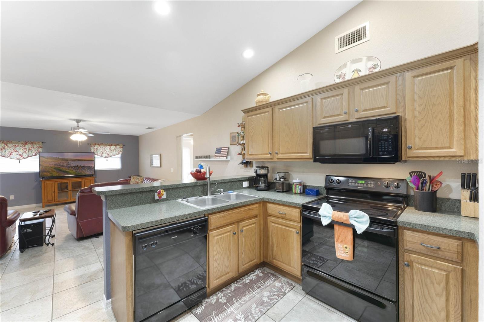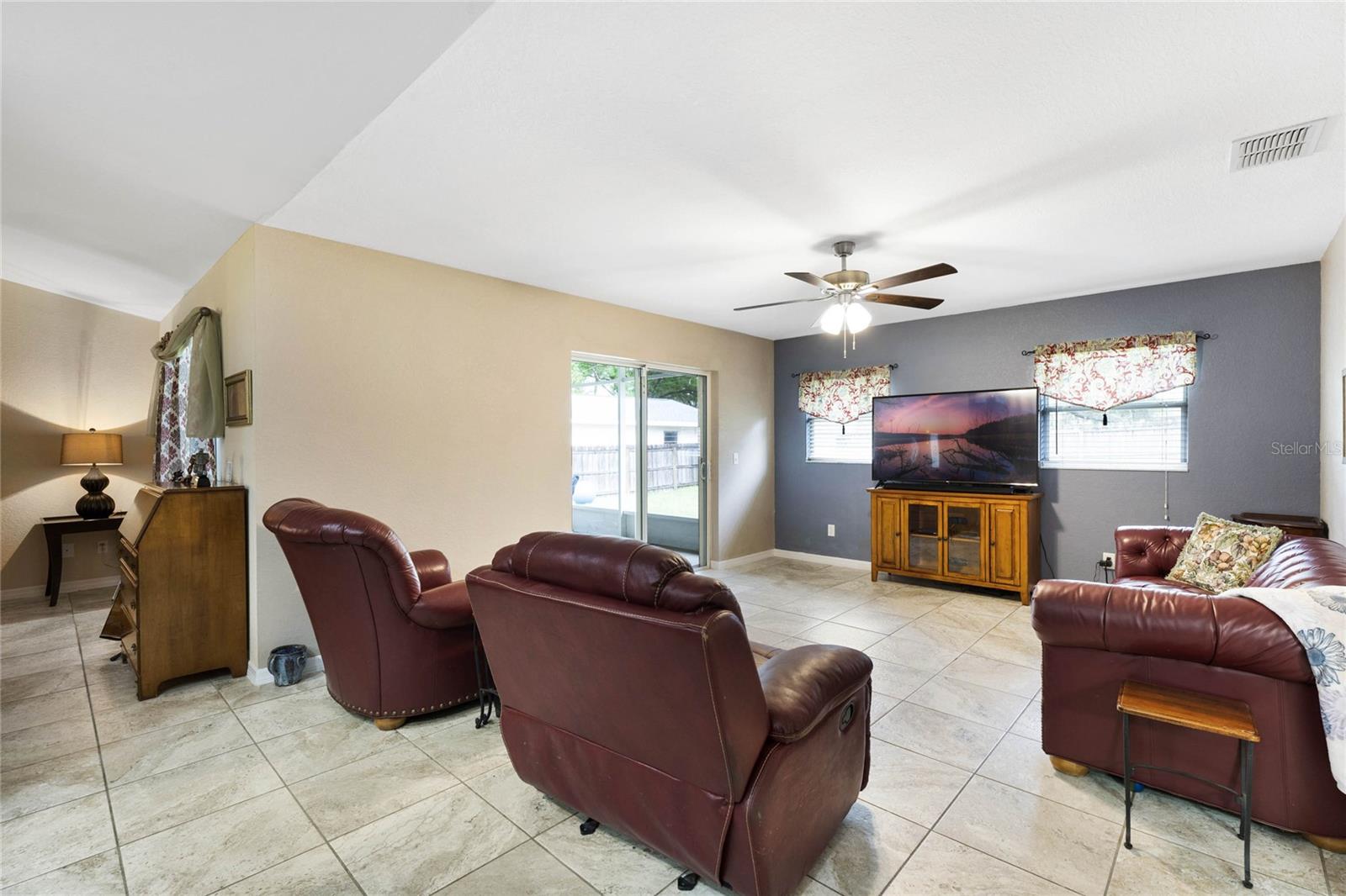 Welcome to a stunning 3 bedroom, 2 bath home on an oversized lot with more than .25 acres and NO HOA! Approaching the home you'll notice a deep driveway, modern colors, and elegant stacked stone accents. Passing by manicured landscaping you'll approach a large covered front porch with upgraded front door and sidelight. Entering the front door you'll be impressed with tall, vaulted ceilings plus ceiling fans and large ceramic floor tiles. A spacious formal dining area has ample seating for 6 adults in front of a large bay window with decorative chandelier. A formal living room works great as a second flex space and leads to the huge, screened in back porch through a set of sliding glass doors. The kitchen is open to the family and features lots of storage along with a full set of coordinated black appliances that include a microwave-hood, range, dishwasher, and refrigerator. The large primary bedroom includes a walk-in closet, ceiling fan, and stunning remodeled primary bathroom with dual vanities, a soaking tub, walk-in shower with frameless glass entry accented with tasteful penny floor tile and subway wall tile. This home features two additional full size bedrooms and another full bath with large vanity and a tub/shower combo. The backyard is huge and fully fenced with a shed for even more storage, plus an extra covered parking pad that's perfect for a boat, side by side, or a project vehicle. Schedule a private showing today!