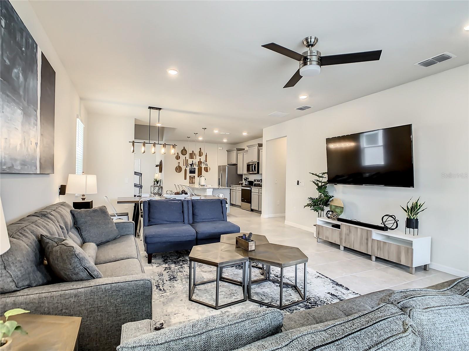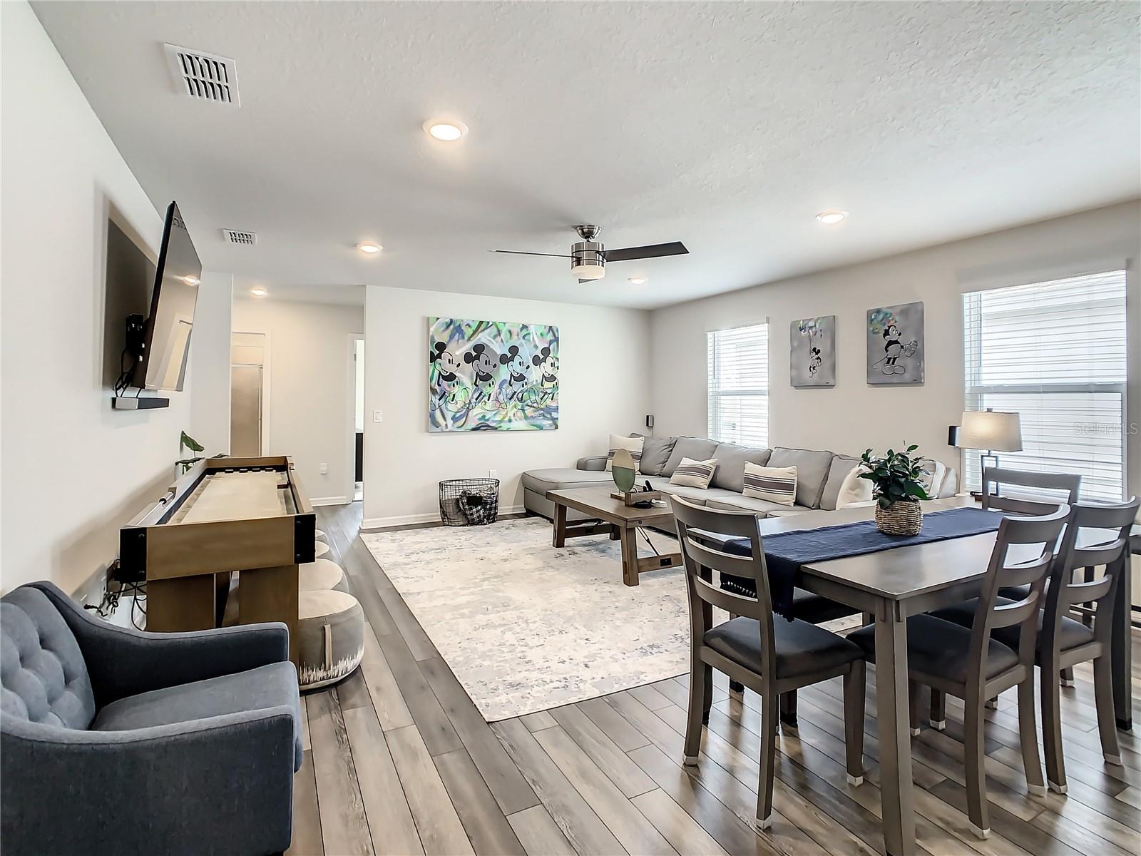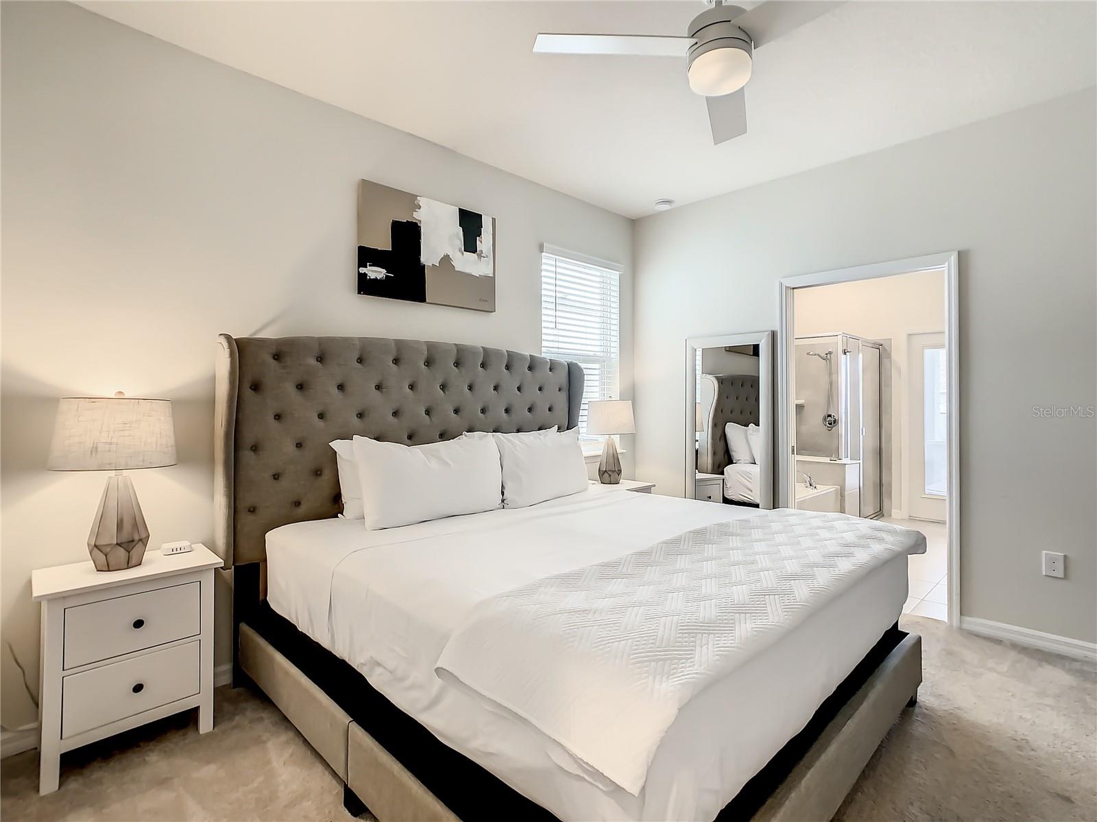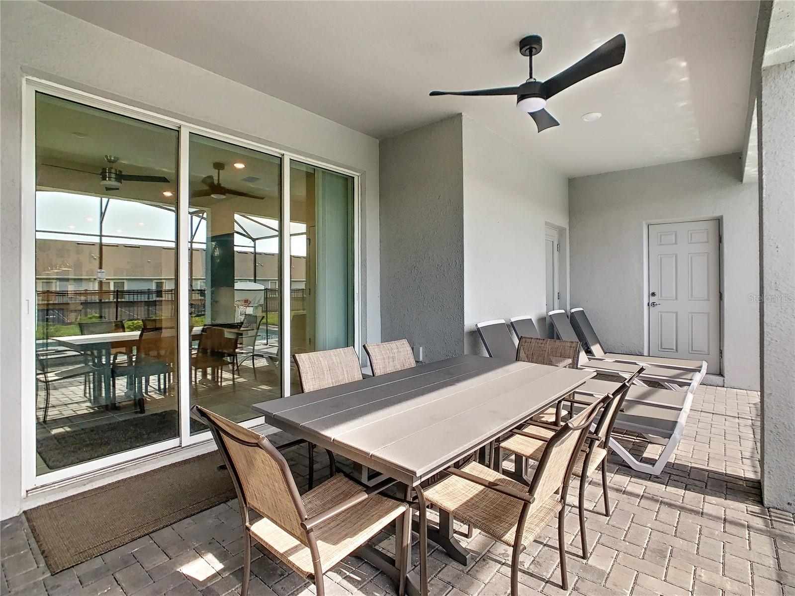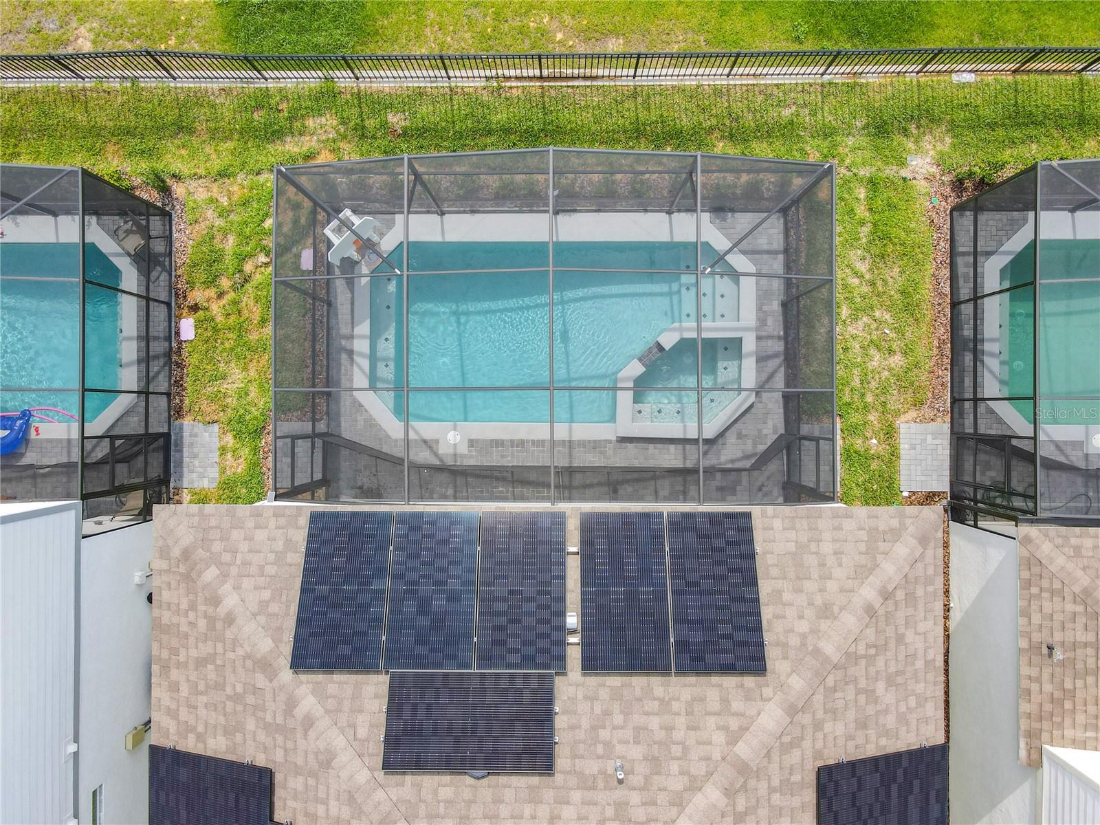 Indulge in the blend of luxury and energy efficiency at this stunning 7-bedroom, 5.5-bath vacation home situated in the esteemed gated community of Windsor Island. Benefit from reduced energy costs with the installation of solar panels while reveling in the allure of this nearly new residence. Spanning over 3,200 square feet, this capacious home is impeccably crafted and primed for rental opportunities. Upon entering, you are welcomed by an impressive foyer leading to a well-appointed kitchen featuring stainless steel appliances, a breakfast bar island, and an adjoining dining area. The commodious family room and sitting room offer ample space for relaxation and quality time with family and friends. Escape to the expansive master suite, a serene retreat boasting a luxurious en-suite bathroom. Outdoors, a large screened-in pool and spa beckon, providing a refreshing oasis for relaxation. The screened porch and spacious patio offer shaded spots for dining and enjoying the peaceful surroundings. The community itself provides a plethora of amenities including a lazy river, a resort-sized pool, tennis courts, sand volleyball, basketball courts, an on-site restaurant, a sundry shop, a fitness center, and an arcade. Additionally, the property is just minutes away from the renowned attractions of Walt Disney World and other Central Florida amusement parks.