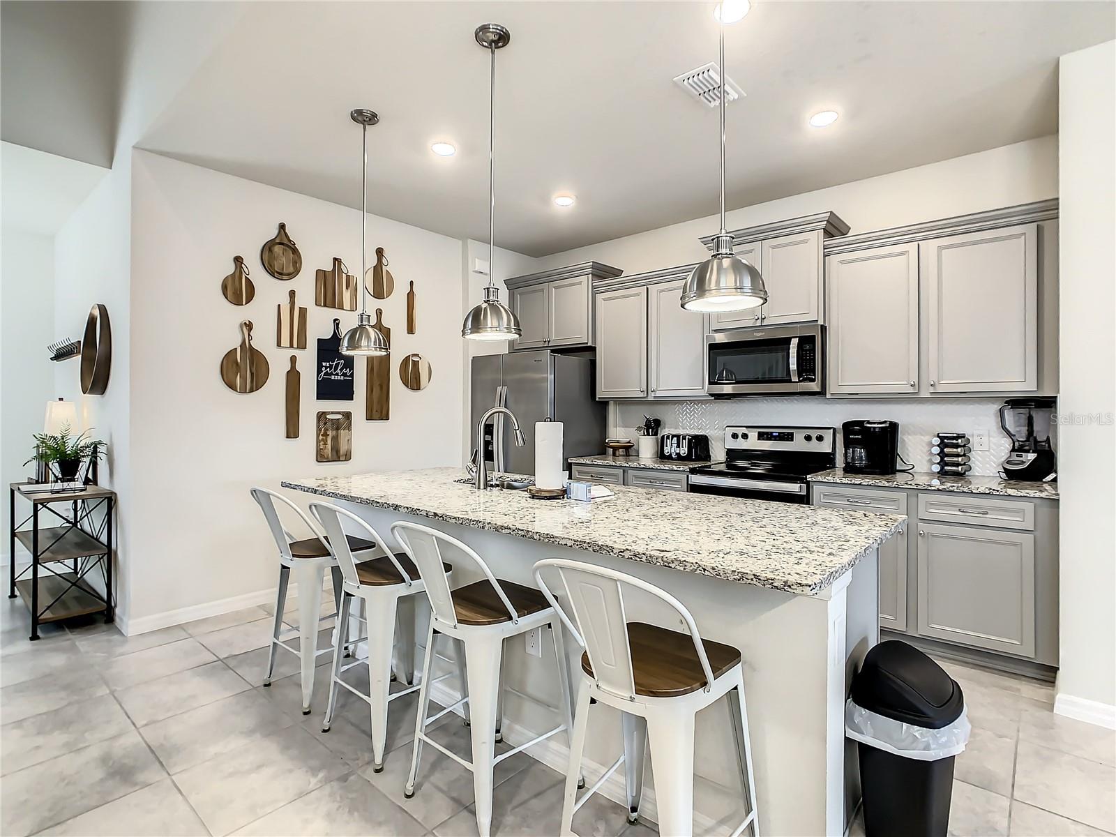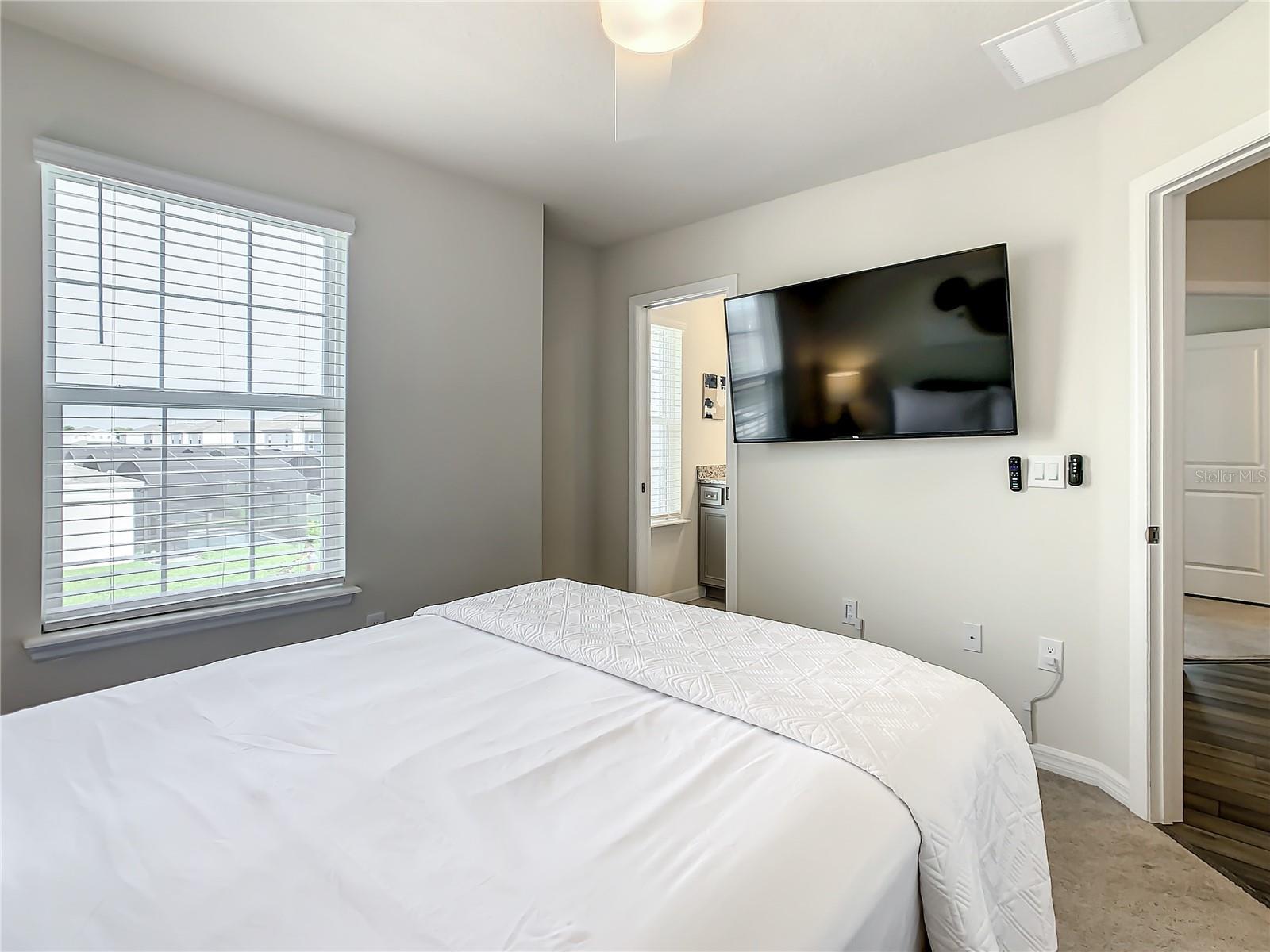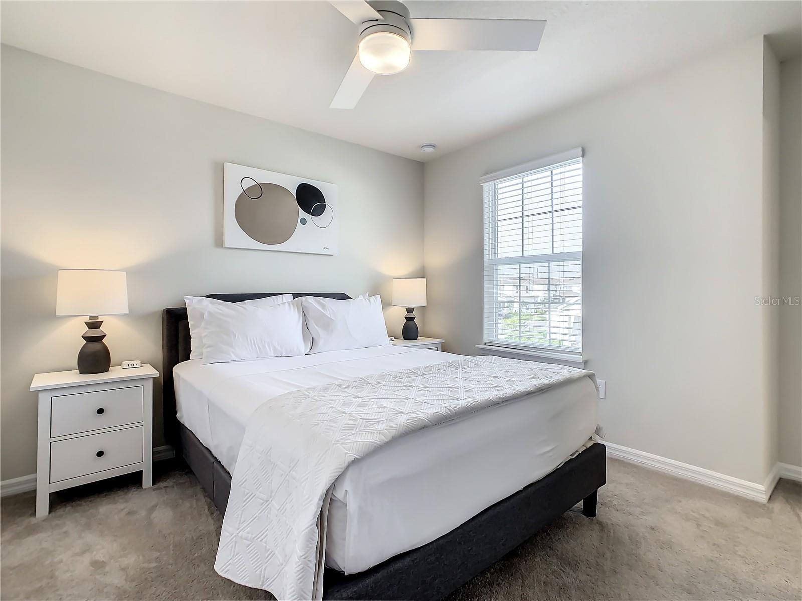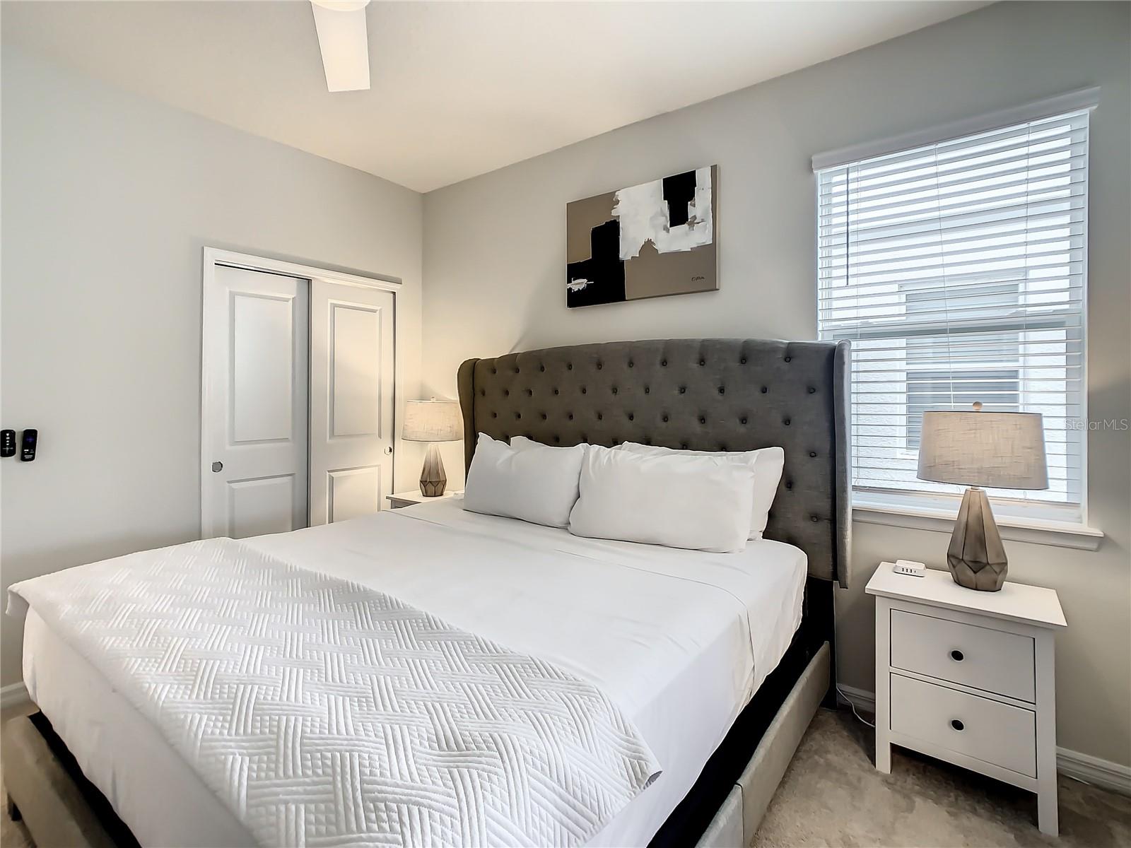Indulge in the blend of luxury and energy efficiency at this stunning 7-bedroom, 5.5-bath vacation home situated in the esteemed gated community of Windsor Island. Benefit from reduced energy costs with the installation of solar panels while reveling in the allure of this nearly new residence. Spanning over 3,200 square feet, this capacious home is impeccably crafted and primed for rental opportunities. Upon entering, you are welcomed by an impressive foyer leading to a well-appointed kitchen featuring stainless steel appliances, a breakfast bar island, and an adjoining dining area. The commodious family room and sitting room offer ample space for relaxation and quality time with family and friends. Escape to the expansive master suite, a serene retreat boasting a luxurious en-suite bathroom. Outdoors, a large screened-in pool and spa beckon, providing a refreshing oasis for relaxation. The screened porch and spacious patio offer shaded spots for dining and enjoying the peaceful surroundings. The community itself provides a plethora of amenities including a lazy river, a resort-sized pool, tennis courts, sand volleyball, basketball courts, an on-site restaurant, a sundry shop, a fitness center, and an arcade. Additionally, the property is just minutes away from the renowned attractions of Walt Disney World and other Central Florida amusement parks.