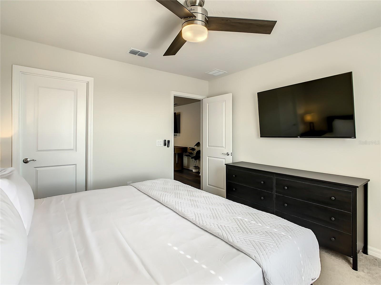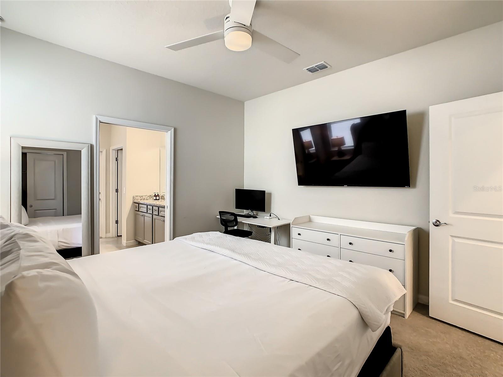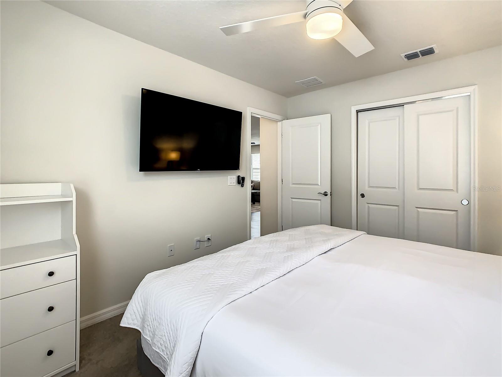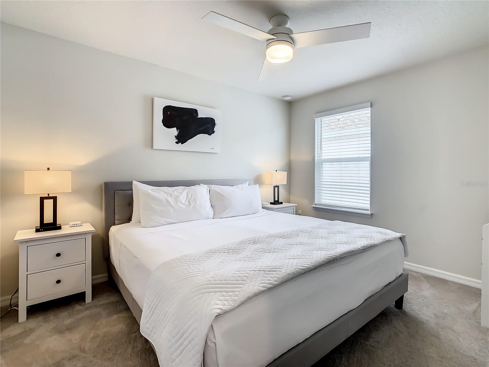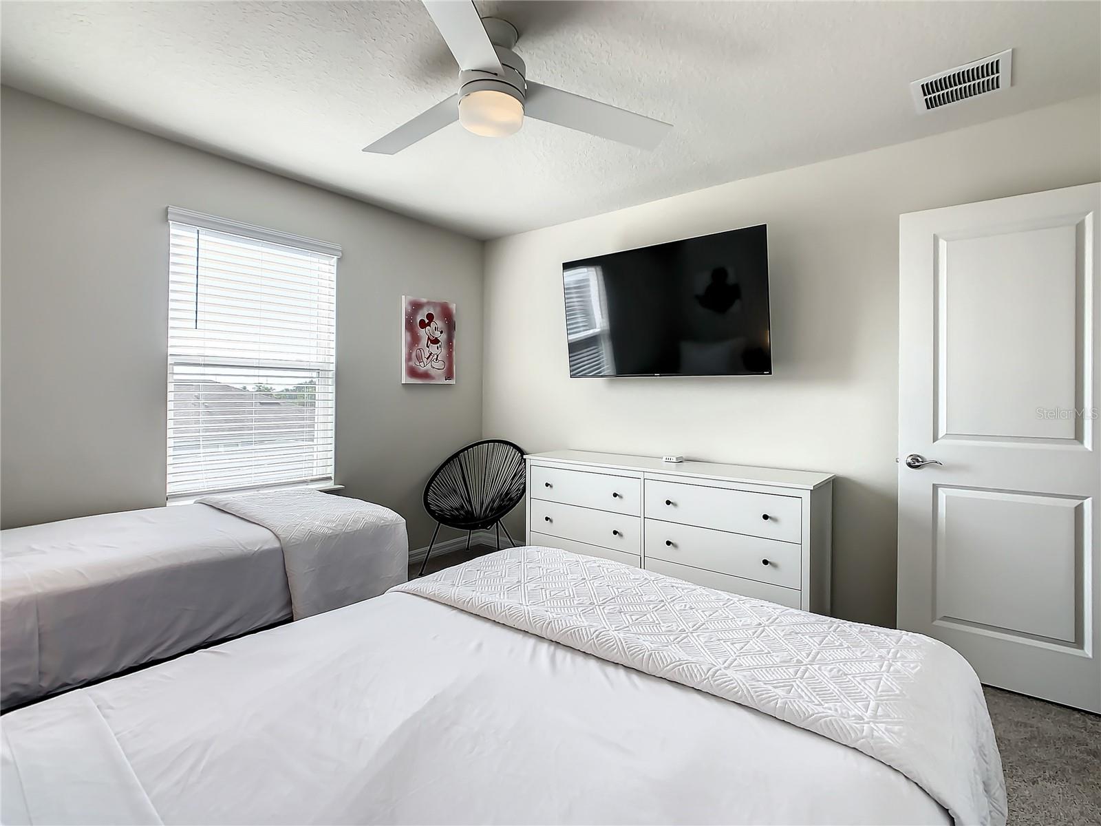 Indulge in the blend of luxury and energy efficiency at this stunning 7-bedroom, 5.5-bath vacation home situated in the esteemed gated community of Windsor Island. Benefit from reduced energy costs with the installation of solar panels while reveling in the allure of this nearly new residence. Spanning over 3,200 square feet, this capacious home is impeccably crafted and primed for rental opportunities. Upon entering, you are welcomed by an impressive foyer leading to a well-appointed kitchen featuring stainless steel appliances, a breakfast bar island, and an adjoining dining area. The commodious family room and sitting room offer ample space for relaxation and quality time with family and friends. Escape to the expansive master suite, a serene retreat boasting a luxurious en-suite bathroom. Outdoors, a large screened-in pool and spa beckon, providing a refreshing oasis for relaxation. The screened porch and spacious patio offer shaded spots for dining and enjoying the peaceful surroundings. The community itself provides a plethora of amenities including a lazy river, a resort-sized pool, tennis courts, sand volleyball, basketball courts, an on-site restaurant, a sundry shop, a fitness center, and an arcade. Additionally, the property is just minutes away from the renowned attractions of Walt Disney World and other Central Florida amusement parks.
