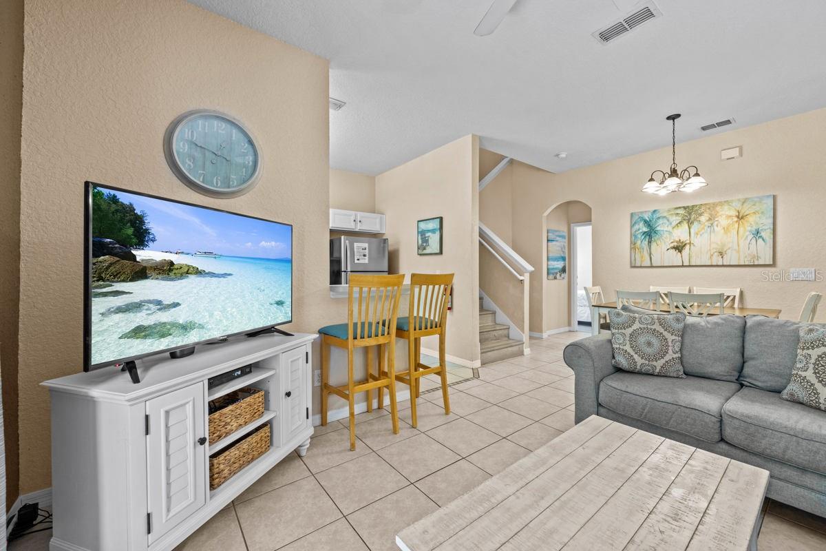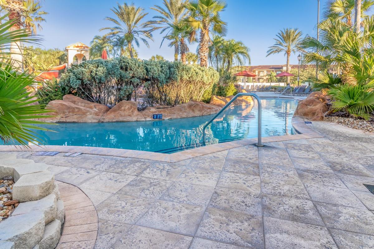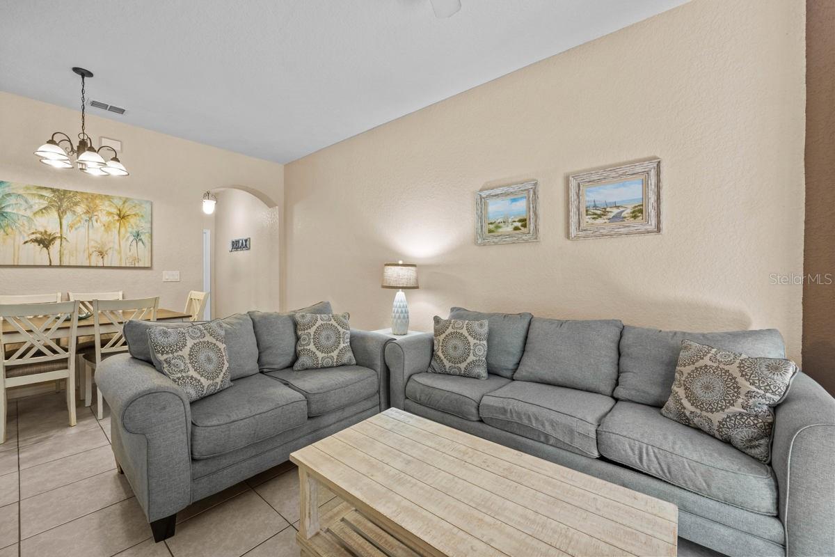 Welcome to 432 Verona Avenue in the vibrant Regal Palms community of Davenport, Florida. This meticulously maintained fully furnished residence boasts three master bedrooms and three master bathrooms, one downstairs and 2 upstairs, ONE WITH A BALCONY FOR RELAXATION! Natural light floods the interior, creating a warm and welcoming atmosphere throughout with its warm beach decor with LAMINATE FLOORING to match! THAT'S RIGHT, NO CARPET! The kitchen is a chef's delight, featuring modern appliances, ample storage, and a convenient breakfast bar perfect for casual dining or entertaining guests. Step outside to your own private retreat, where lush landscaping surrounds a tranquil patio, providing an ideal setting for relaxation and outdoor gatherings! Conveniently located, A 3 MINUTE WALK to the pool/clubhouse, where you'll have access to an array of amenities, including two inviting swimming pools—one with a thrilling slide, lazy river, and zero-entry point—along with a poolside tiki bar, sand volleyball courts, restaurant and sports bar. Indulge in some self-care at the indoor and outdoor spas or stay active at the fitness center equipped with a sauna and steam room. Families will love the indoor play zone, featuring a captivating pirate theme and arcade, reminiscent of beloved entertainment venues. Need to do a little work while away, there is a Business Center for your convenience. When it's time to refuel, head to the full-service restaurant and bar for a delicious meal. Convenience is key at Regal Palms, with essential amenities such its location right next to a grocery store(Publix), with more dining options, an ice cream shop, banks, pharmacy, and even an emergency clinic. Don't miss the opportunity to experience the unparalleled lifestyle offered by Regal Palms.