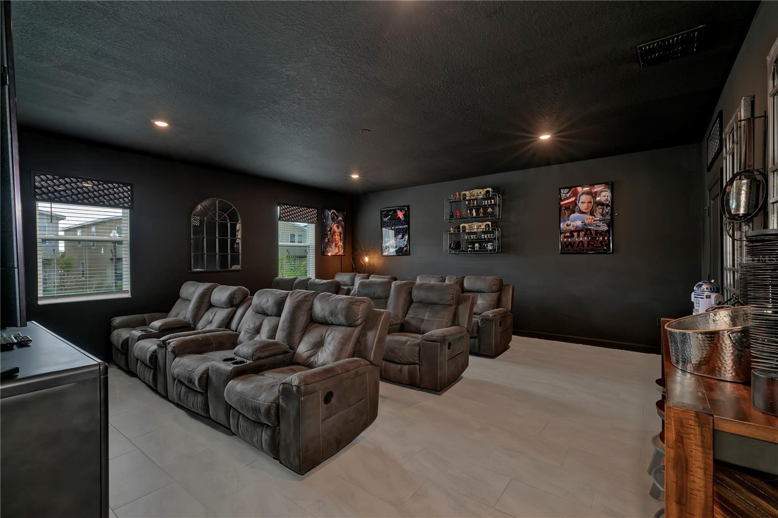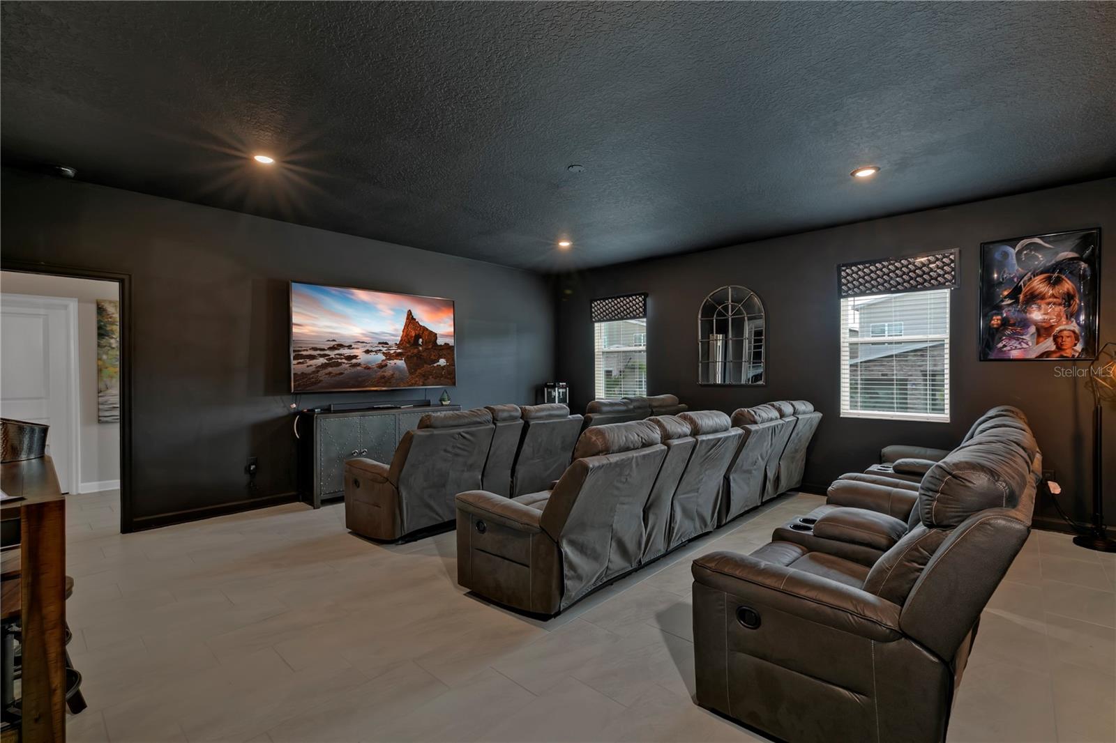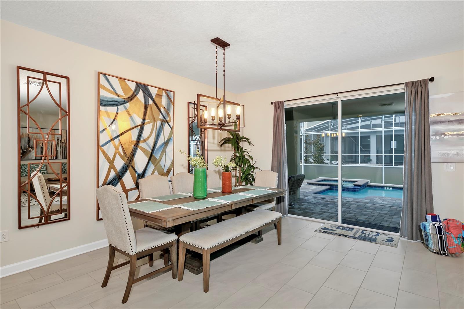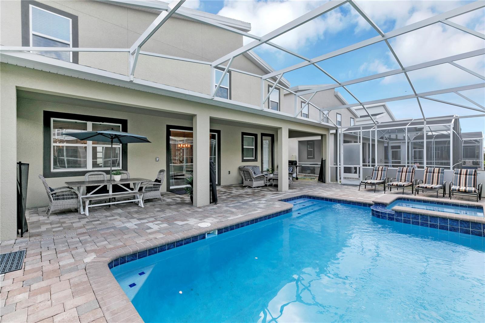 Best bang for your buck, in Champions Gate!! This expansive fully furnished two-story home features a spacious themed movie room near the foyer ideal for entertaining large groups. The open concept living area connects to the spacious outdoor lanai, which features a swimming pool and built-in spa. There are two first-floor bedrooms including the owner's suite, and five second-floor bedrooms surrounding a loft. Excellent location in Champions Gate, zoned for short term rental and currently listed on Airbnb.com with access to the magnificent Oasis Club amenities. The beautifully appointed club boasts the amenities of some of the finest resorts in the world, right in your own backyard! Featuring a stellar clubhouse complete with a full service restaurant, including indoor and patio dining, state-of-the-art fitness center, business center, business center, movie theater, activities center, arcade room , concierge, and multiple common areas for gathering with family and friends. There is so much to do under one roof! Outside has even more to offer! As you step onto the pool deck, you will discover so many ways to relax from floating around your very own zero entry heated lazy river, taking a plunge down the water slide, or visiting the kiddie splash zone. Enjoy drinks and food right at your chair with the restaurant and tiki bar just steps away. Other outdoor amenities include two regulation size sand volleyball courts, and sundries stand. Schedule a tour of this wonderful fully furnished vacation residence this week before the next guest checks in. Virtual tours, floor plans available, just ask!
