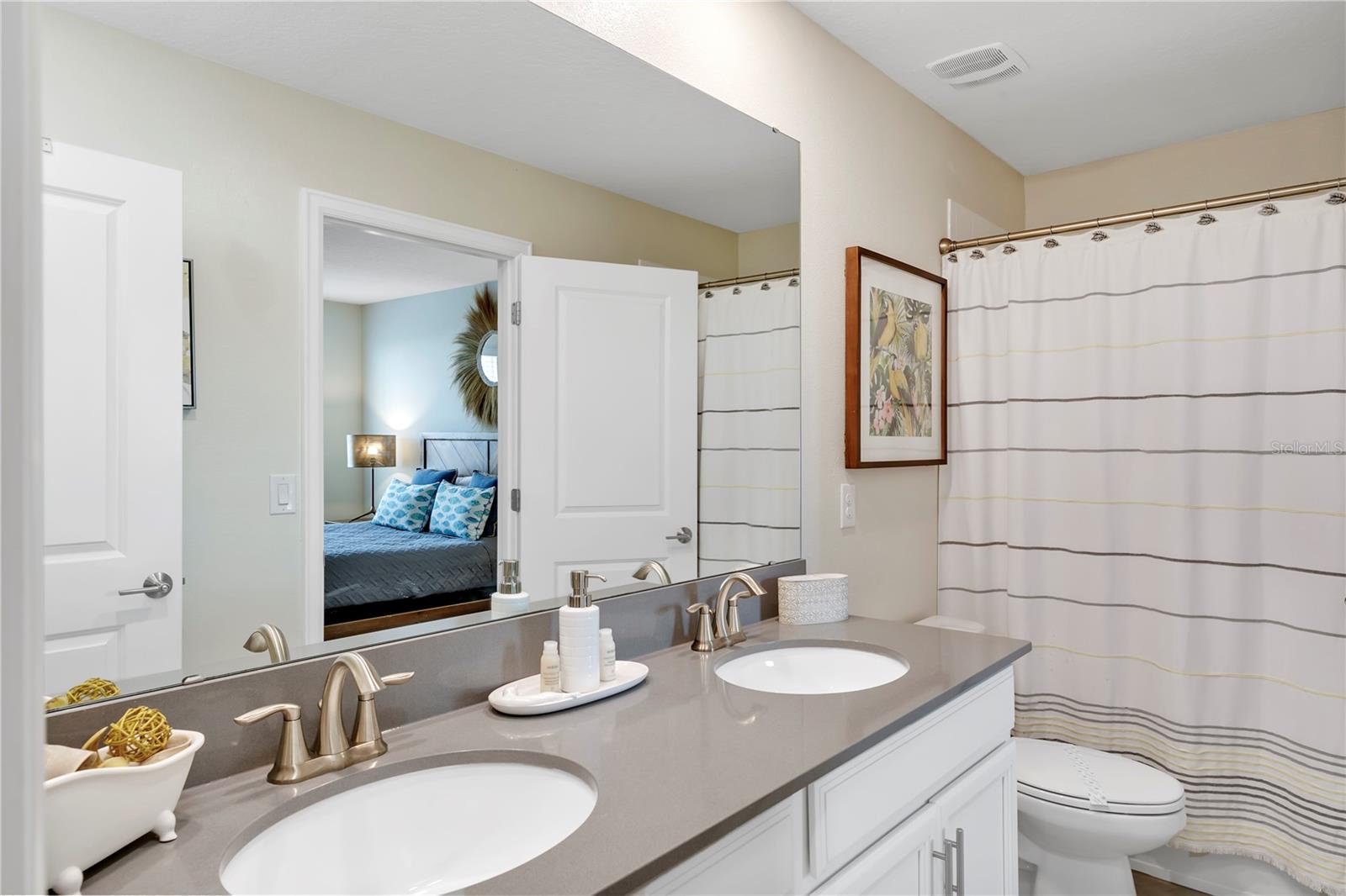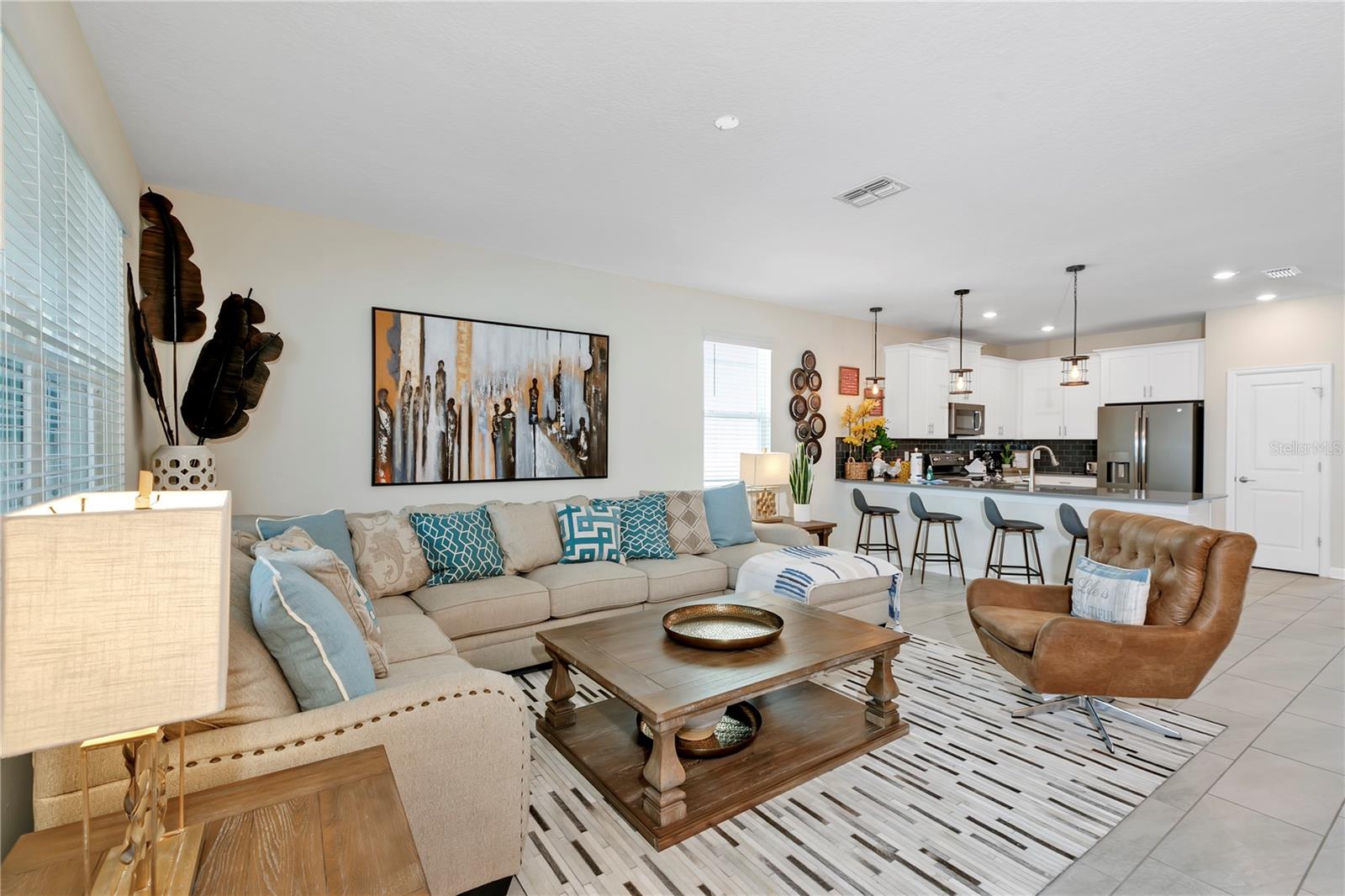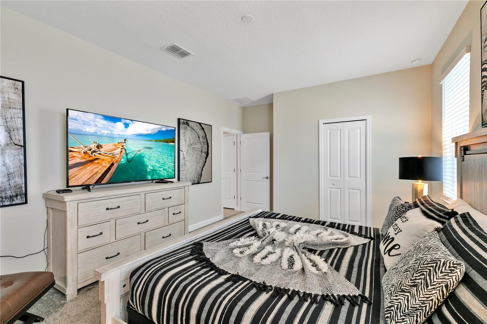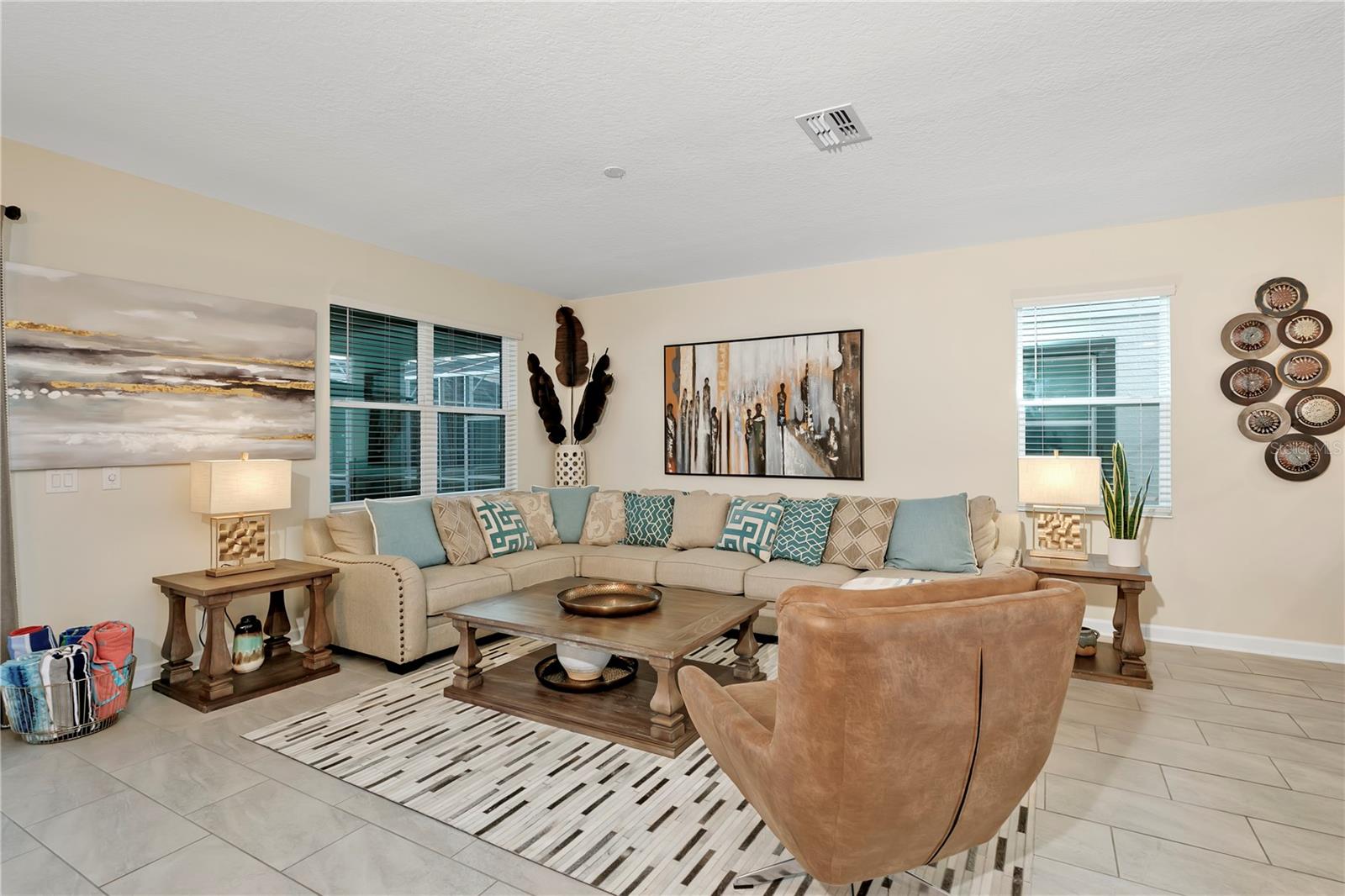 Best bang for your buck, in Champions Gate!! This expansive fully furnished two-story home features a spacious themed movie room near the foyer ideal for entertaining large groups. The open concept living area connects to the spacious outdoor lanai, which features a swimming pool and built-in spa. There are two first-floor bedrooms including the owner's suite, and five second-floor bedrooms surrounding a loft. Excellent location in Champions Gate, zoned for short term rental and currently listed on Airbnb.com with access to the magnificent Oasis Club amenities. The beautifully appointed club boasts the amenities of some of the finest resorts in the world, right in your own backyard! Featuring a stellar clubhouse complete with a full service restaurant, including indoor and patio dining, state-of-the-art fitness center, business center, business center, movie theater, activities center, arcade room , concierge, and multiple common areas for gathering with family and friends. There is so much to do under one roof! Outside has even more to offer! As you step onto the pool deck, you will discover so many ways to relax from floating around your very own zero entry heated lazy river, taking a plunge down the water slide, or visiting the kiddie splash zone. Enjoy drinks and food right at your chair with the restaurant and tiki bar just steps away. Other outdoor amenities include two regulation size sand volleyball courts, and sundries stand. Schedule a tour of this wonderful fully furnished vacation residence this week before the next guest checks in. Virtual tours, floor plans available, just ask!