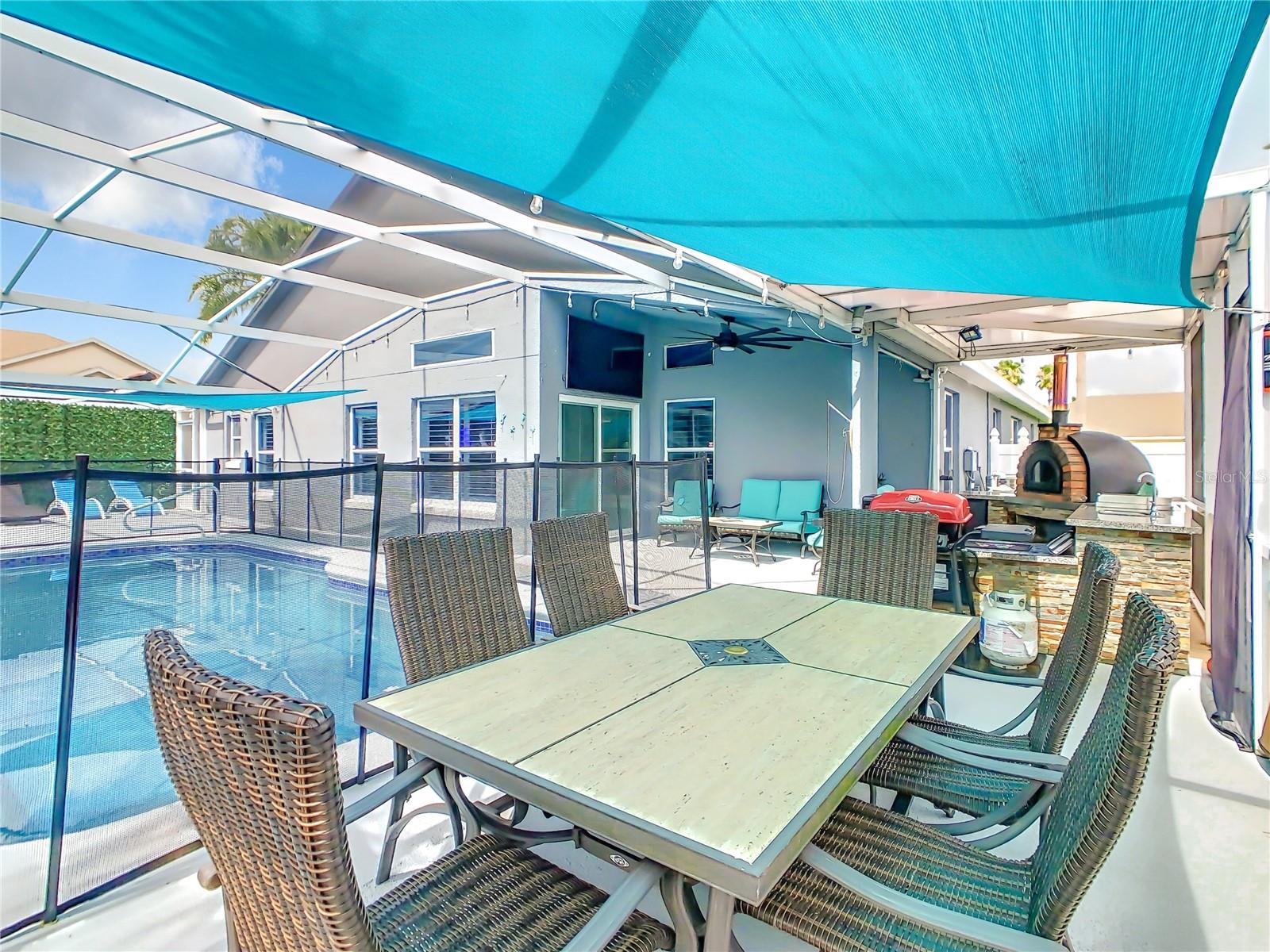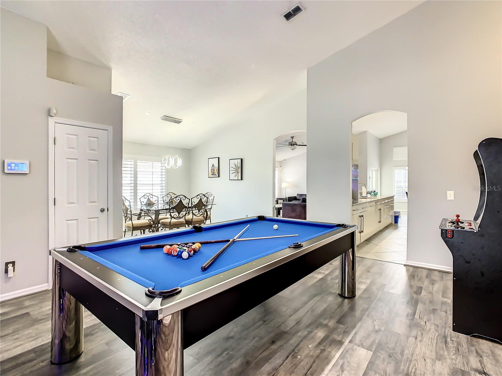 ***HUGE PRICE REDUCTION****Beautiful Airbnb or Short Term Rental Investment property or make it your second home or primary residence*****so many possibilities*****gorgeous oversized pool deck with out door kitchen and being sold fully furnished and turn key******future bookings in place and fully turn key for short term rental*****offering a unique experience in game room and outdoor dining area*****roof 2 years old****AC 2 years old****all newer appliances and beautifully maintained ******offering 2 master suites an luxury vinyl flooring******outdoor lighting and special effects makes this the home you have being waiting for*****minutes to Theme Parks and attractions*****SELLER VERY MOTIVATED This is a wonderful home with plenty of features to enjoy with family and friends! The home is located in the beautiful community of Hampton Lakes in Davenport, close to Disney and other attractions. Well-maintained, manicured yard with beautiful accents. Wood laminate floors and tile throughout the home, with carpet in the bedrooms. Plantation shutters on all windows and paddle fans. Vaulted ceilings with recessed lighting. The kitchen features granite countertops, custom cabinets, vaulted ceilings, an eat-in breakfast nook, breakfast bar, and a large walk-in pantry. Open floor plan with a separate dining room area off the great room. Master bedroom and large master bath with a garden tub located at the rear of the home. The kitchen nook opens to a spacious deck and large pool for entertaining guests. Wood-burning pizza oven on the pool deck for cooking fun meals at home. It seems like this home offers a great blend of comfort, style, and entertainment options for residents and guests. The open floor plan, pool area with a pizza oven, and other features make it a perfect place for gatherings and making lasting memories.
