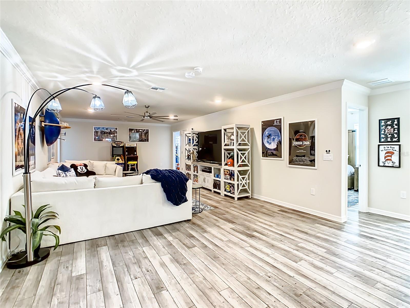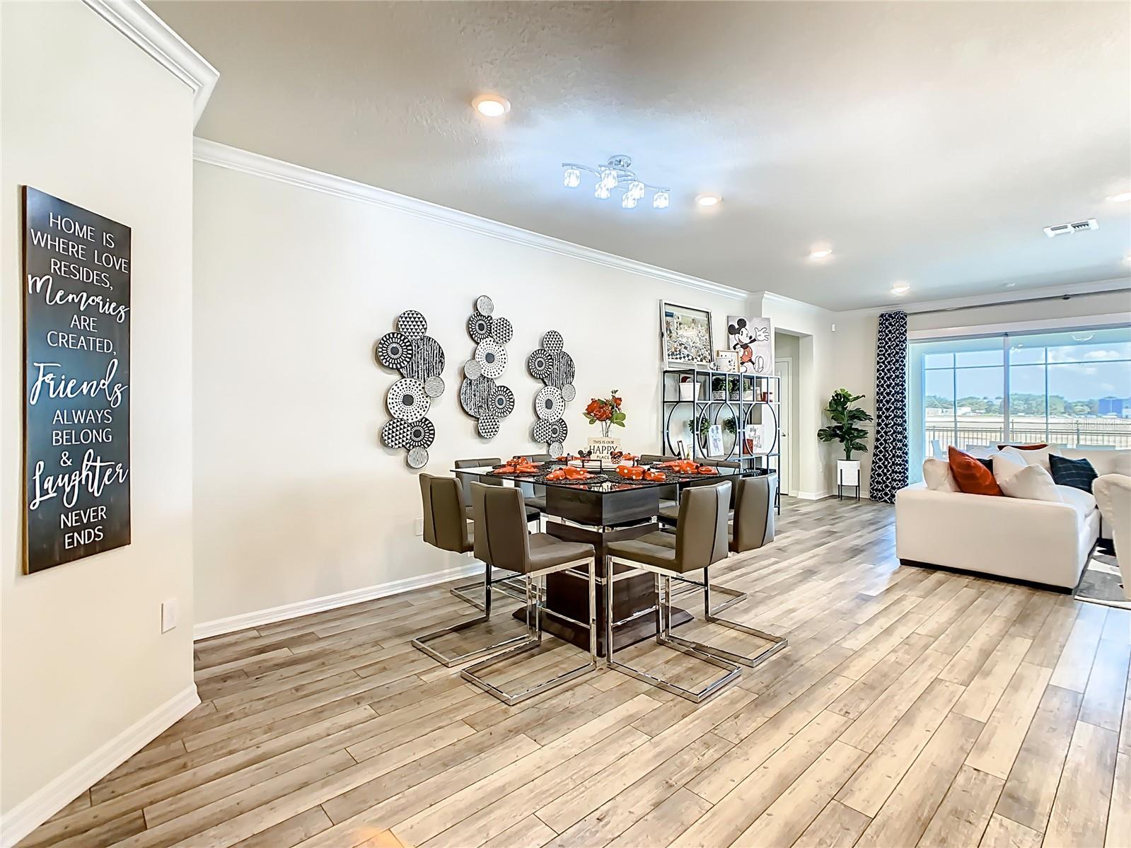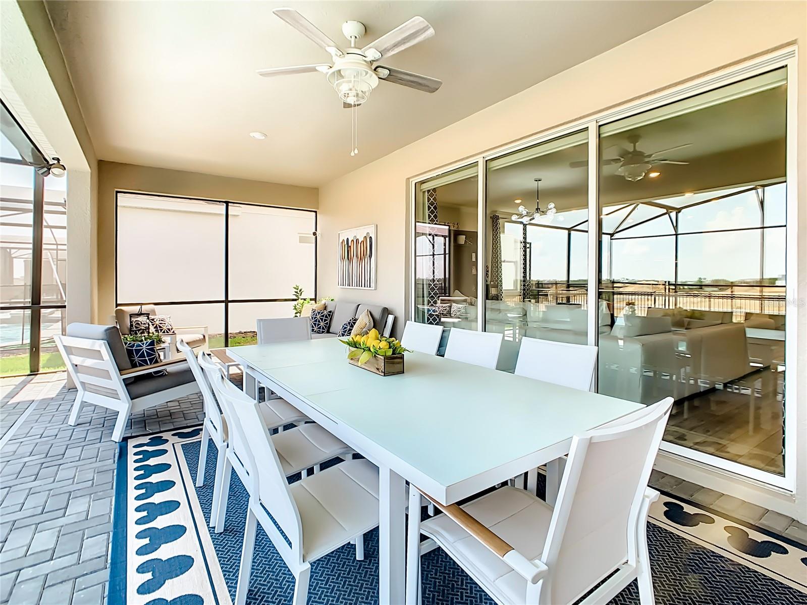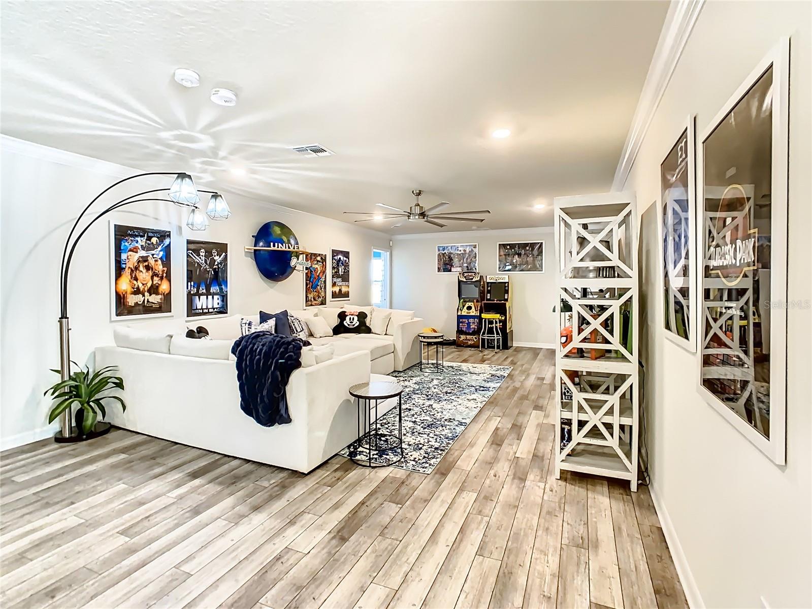 Indulge in the luxury of this pristine 8-bedroom, 6-bathroom vacation home inspired by Disney magic. This lavish retreat offers a welcoming ambiance with professionally designed decor that captures the essence of Disney. The Baymont floor plan by Pulte Homes boasts numerous upgrades such as enhanced lighting, automatic blinds, an epoxy garage floor, EV charging station, inside laundry room, and elegant furnishings, creating a serene environment from the moment you step inside. Relax by the saltwater pool and spa on the private lanai, perfect for unwinding after a day of excitement. With an advanced security system featuring cameras, your peace of mind is assured as you enjoy the spacious accommodations. An outdoor grill awaits for delightful al fresco dining under the Florida sky. Every detail in this exceptional home has been meticulously crafted to offer you and your family the ultimate Disney-inspired escape in both comfort and style. Don't miss the opportunity to tour this unique home - schedule your visit today.