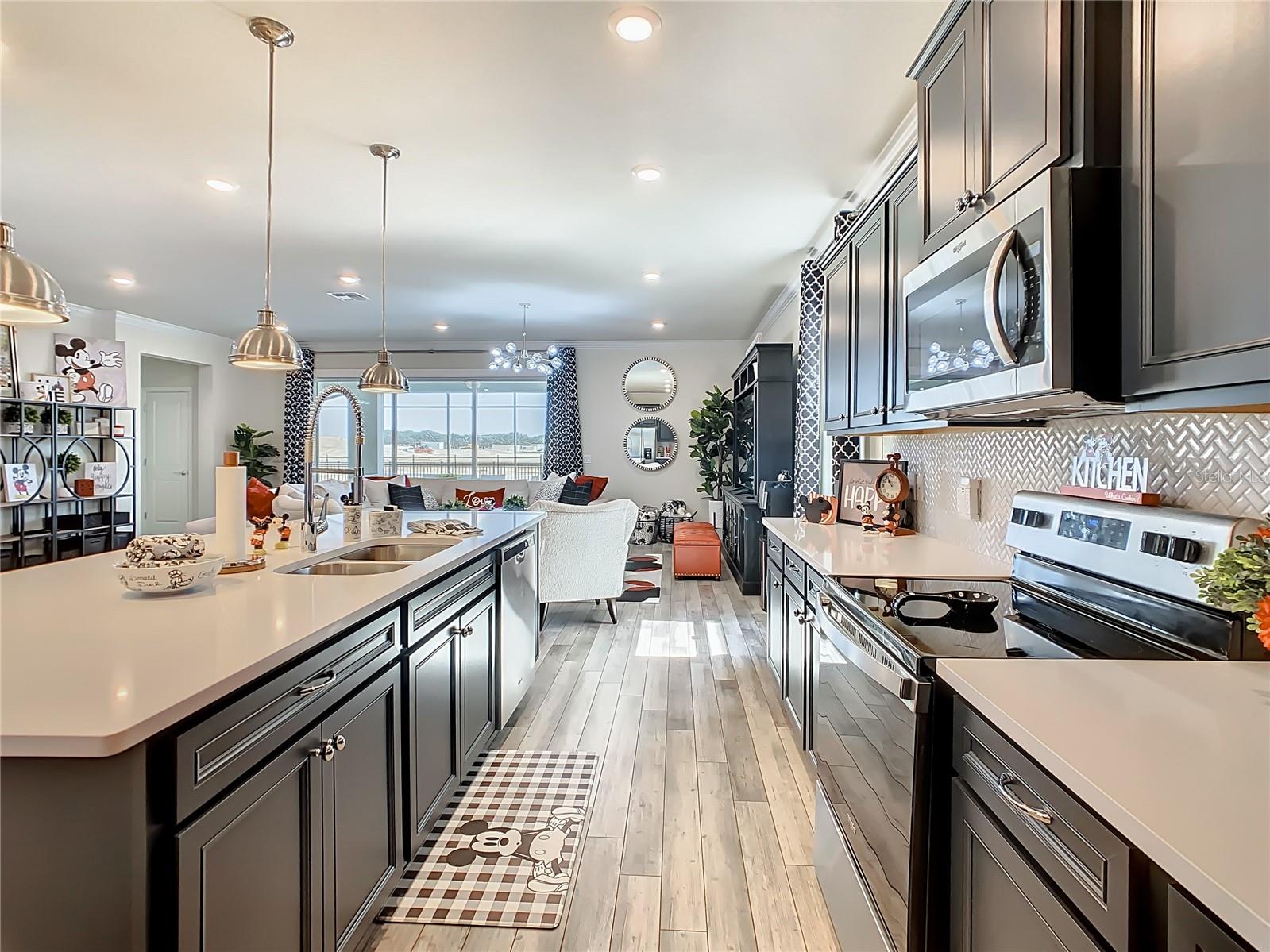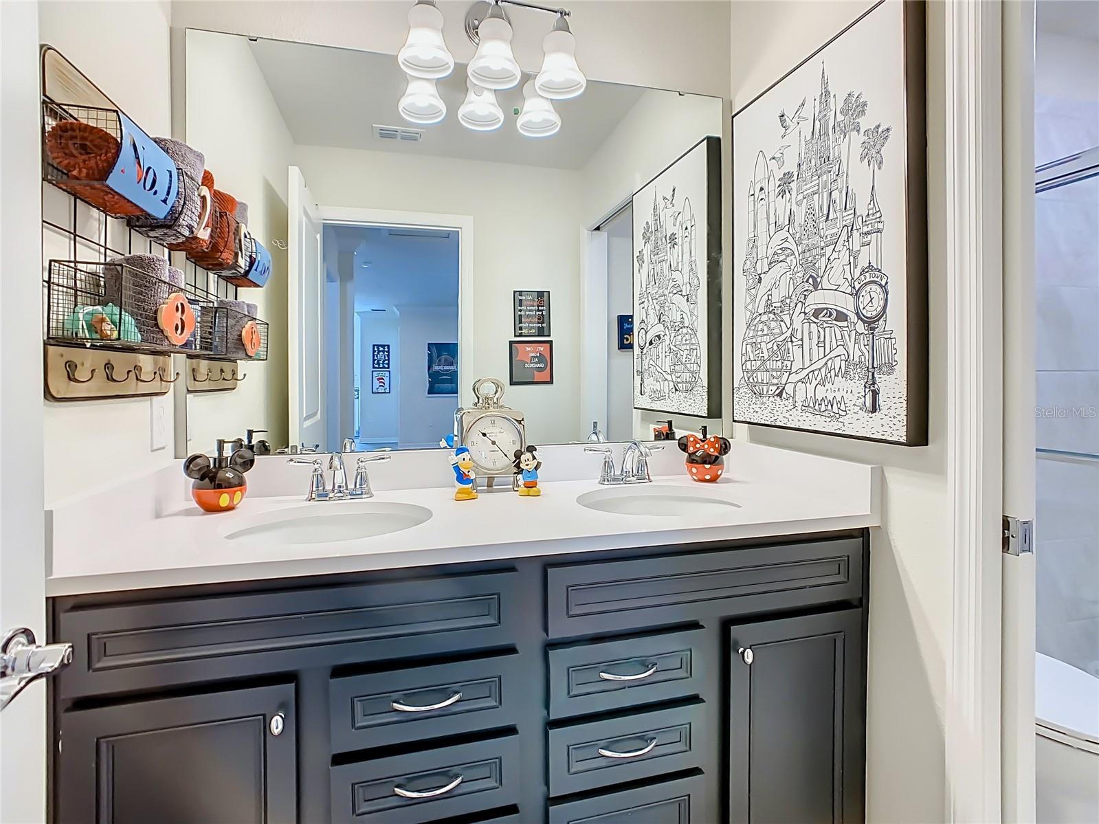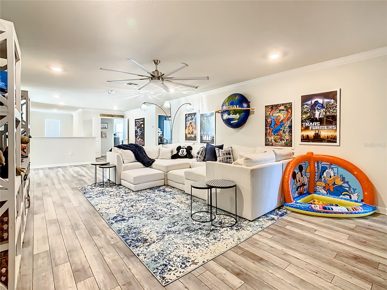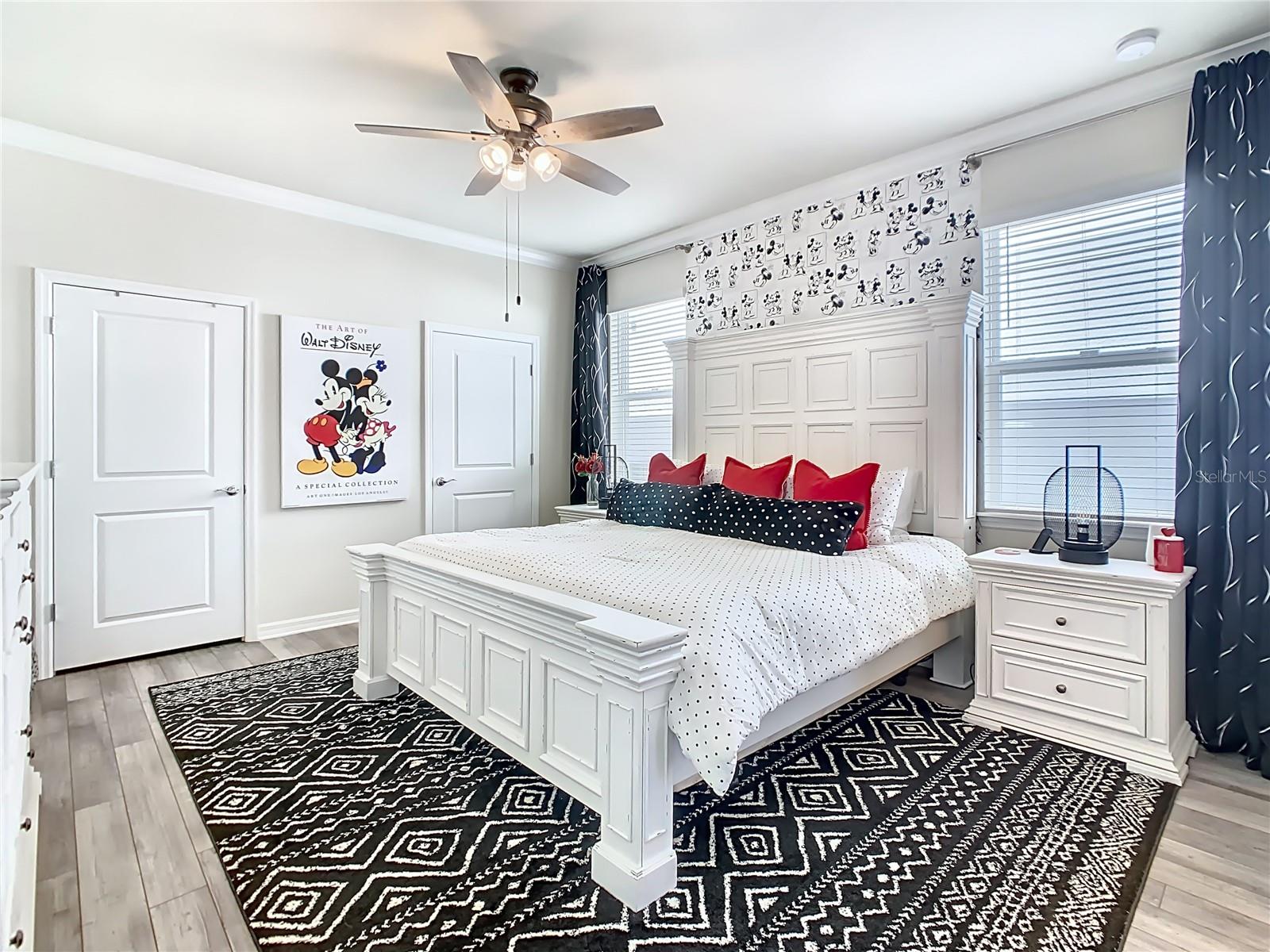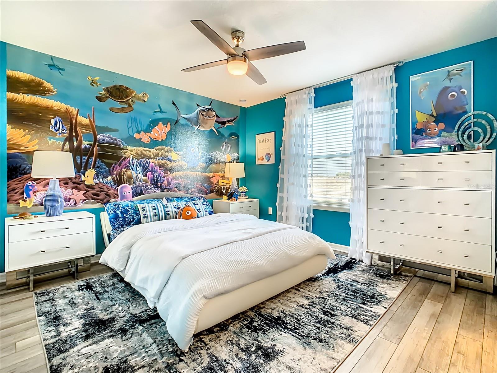 Indulge in the luxury of this pristine 8-bedroom, 6-bathroom vacation home inspired by Disney magic. This lavish retreat offers a welcoming ambiance with professionally designed decor that captures the essence of Disney. The Baymont floor plan by Pulte Homes boasts numerous upgrades such as enhanced lighting, automatic blinds, an epoxy garage floor, EV charging station, inside laundry room, and elegant furnishings, creating a serene environment from the moment you step inside. Relax by the saltwater pool and spa on the private lanai, perfect for unwinding after a day of excitement. With an advanced security system featuring cameras, your peace of mind is assured as you enjoy the spacious accommodations. An outdoor grill awaits for delightful al fresco dining under the Florida sky. Every detail in this exceptional home has been meticulously crafted to offer you and your family the ultimate Disney-inspired escape in both comfort and style. Don't miss the opportunity to tour this unique home - schedule your visit today.