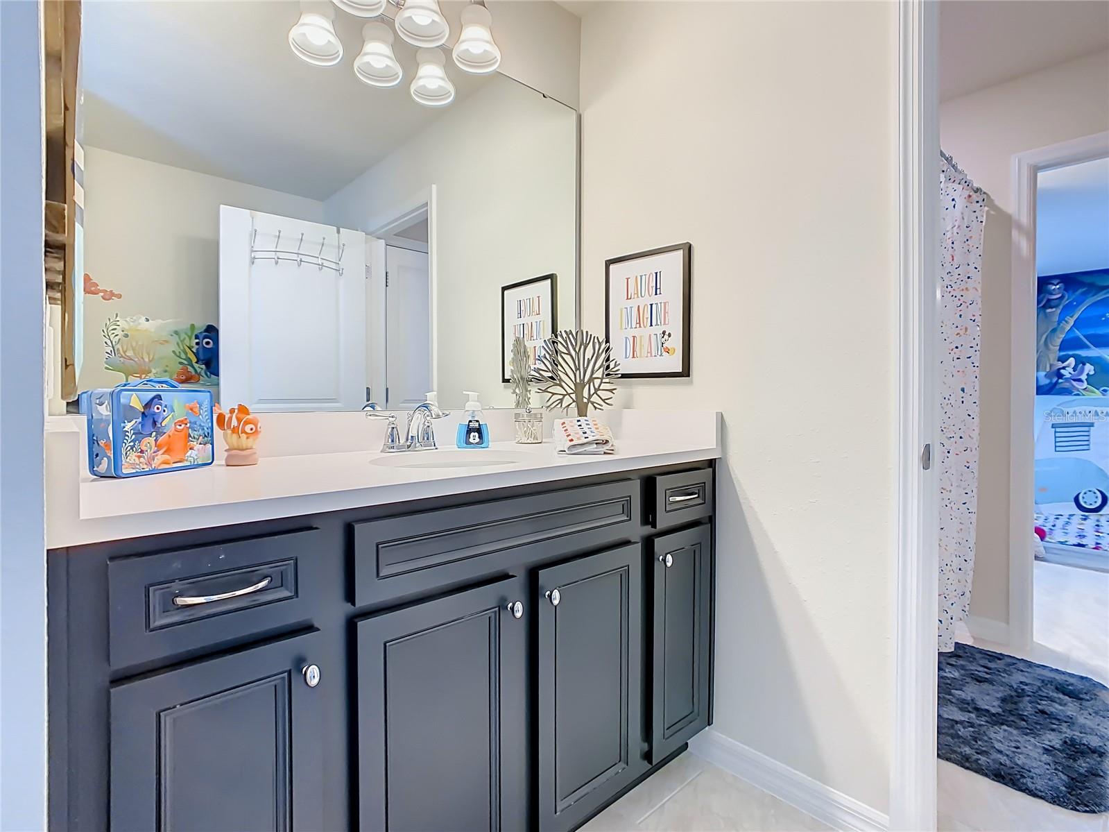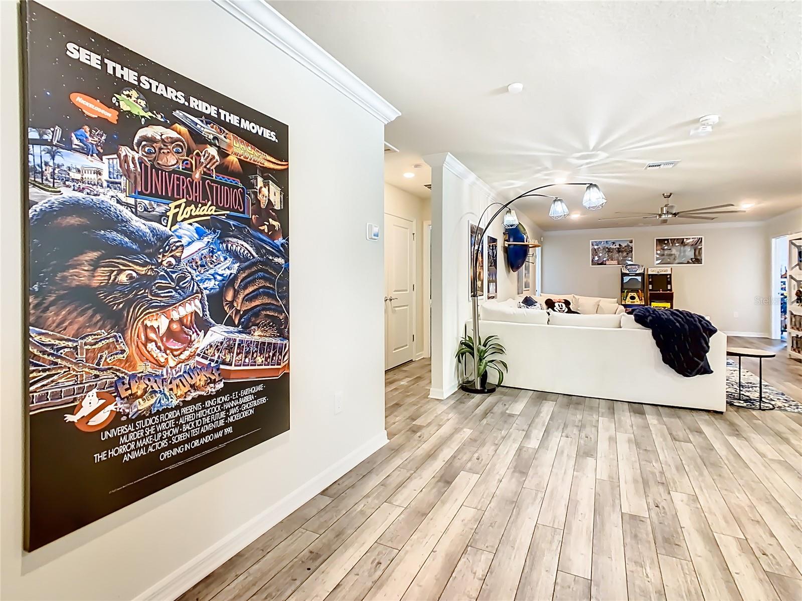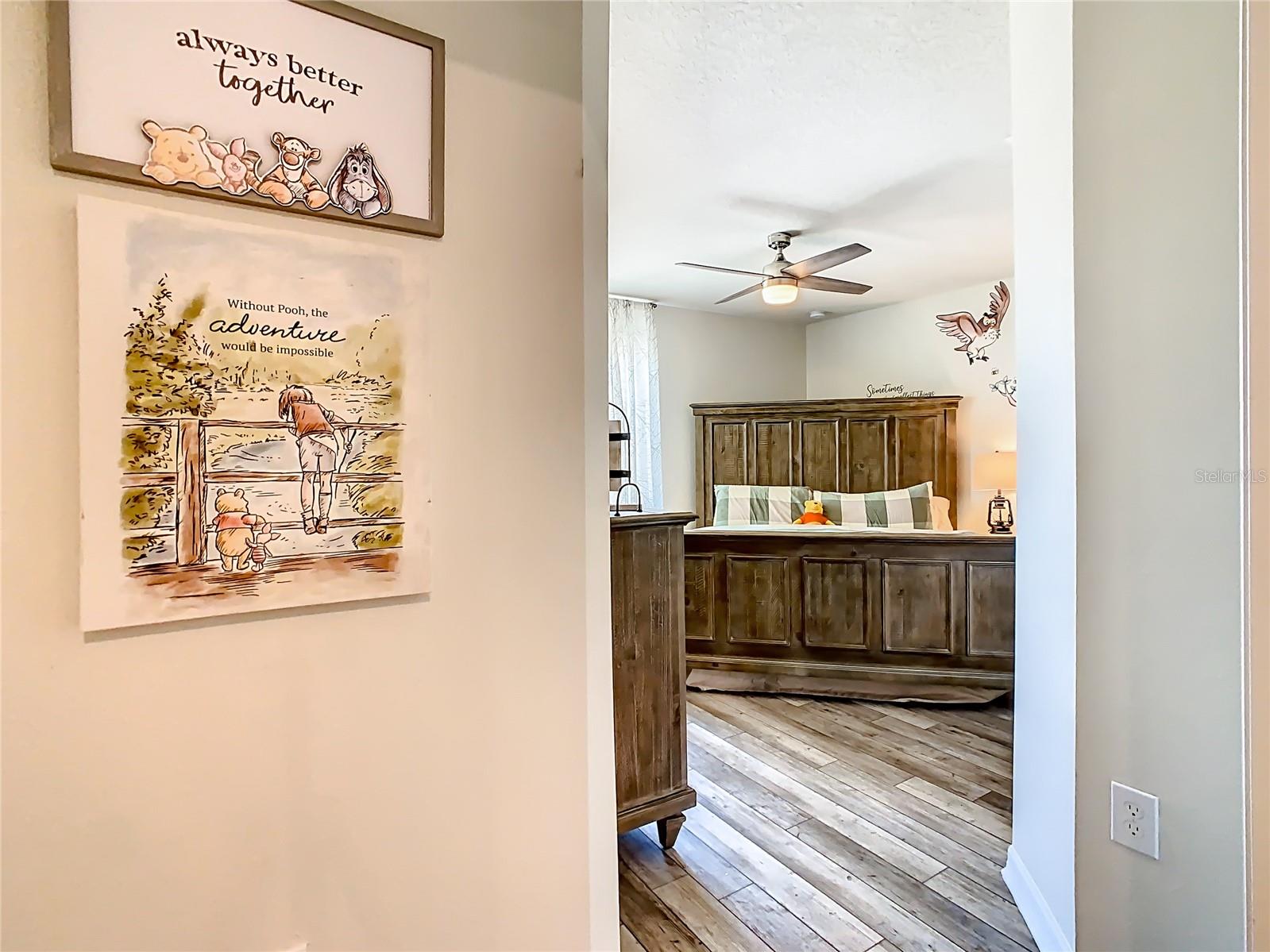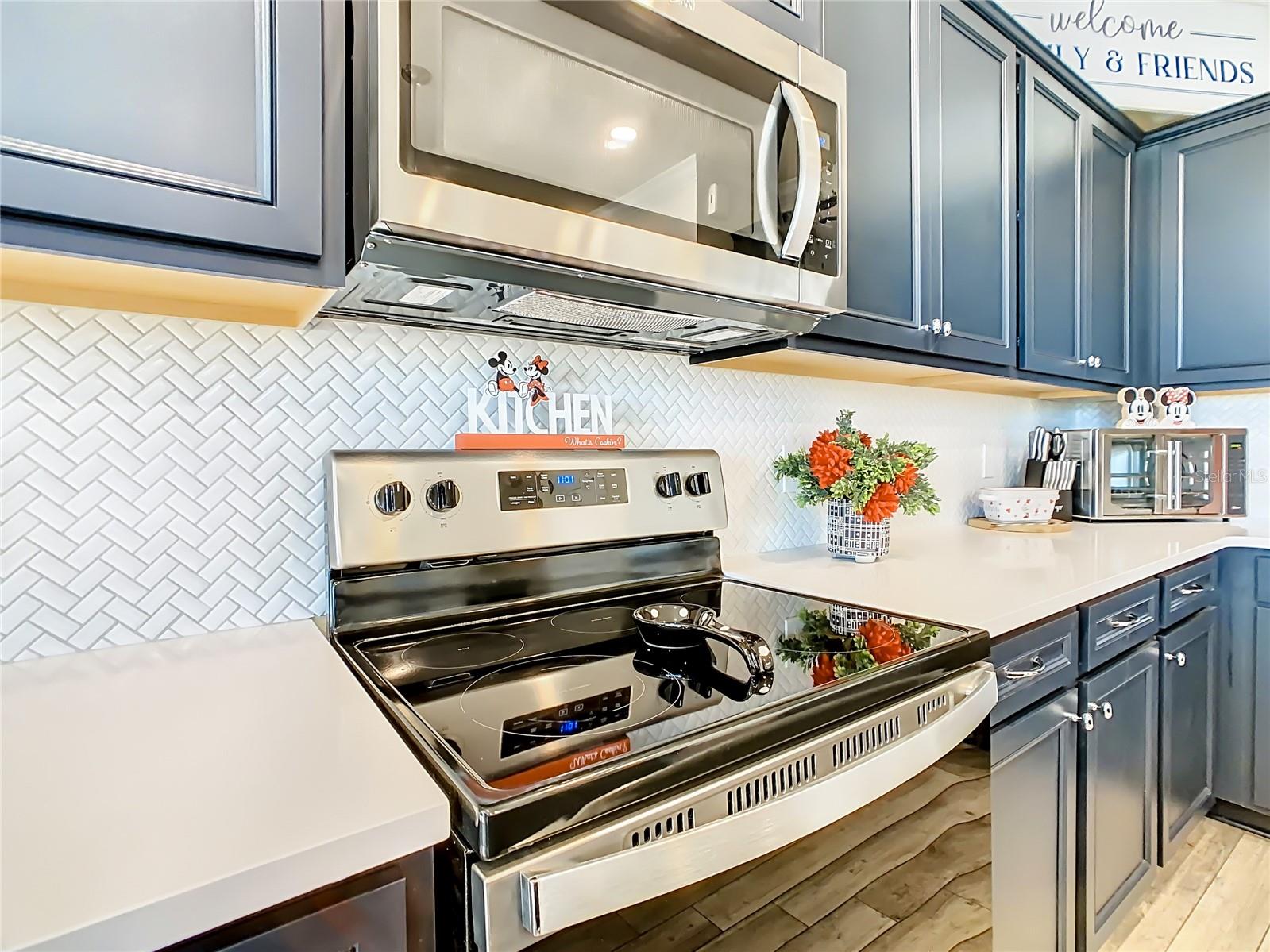 Indulge in the luxury of this pristine 8-bedroom, 6-bathroom vacation home inspired by Disney magic. This lavish retreat offers a welcoming ambiance with professionally designed decor that captures the essence of Disney. The Baymont floor plan by Pulte Homes boasts numerous upgrades such as enhanced lighting, automatic blinds, an epoxy garage floor, EV charging station, inside laundry room, and elegant furnishings, creating a serene environment from the moment you step inside. Relax by the saltwater pool and spa on the private lanai, perfect for unwinding after a day of excitement. With an advanced security system featuring cameras, your peace of mind is assured as you enjoy the spacious accommodations. An outdoor grill awaits for delightful al fresco dining under the Florida sky. Every detail in this exceptional home has been meticulously crafted to offer you and your family the ultimate Disney-inspired escape in both comfort and style. Don't miss the opportunity to tour this unique home - schedule your visit today.