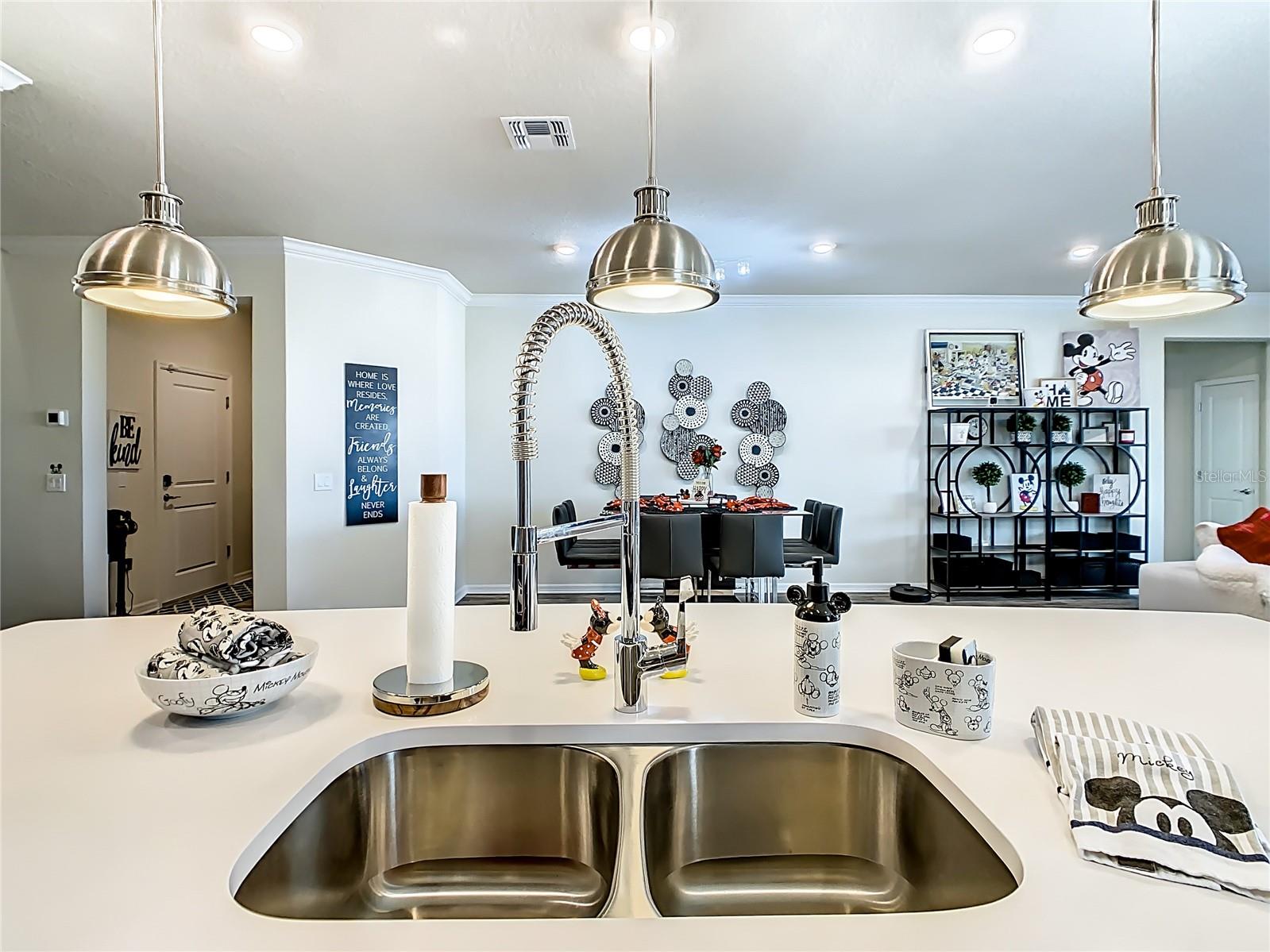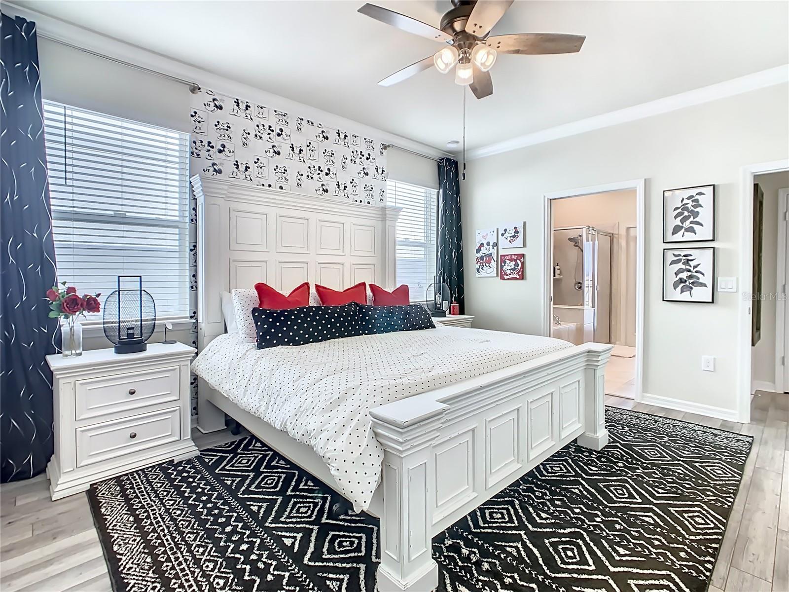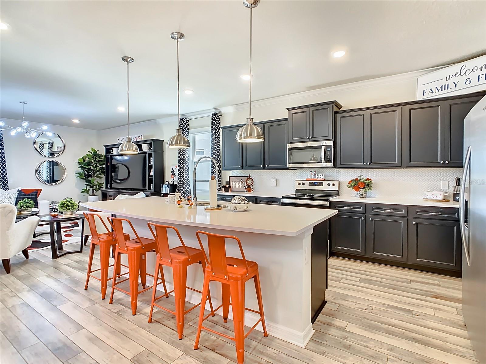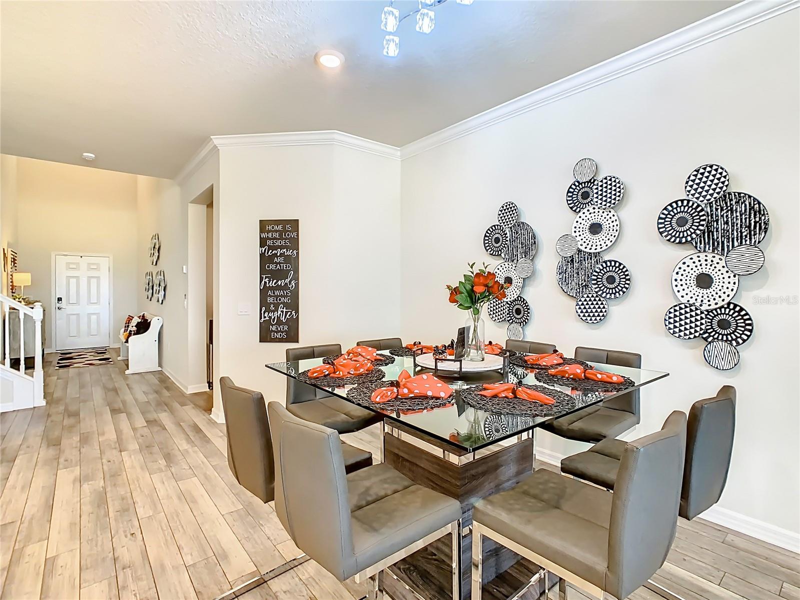 Indulge in the luxury of this pristine 8-bedroom, 6-bathroom vacation home inspired by Disney magic. This lavish retreat offers a welcoming ambiance with professionally designed decor that captures the essence of Disney. The Baymont floor plan by Pulte Homes boasts numerous upgrades such as enhanced lighting, automatic blinds, an epoxy garage floor, EV charging station, inside laundry room, and elegant furnishings, creating a serene environment from the moment you step inside. Relax by the saltwater pool and spa on the private lanai, perfect for unwinding after a day of excitement. With an advanced security system featuring cameras, your peace of mind is assured as you enjoy the spacious accommodations. An outdoor grill awaits for delightful al fresco dining under the Florida sky. Every detail in this exceptional home has been meticulously crafted to offer you and your family the ultimate Disney-inspired escape in both comfort and style. Don't miss the opportunity to tour this unique home - schedule your visit today.
