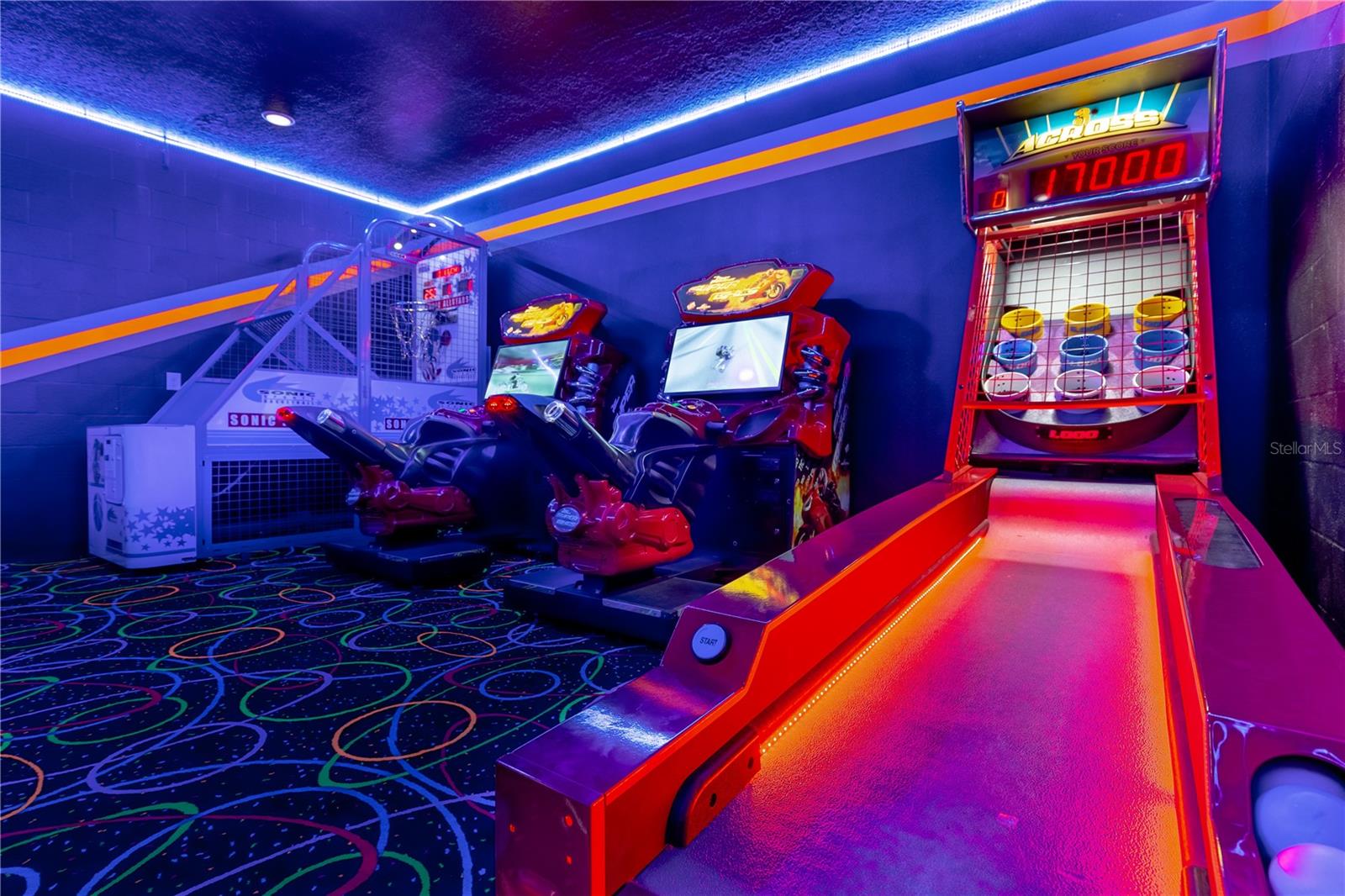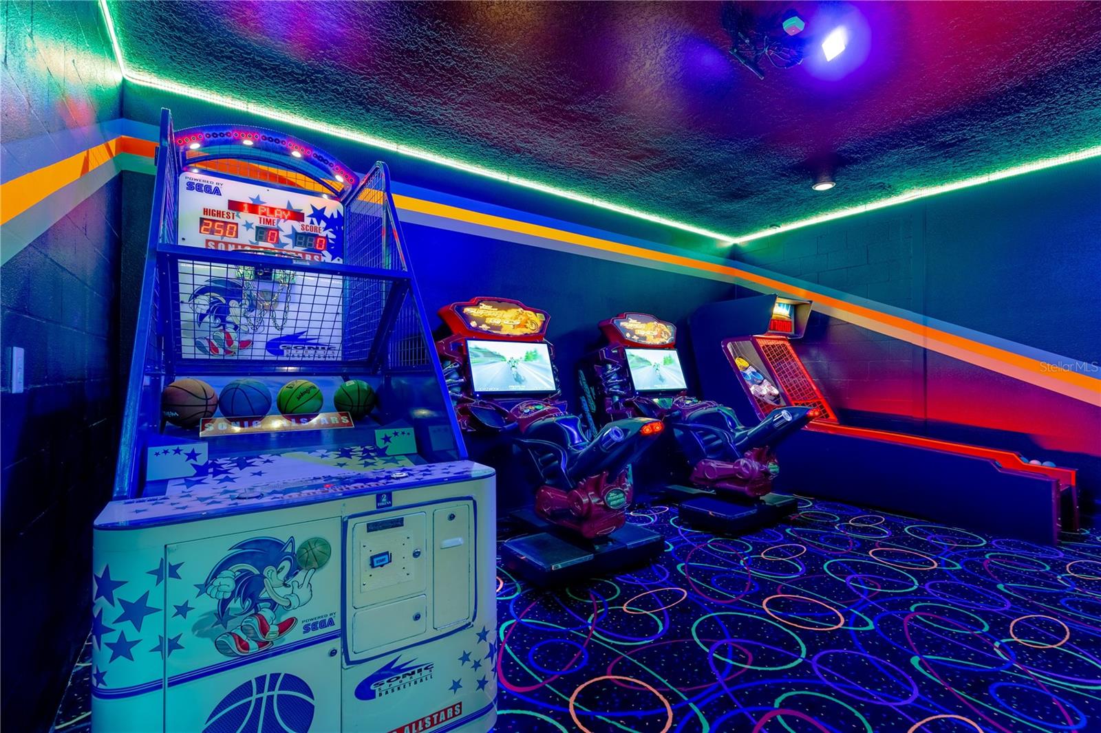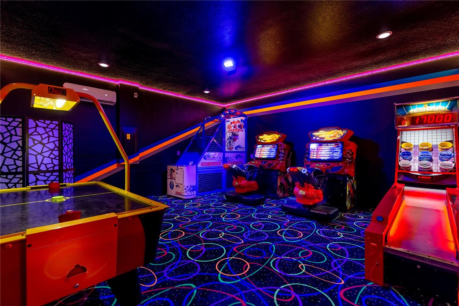 INCOME PRODUCING RENTAL HOME!! Feast your eyes on this beautiful 8-bedroom Maui floorplan in Champions Gate! Tastefully decorated and well maintained by current owners! This home is HEAVILY BOOKED & very impressive! This home has proven rental history and has already been fully optimized to standout in the rental market with multiple THEMED ROOMS including an incredible ARCADE THEMED GARAGE conversion complete with TWO RACING GAMES, SKII BALL MACHINE, POP-A-SHOT MACHINE, AND AIR HOCKEY!! The garage even has special carpet designed to POP with color under BLACKLIGHT! In addition to the garage conversion this home also has a SECRET FINDING NEMO THEMED CLOSET UNDER the staircase perfect for the little ones! Upstairs the OVERSIZED 9th bedroom has been converted to a CUSTOM MOANA TIKI THEMED BEDROOM with a SLIDE and IMMERSIVE MURAL WORK THROUGHOUT! It’s no surprise that this home is already a TOP PRODUCER from a rental standpoint! This fully furnished home is ready for a new owner. Champions Gate checks every box from an amenity standpoint with a multimillion-dollar community pool/clubhouse, lazy river, indoor cabanas with AC, arcade, fitness center, Champions Gate Country Club golf course, full-service restaurant, beach volleyball courts, onsite movie theater, & of course the Tiki Bar at the pool to cool down with a refreshing drink and meet new friends! Champions gate is in an excellent location being only a 15-minute drive to Disney Parks and close proximity to plenty of restaurants, theme parks, highways, & shopping. This fully furnished home is truly TURNKEY as the association takes care of all the general maintenance of the exterior. This home has been geared up to standout in the short-term rental market and will hit the ground running for the new owner! Don't miss your chance!! Make this you primary, second home, or investment property as this home comes with future bookings as well!