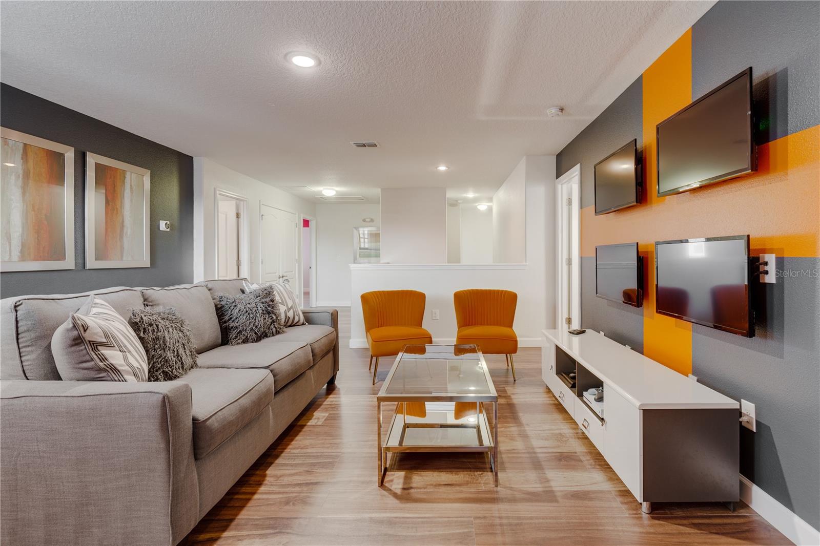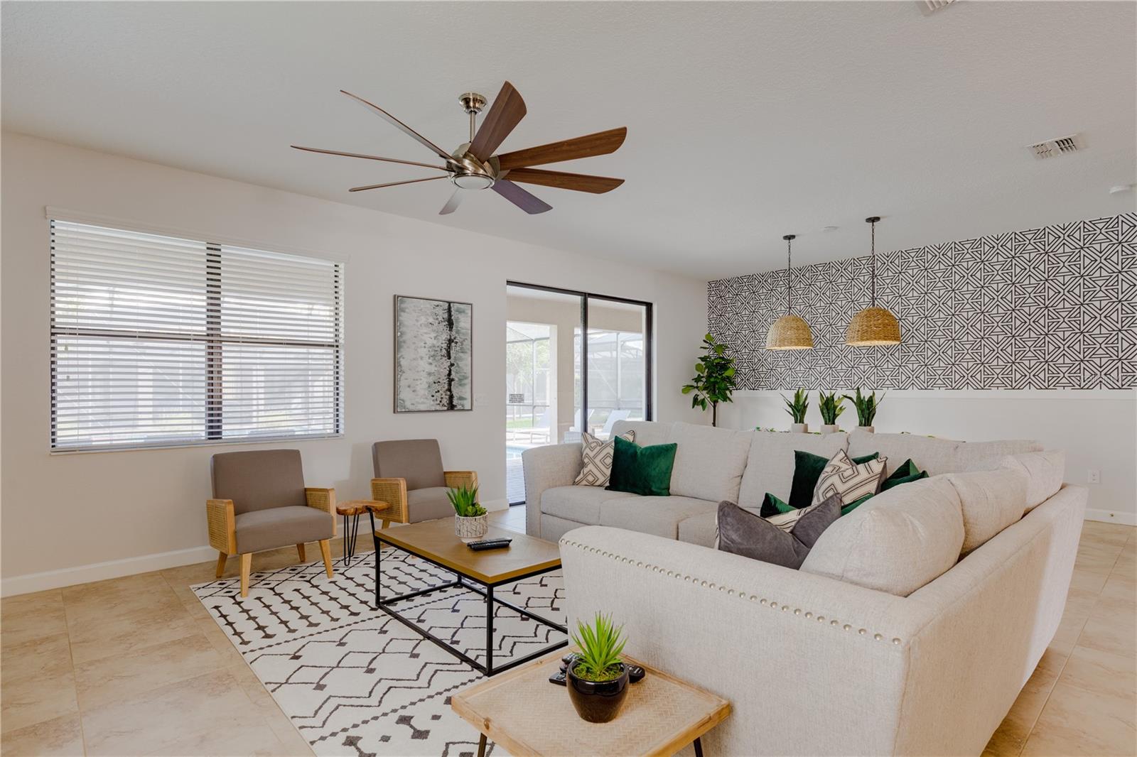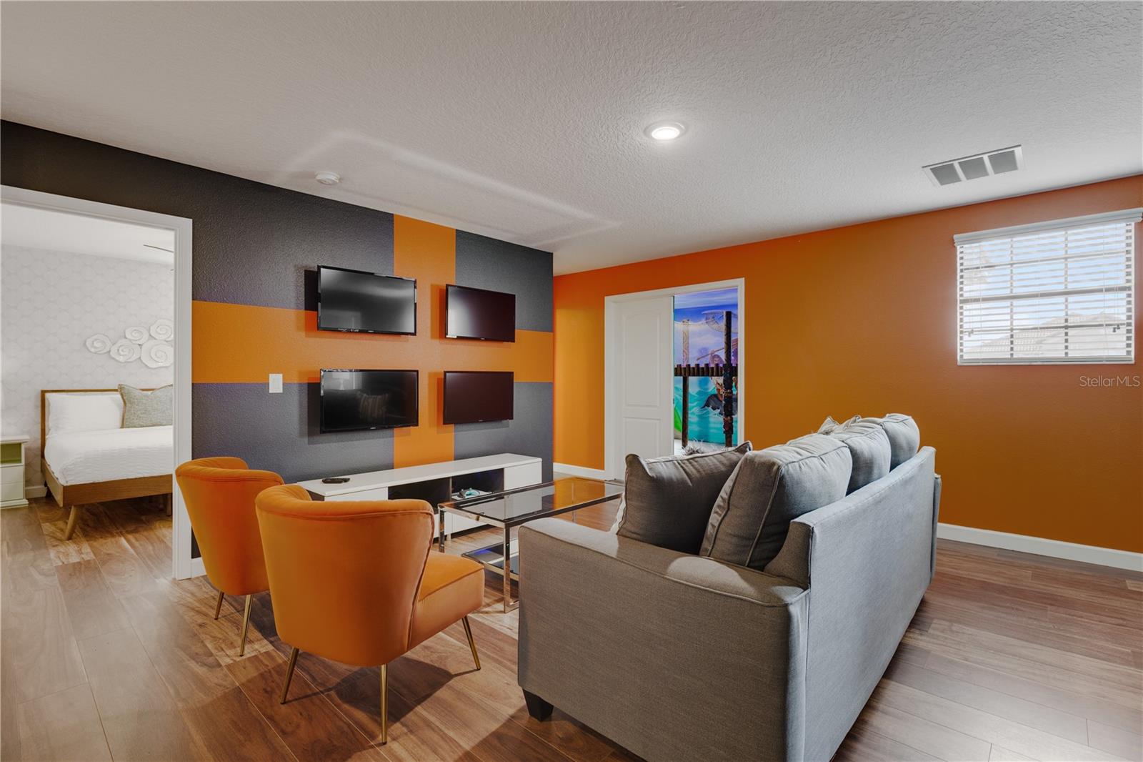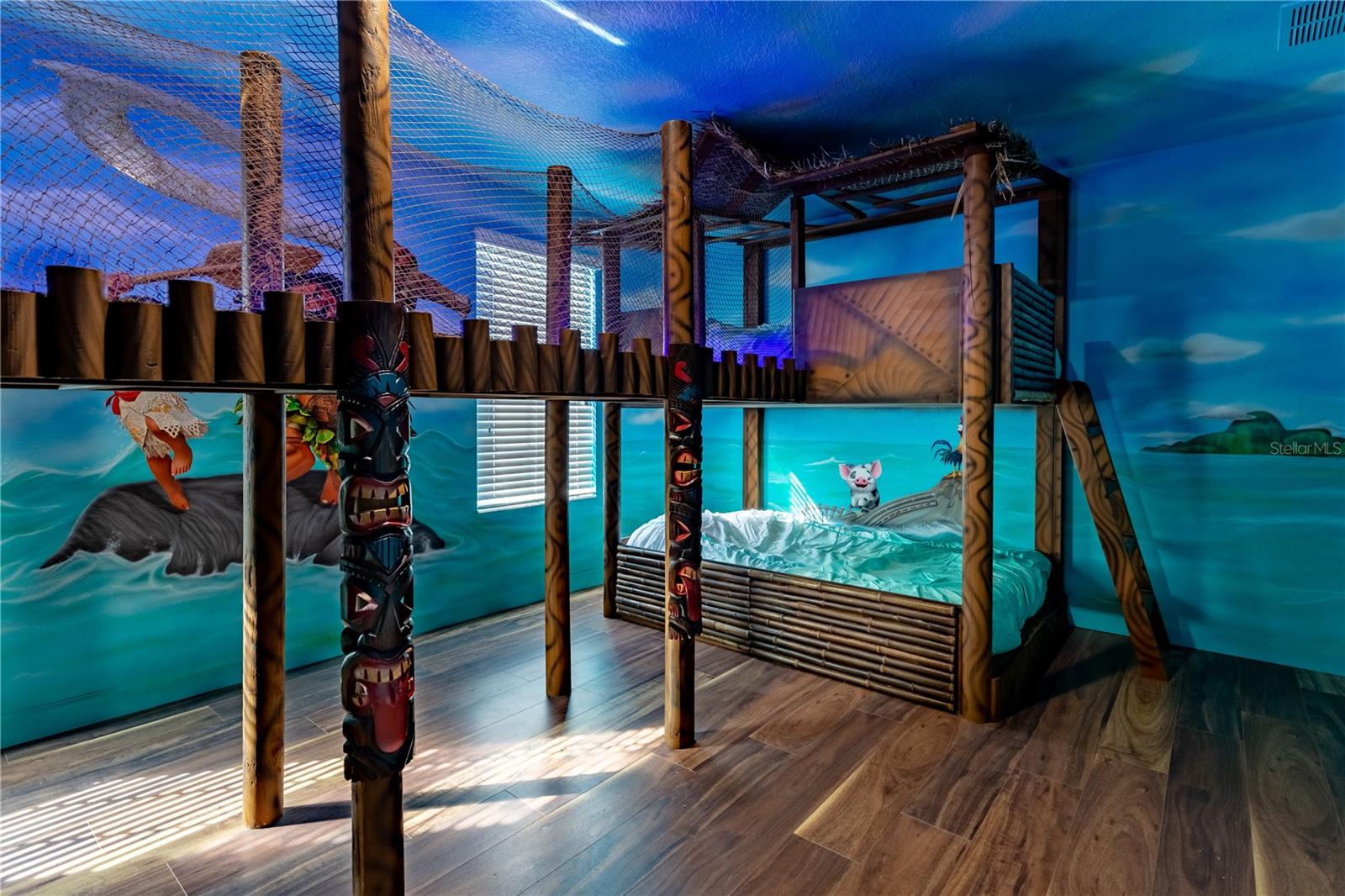 INCOME PRODUCING RENTAL HOME!! Feast your eyes on this beautiful 8-bedroom Maui floorplan in Champions Gate! Tastefully decorated and well maintained by current owners! This home is HEAVILY BOOKED & very impressive! This home has proven rental history and has already been fully optimized to standout in the rental market with multiple THEMED ROOMS including an incredible ARCADE THEMED GARAGE conversion complete with TWO RACING GAMES, SKII BALL MACHINE, POP-A-SHOT MACHINE, AND AIR HOCKEY!! The garage even has special carpet designed to POP with color under BLACKLIGHT! In addition to the garage conversion this home also has a SECRET FINDING NEMO THEMED CLOSET UNDER the staircase perfect for the little ones! Upstairs the OVERSIZED 9th bedroom has been converted to a CUSTOM MOANA TIKI THEMED BEDROOM with a SLIDE and IMMERSIVE MURAL WORK THROUGHOUT! It’s no surprise that this home is already a TOP PRODUCER from a rental standpoint! This fully furnished home is ready for a new owner. Champions Gate checks every box from an amenity standpoint with a multimillion-dollar community pool/clubhouse, lazy river, indoor cabanas with AC, arcade, fitness center, Champions Gate Country Club golf course, full-service restaurant, beach volleyball courts, onsite movie theater, & of course the Tiki Bar at the pool to cool down with a refreshing drink and meet new friends! Champions gate is in an excellent location being only a 15-minute drive to Disney Parks and close proximity to plenty of restaurants, theme parks, highways, & shopping. This fully furnished home is truly TURNKEY as the association takes care of all the general maintenance of the exterior. This home has been geared up to standout in the short-term rental market and will hit the ground running for the new owner! Don't miss your chance!! Make this you primary, second home, or investment property as this home comes with future bookings as well!