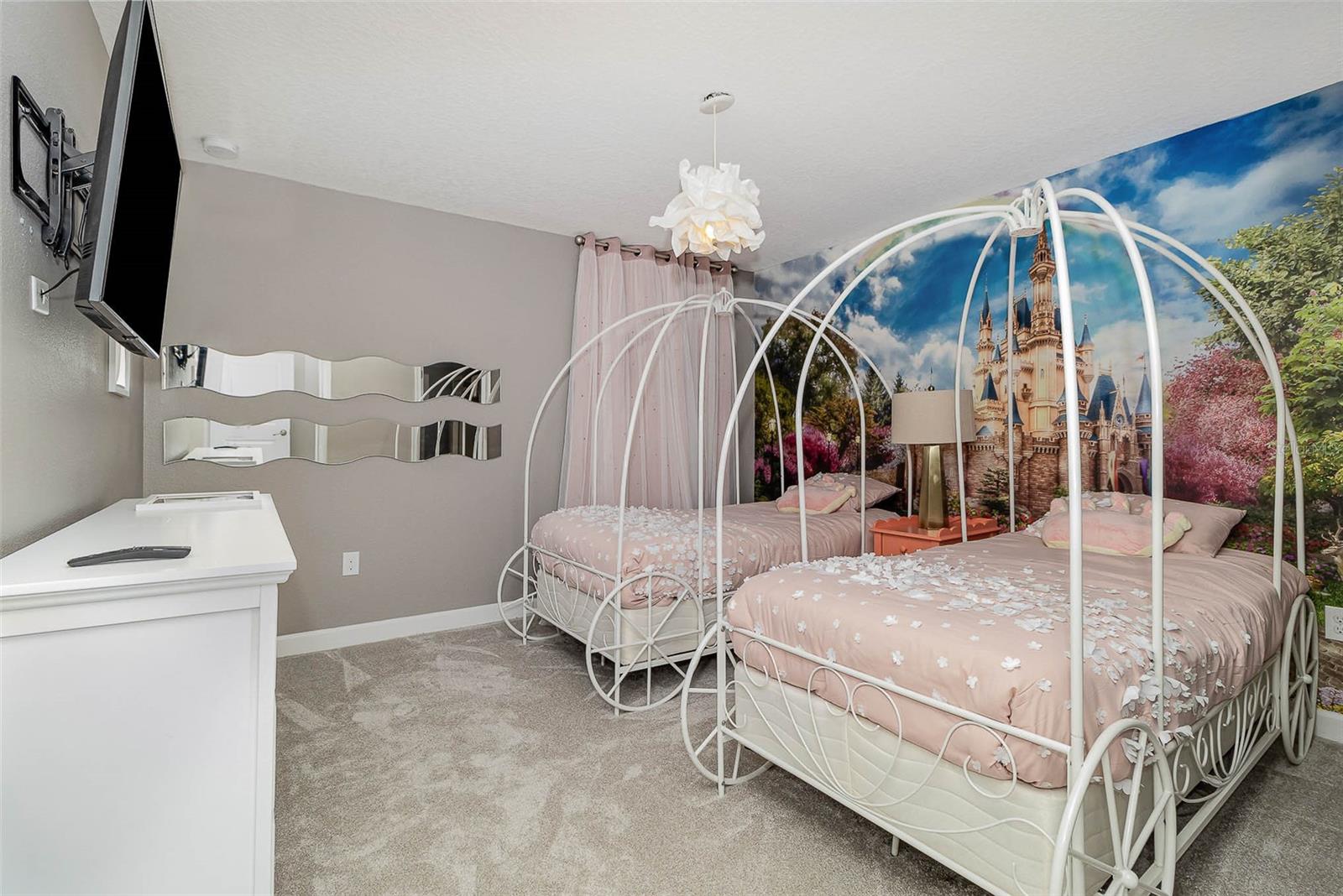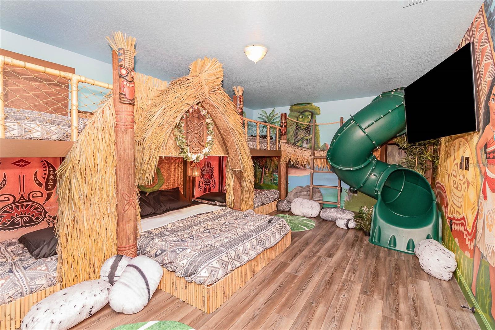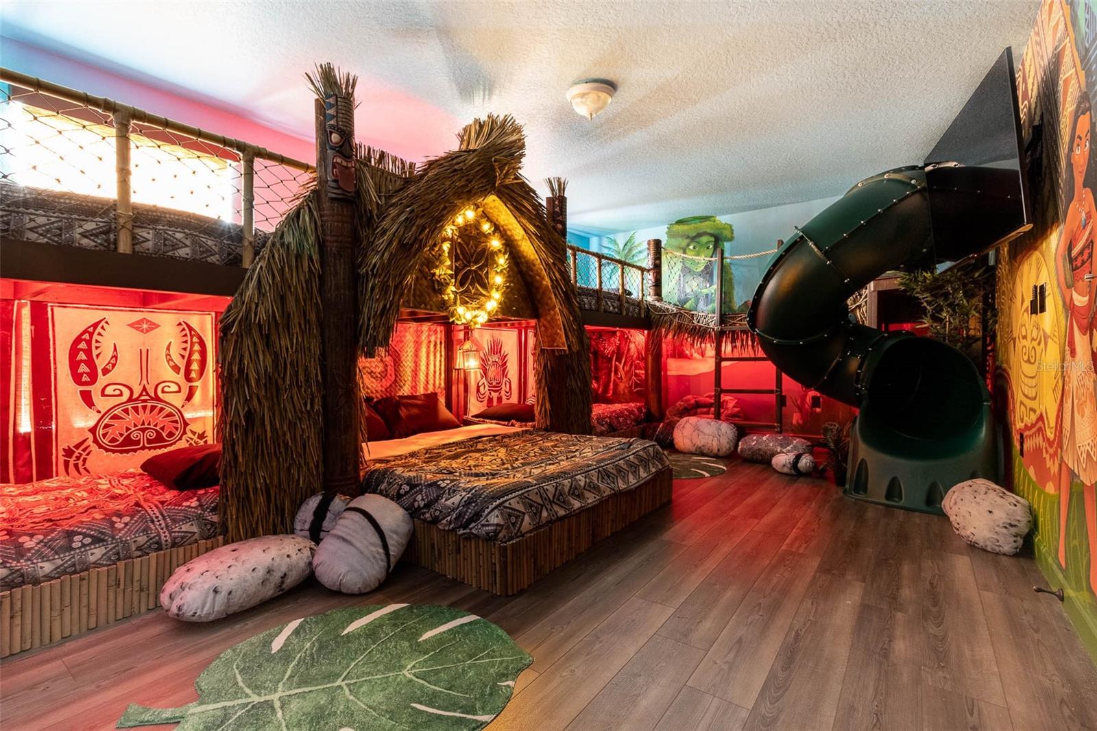 INCOME PRODUCING RENTAL HOME!! Feast your eyes on this beautiful 8-bedroom Maui floorplan in Champions Gate! Tastefully decorated and well maintained by current owners! This home is HEAVILY BOOKED & very impressive! This home has proven rental history and has already been fully optimized to standout in the rental market with multiple THEMED ROOMS including an incredible ARCADE THEMED GARAGE conversion complete with TWO RACING GAMES, SKII BALL MACHINE, STAND UP MULTICADE GAME, GOLDEN TEE AND AIR HOCKEY!! The garage even has special carpet designed to POP with color under BLACKLIGHT! In addition to the garage conversion this home also has a SECRET FIREMAN THEMED CLOSET UNDER the staircase perfect for the little ones! Upstairs the OVERSIZED 9th bedroom has been converted to a CUSTOM MOANA TIKI THEMED BEDROOM with a SLIDE and beautiful MURAL WORK THROUGHOUT! It’s no surprise that this home is already a TOP PRODUCER from a rental standpoint! This fully furnished home is ready for a new owner. Champions Gate checks every box from an amenity standpoint with a multimillion-dollar community pool/clubhouse, lazy river, indoor cabanas with AC, arcade, fitness center, Champions Gate Country Club golf course, full-service restaurant, beach volleyball courts, onsite movie theater, & of course the Tiki Bar at the pool to cool down with a refreshing drink and meet new friends! Champions gate is in an excellent location being only a 15-minute drive to Disney Parks and close proximity to plenty of restaurants, theme parks, highways, & shopping. This fully furnished home is truly TURNKEY as the association takes care of all the general maintenance of the exterior. This home has been geared up to standout in the short-term rental market and will hit the ground running for the new owner! Don't miss your chance!! Make this you primary, second home, or investment property as this home comes with future bookings as well!