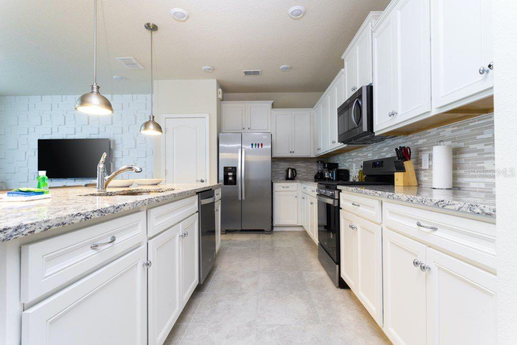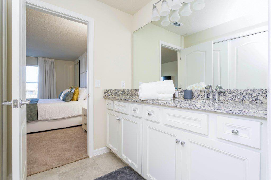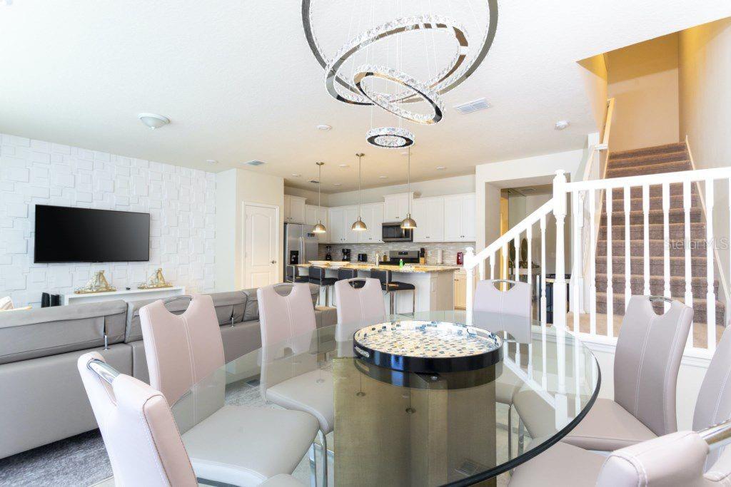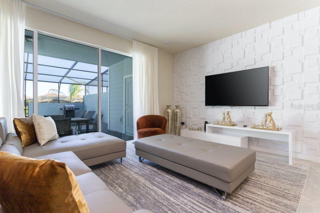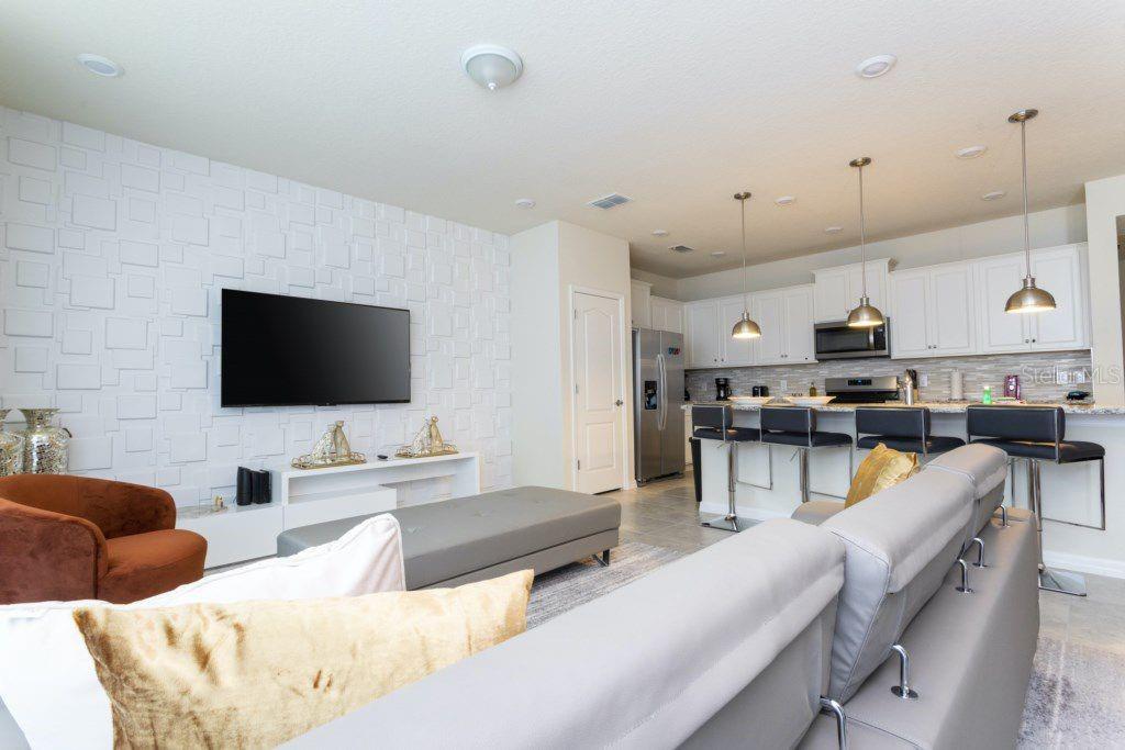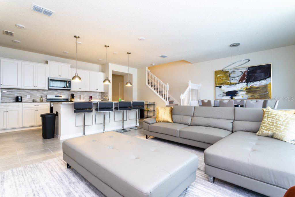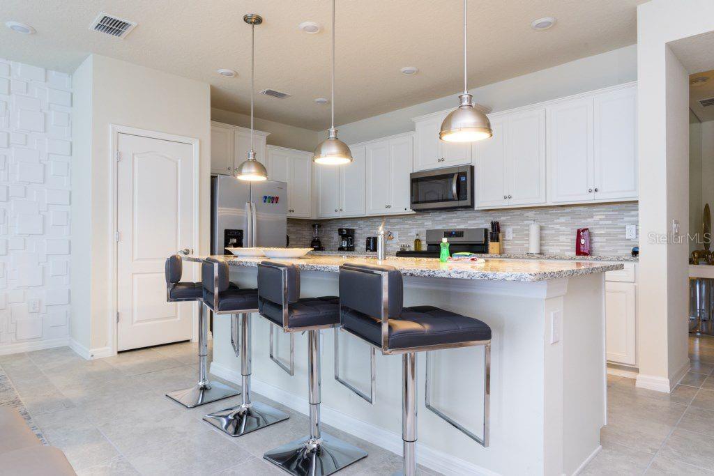 Welcome to Solterra Resort, a gated community just minutes from the major theme park attractions. This stunning five-bedroom, four-and-a-half-bathroom townhome boasts modern elegance with granite countertops, stainless steel appliances, effortlessly blending comfort with style. Ideal for families or as an income-producing short-term rental, this home features one bedroom downstairs and four upstairs, ensuring privacy and convenience for all. The soundproof design guarantees peace, while the private pool and patio offers a tranquil outdoor retreat. Don't let this opportunity slip away – schedule your showing today and secure your slice of Florida paradise! Great investment opportunity.