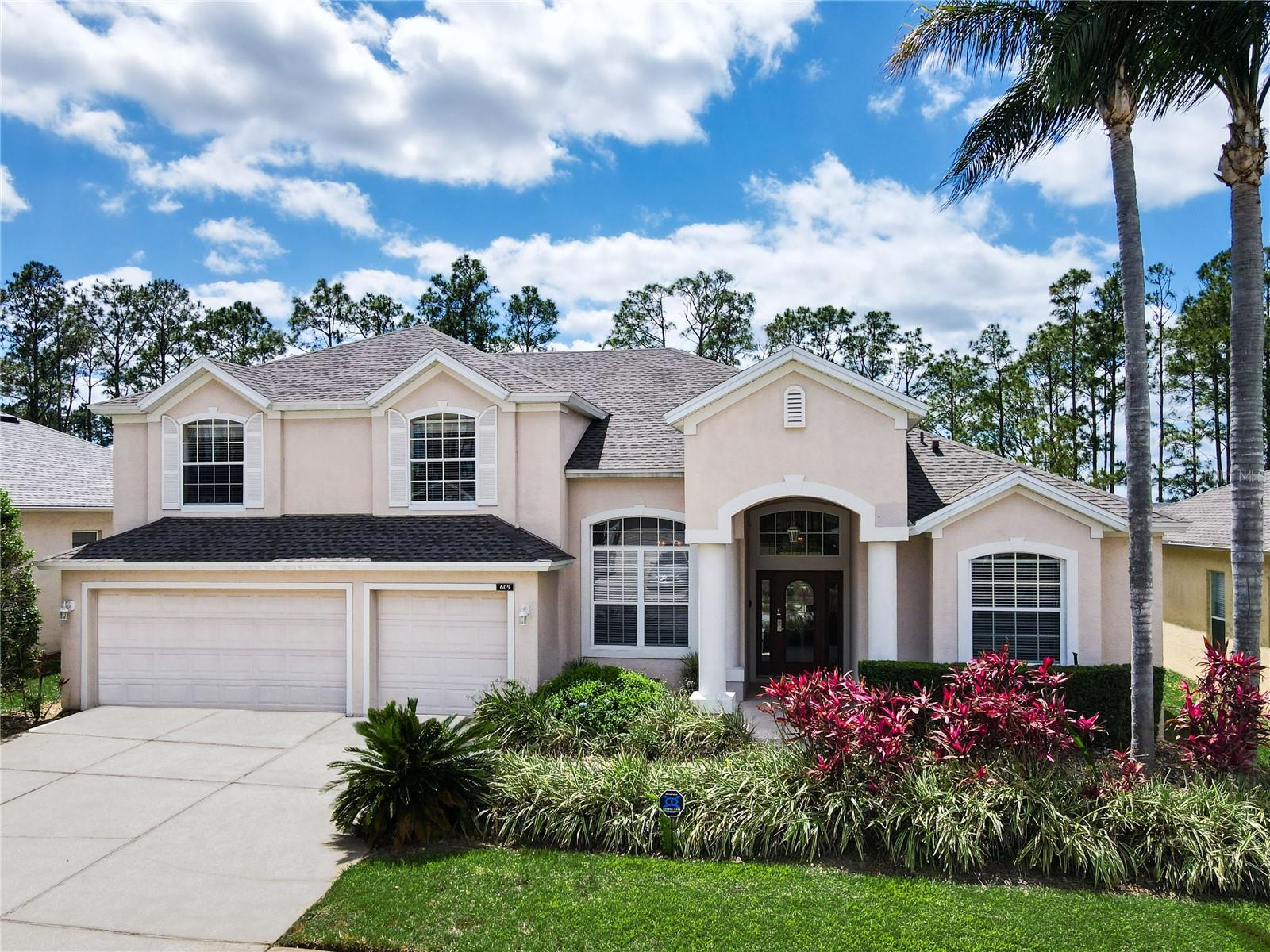 Presenting an exceptional opportunity to own a magnificent residence or vacation home spanning over 3800 square feet. This impressive five-bedroom, three-bathroom dwelling features a west-facing pool with a generous deck that offers stunning views of the woods, golf course, and breathtaking sunsets. Impeccably maintained, this property is ready for you to move in and start enjoying. The opulent first-floor Master suite boasts a cozy sitting area and direct access to the inviting pool. As an added bonus, the home includes an additional first-floor bedroom. The open-concept kitchen is perfect for both casual family gatherings and formal dining occasions. Don't miss this opportunity to own a property in a community with low HOA fees and no CDD, providing golf amenities and convenient access to the airport, theme parks, highways, and more.