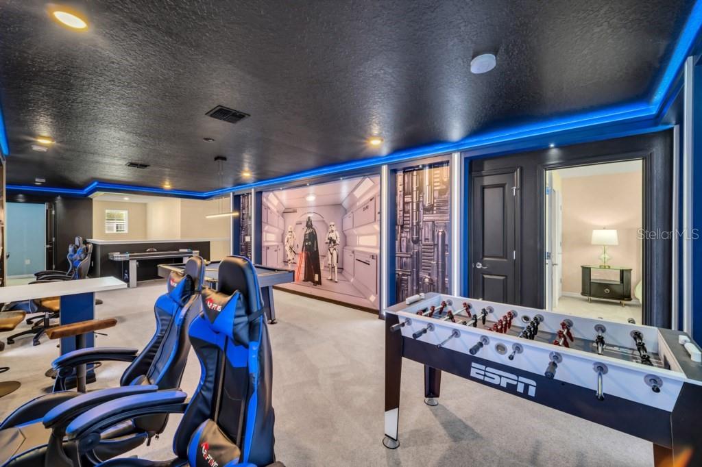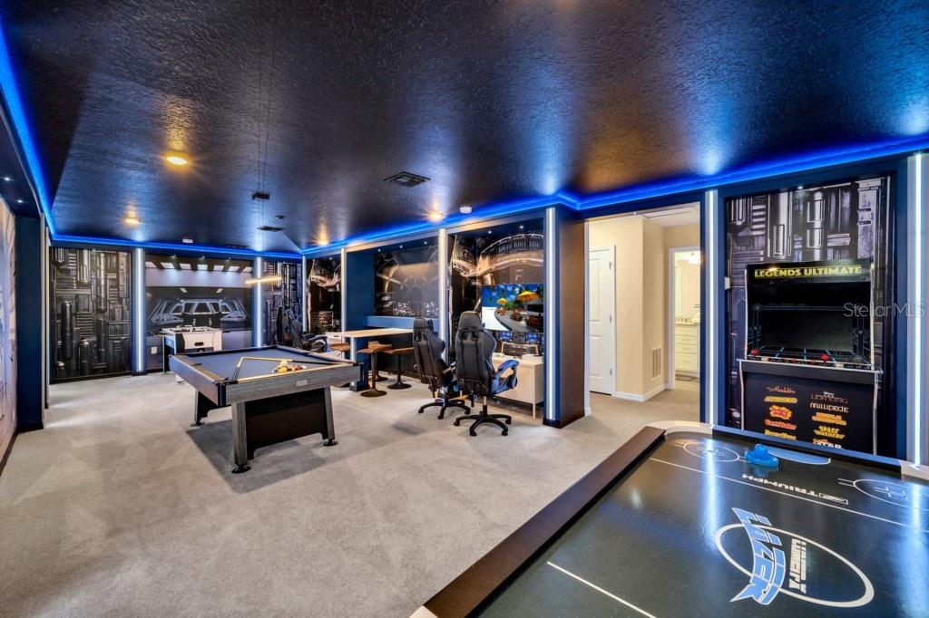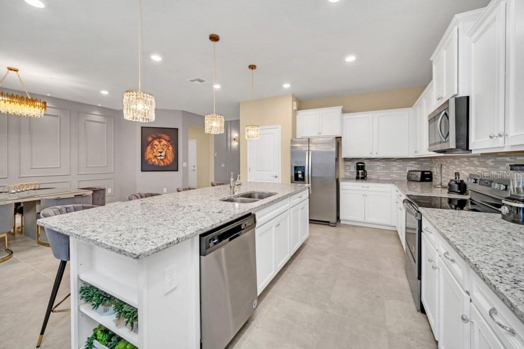 Welcome to this BEAUTIFUL DECORATED FULLY FURNISHED home with 8 Bedrooms and 6 Full Bathrooms!! This meticulously maintained property offers the perfect blend of comfort, style, and convenience. This home offers multiple themed bedrooms and Star Wars themed loft with billiards & game room that will make you speachless. Step inside to discover an inviting open floor plan adorned with modern finishes and plenty of natural light. The spacious living area is perfect for hosting gatherings or relaxing with loved ones. The gourmet kitchen features sleek countertops, stainless steel appliances, and ample storage space. Retreat to the luxurious master suite boasting a spa-like ensuite bath and walk-in closet. Escape to the backyard oasis, where you'll find a tranquil retreat complete with a patio area, ideal for al fresco dining or enjoying the Florida sunshine. The expansive yard offers endless possibilities for outdoor recreation and entertainment. Conveniently situated for effortless access to shopping, dining, entertainment, and top-rated schools. Disney World, Universal Studios, and other attractions are just a short drive away, making it an ideal choice for families or vacation rental investors. Don't miss your chance to own this exceptional property!!