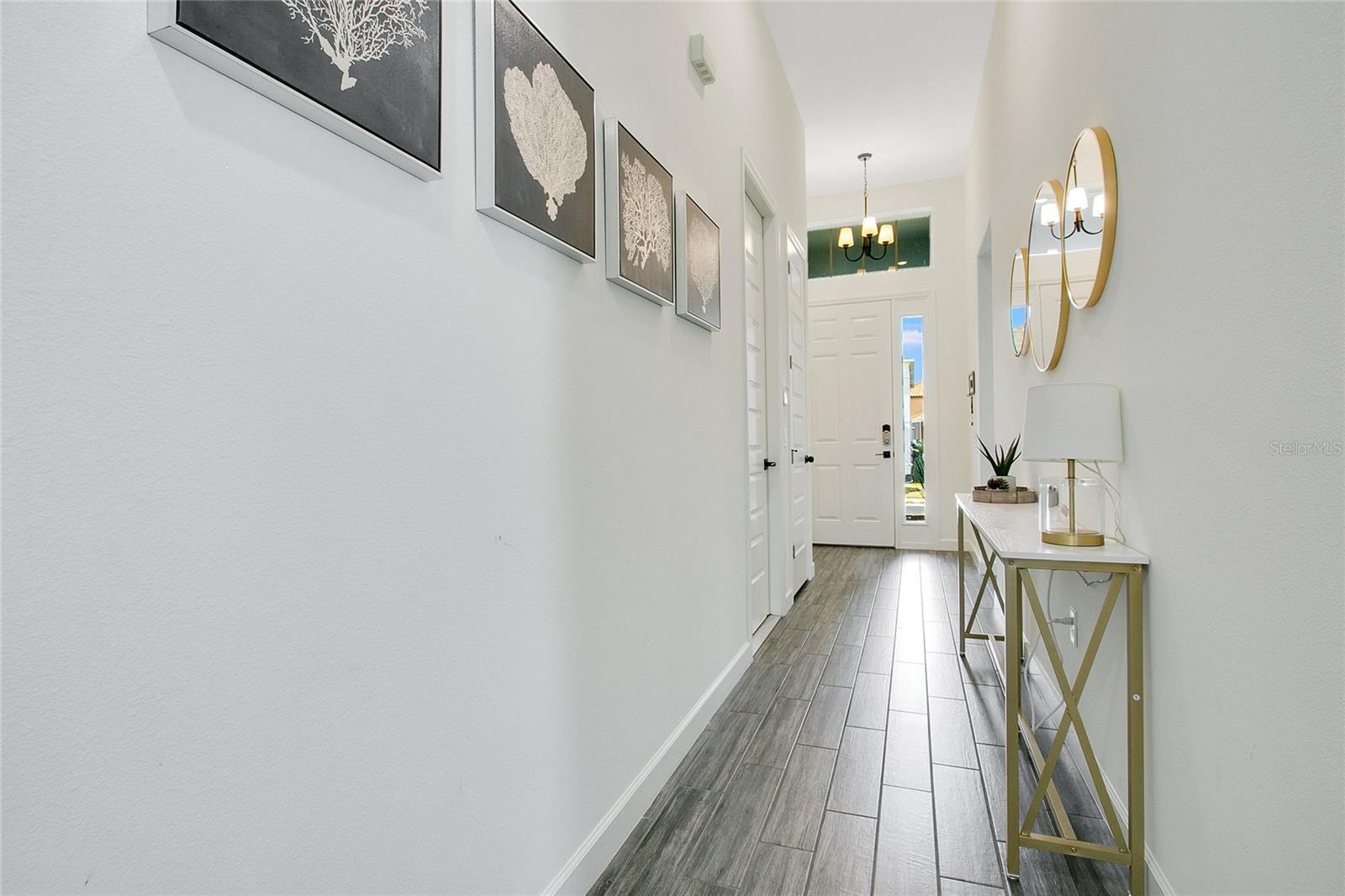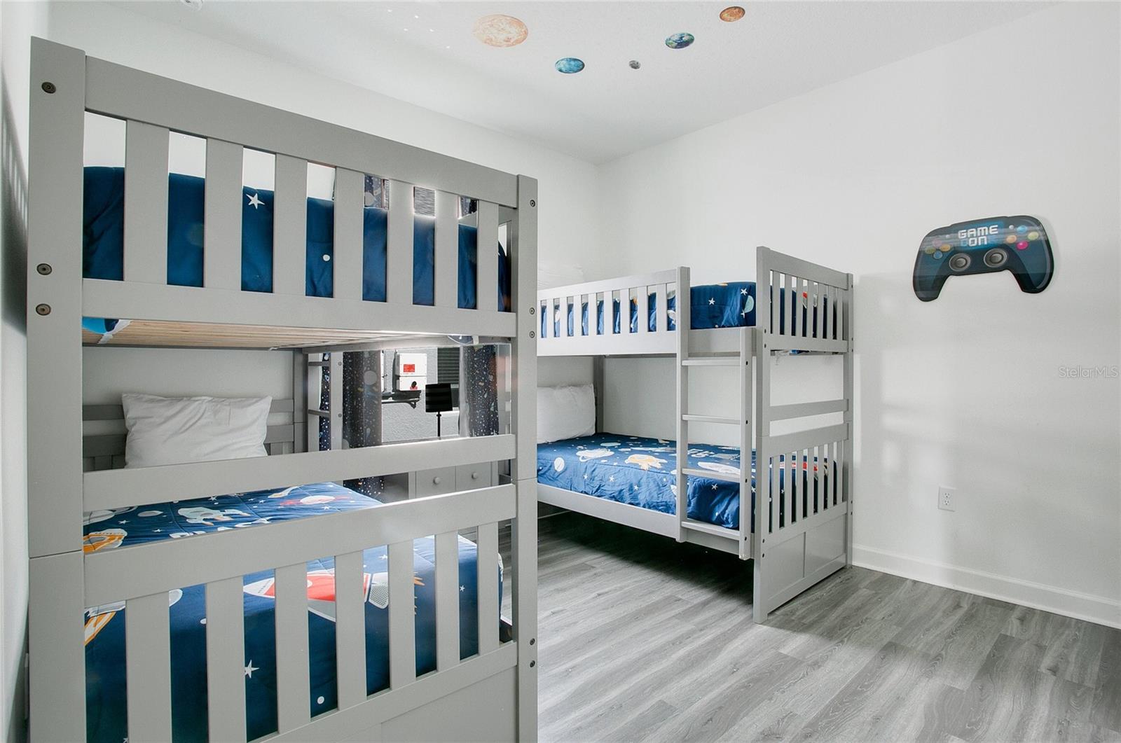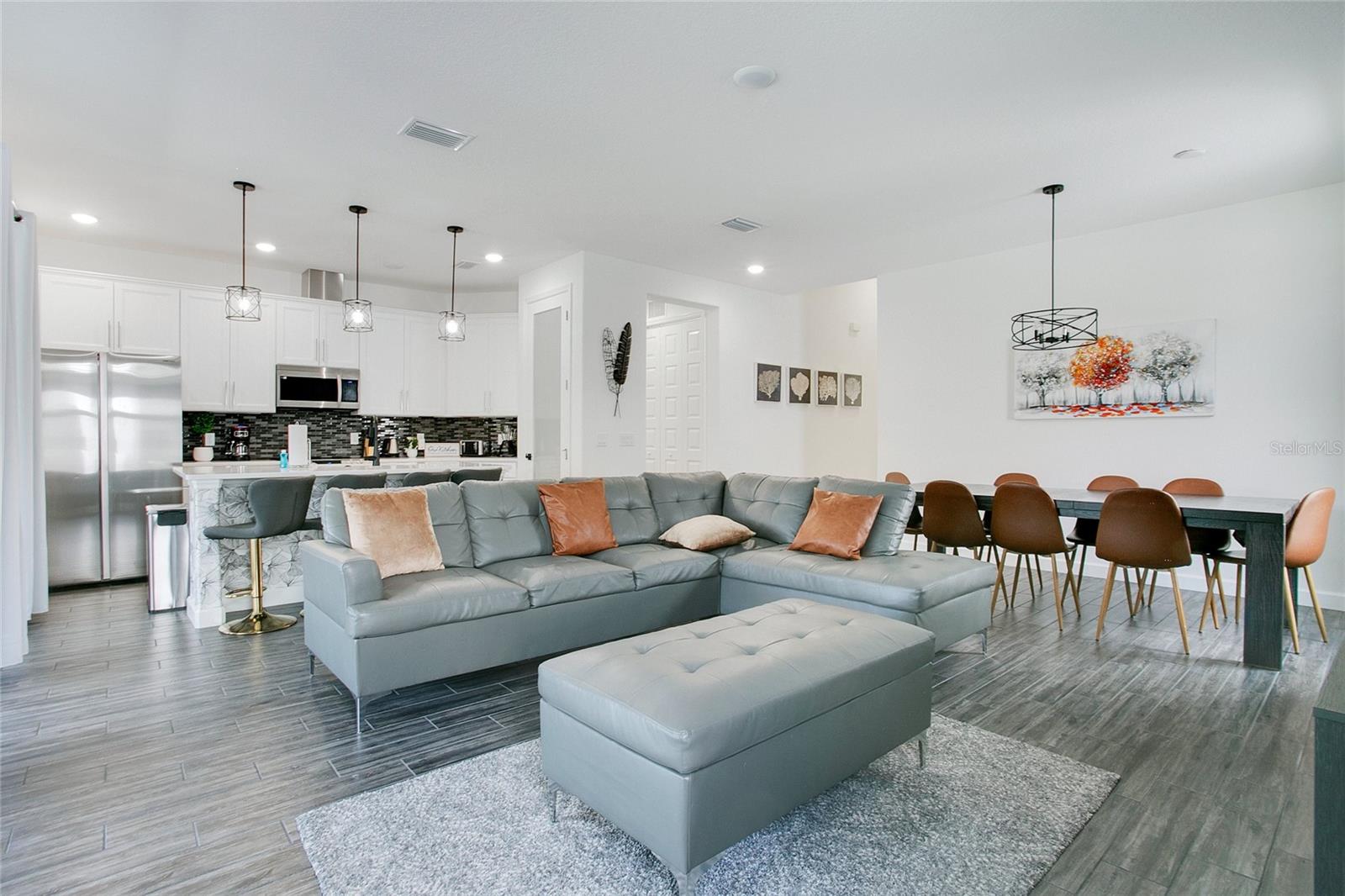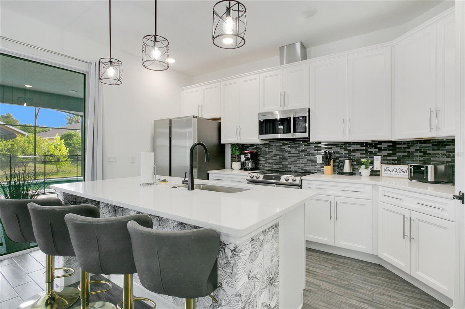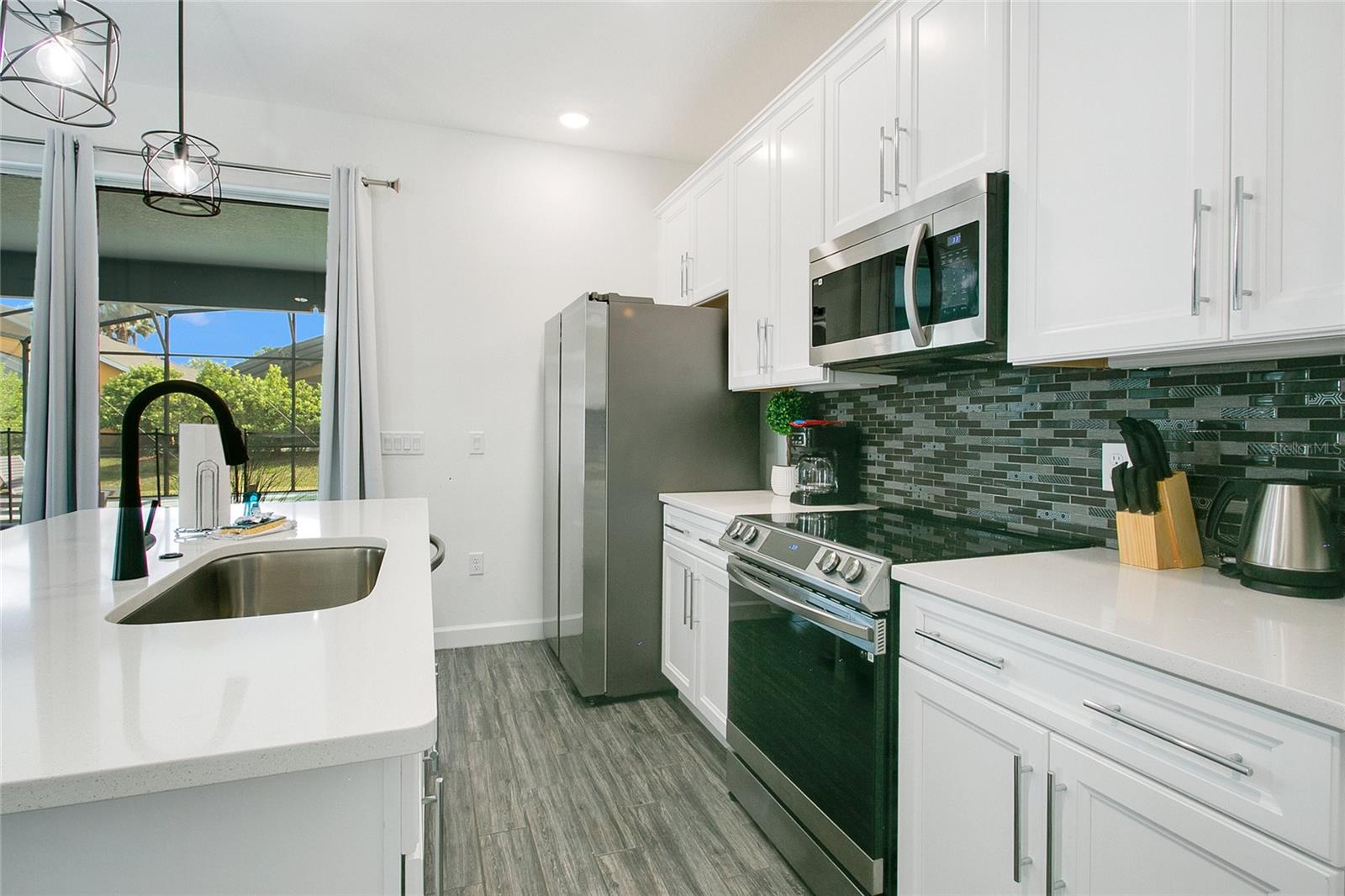 Nestled in the 24-hour guard gated, Champion golf course community of Victoria Woods of Providence, this turnkey, fully furnished 4 bedroom, 3 bathroom pool home offers a luxurious escape just minutes from Orlando's iconic attractions. This approved short term rental community, is designed with the vacationer in mind, ensuring entertainment is never far. High ceilings and abundant natural sunlight welcome you inside, where tile flooring leads you passed the first two bedrooms and guest bathroom through to a spacious open entertainment area. The seamless flow between the living room and kitchen creates an ideal environment for gathering, with a large breakfast bar adorned by pendant lighting, stone countertops, stainless steel appliances, and beautiful 42" wood cabinetry. Views of the sparkling pool are visible through large sliding glass doors, enhancing the home’s open feel. Outdoors, the screened-in pool invites you to take a refreshing dip or unwind under the spacious covered lanai. Within the amenity-rich community, indulge in a round of golf at the award winning Michael Dasher 18-hole golf course, or take a splash in the resort-style pool with slides, a lap pool, tennis courts, and a fitness center. Additional amenities include a clubhouse with a pro shop, a full-service restaurant and bar, and miles of sidewalks for safe biking, jogging, or leisurely walks under the Florida sun. This home is not just a residence but a gateway to the coveted Florida lifestyle, ready for you to dive right in so schedule your private showing today!