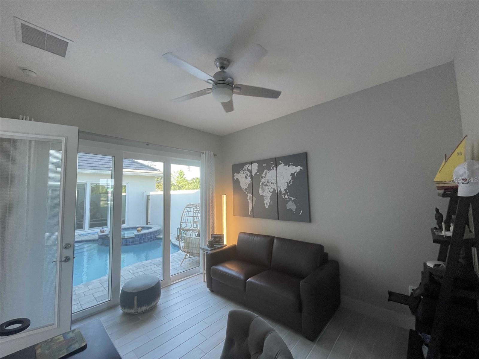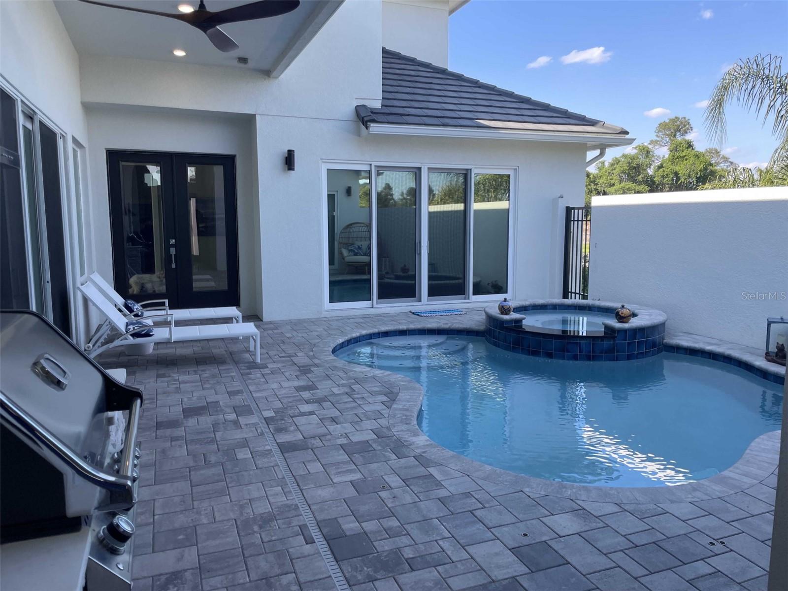 Back on the Market This stunning custom-built pool home offers 4 Bedrooms, 3.5 Bathrooms with 2826 sq feet air-conditioned space and private outdoor entertainment space that combines a highly customized heated automated pool and spa with waterfall and LED lights in the courtyard. Pool house or casita with full bathroom and closet, perfect for guests or home office. Additional Home Upgrade includes. Samsung built-in appliances in gourmet kitchen with quartz & granite countertops, large island, wine fridge and walk-in pantry Custom outdoor kitchen with gas grill. fan hood, sink, and granite countertops Customized laundry room with lots of storage and built-in utility sink Closet Built-in Whole house water filtration system Extended 2nd Patio off of Great room, perfect place to watch the rockets lift off Special tinted windows Extensive landscaped corner lot Details of home Main floor master suite with dual sinks, walk-in shower, and soaking tub Custom master closet with built-in drawers, shelves, and hanging rods. Spacious loft area upstairs with two additional bedrooms and a full bathroom Separate Office or 4th bedroom with ensuite bath Smart home features with automated lights, ring doorbell & security system This beautiful home sits on a 60+ wide lot in gated golf course community in the desirable area of Davenport, Florida. Enjoy the convenience of being close to shopping, dining, entertainment, and Disney Parks. The community offers public golf w/restaurant clubhouse, a fitness center, a playground, and a resort-style pools and pickle ball courts. This is a golf cart community. Home is also available for lease MLS #O6253831
