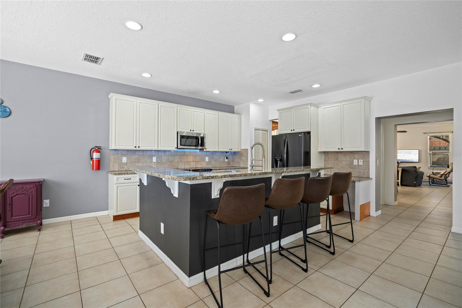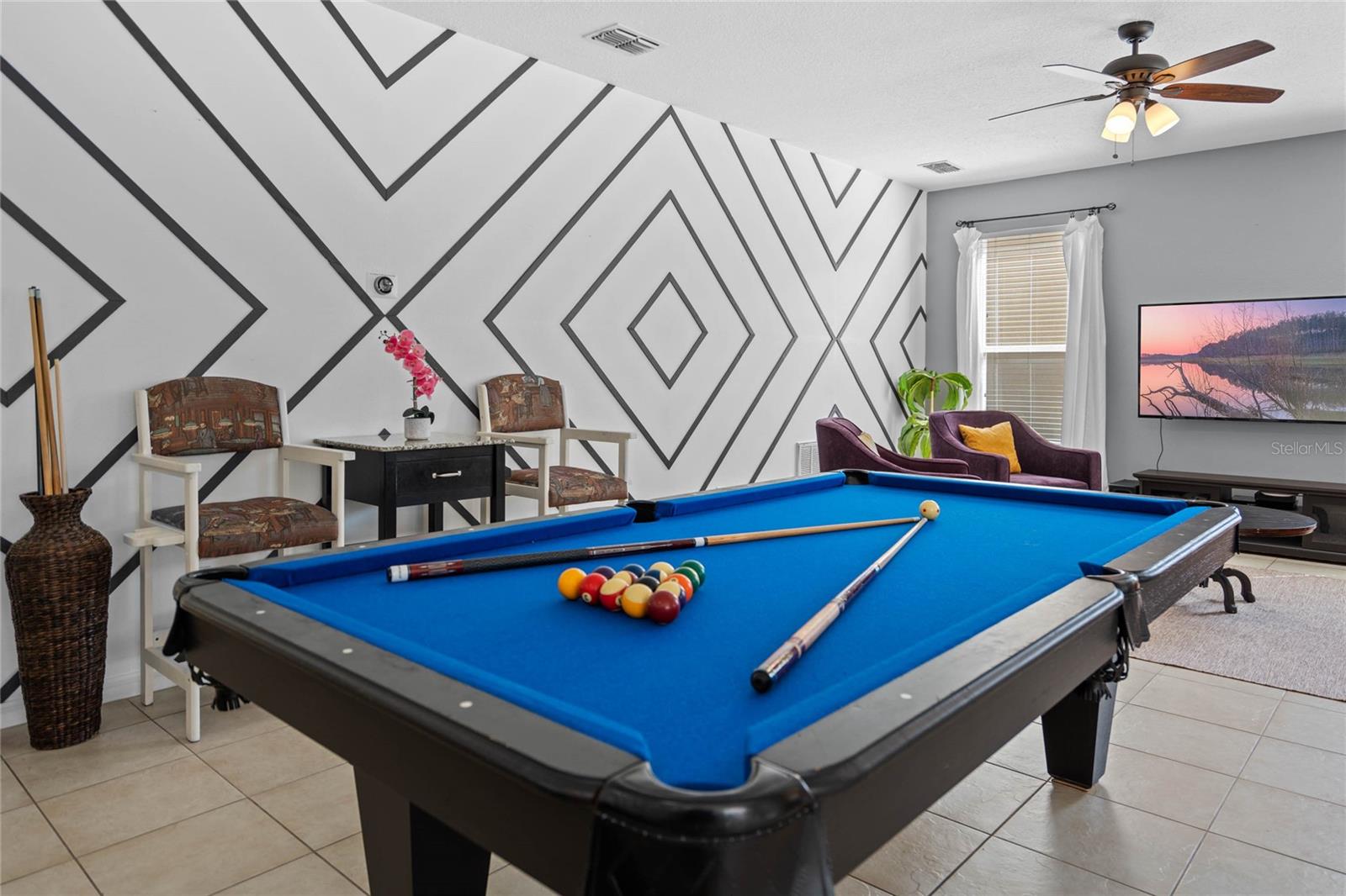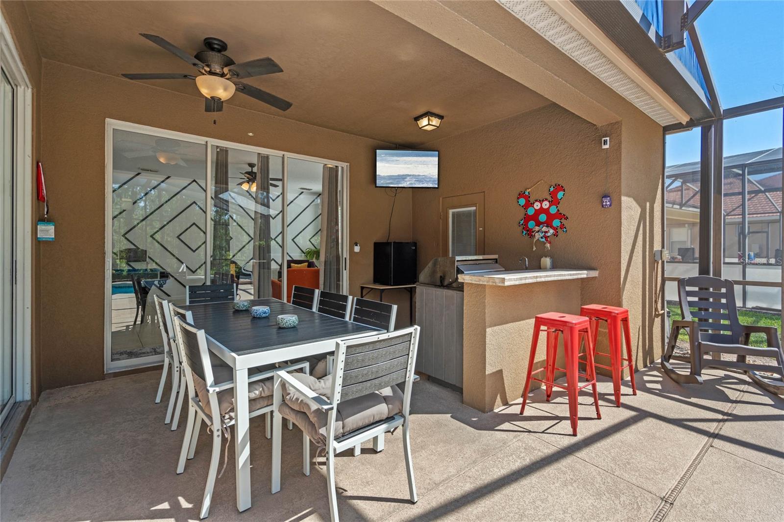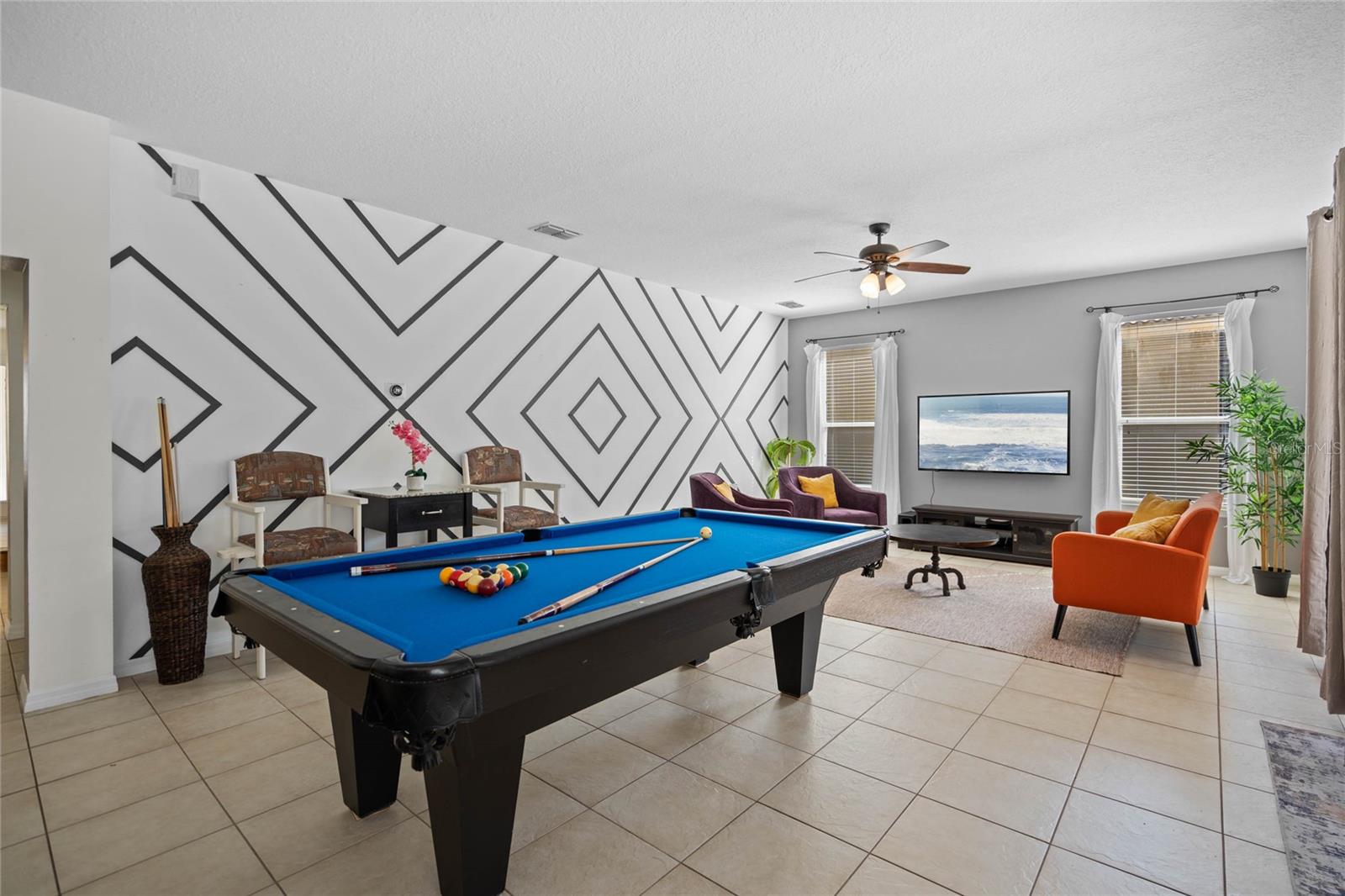 **Seller offering a $10K Credit toward a 2/1 Rate Buy-Down and/or closing costs with Full Price Offer** What sets this home apart from others in the area? Whether you are looking for a home for a growing family, a vacation home, or short/long term rental, the ENERGY this large fully-furnished 6 bedroom home provides will keep you and your guests excited to return. Enjoy your day listening to sounds from the nature preserve, swimming in the SOUTHERN FACING POOL with privacy shrubs, grilling on the built in grilling station, soaking in the hot tub, and cleaning up in the pool ½ bath and outdoor shower. Control the pool and hot tub temperature and light colors from an app on your phone. The two sets of sliding glass doors and the large windows overlooking the pool area allow the indoor and outdoor living spaces to feel combined as one SPACIOUS area. Upon entering the home from the lanai covered pool area, you are welcomed by the OPEN kitchen, dining room, the living room with pool table and gorgeous accent wall. Continuing on, you will find a butlers pantry, the second half bath, second living room, and entrance to the garage. The garage has been converted to a game room with an extra full-size fridge/freezer, but could be converted into a garage for cars to park in if preferred. Ceramic tile lines the main floor and each room, has a mounted TV. Upstairs, you will find the laundry room, plenty of closets, an office/den area, a sitting space, and 6 bedrooms: 4 with ensuite bathrooms and 2 sharing a jack and jill. The flooring in all bedrooms is wood laminate. All bedrooms have a mounted TV. Control the home temperature from an app on your phone. UPDATES:Pool/Spa Resurfaced and Retiled, New Filter and Housing, New Pool Heater. All new paint and accent walls throughout the house. New Water Heater. Updated decor. Updated 42” kitchen cabinets and dishwasher. Updated garage game room. Pool Table Professionally Resurfaced and Leveled. SAFETY: Private gated community with 24/7 guard. Pool gate, lanai pool cover, door stoppers to pool. AMENITIES: The HOA includes trash valet service, mowing of Saint Augustine grass, and overlooking of irrigation system and timing, cable, internet, phone, stocked doggie stations throughout, and paved sidewalks. The community center offers a sand volleyball court, playground, pool, hot tub, grilling stations, bathrooms, game room, computer room, gym, and putt-putt golf.