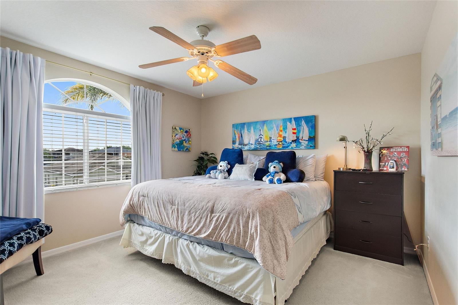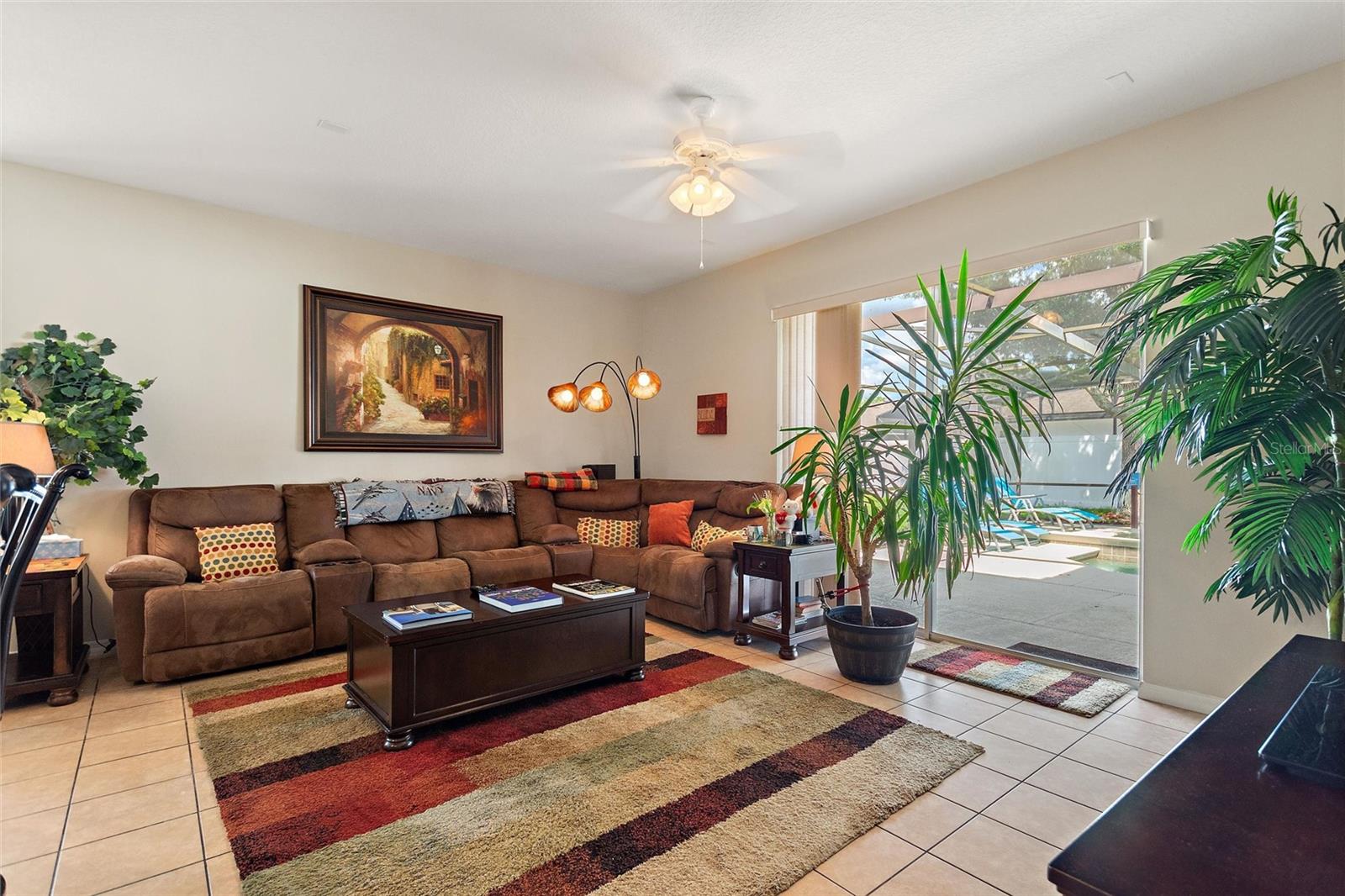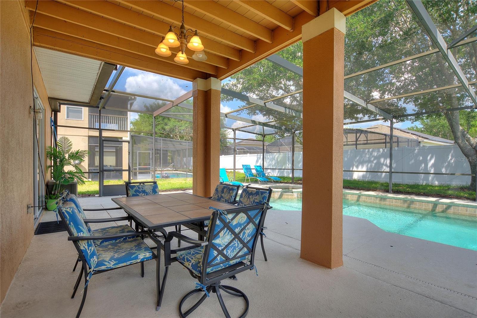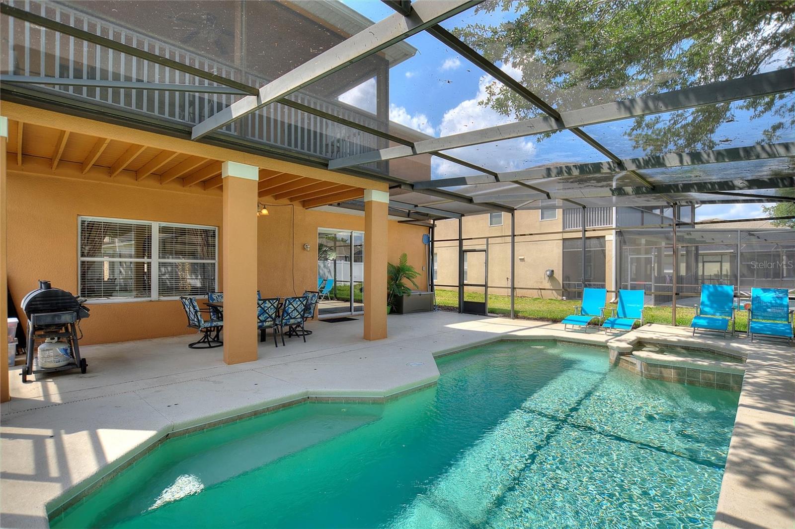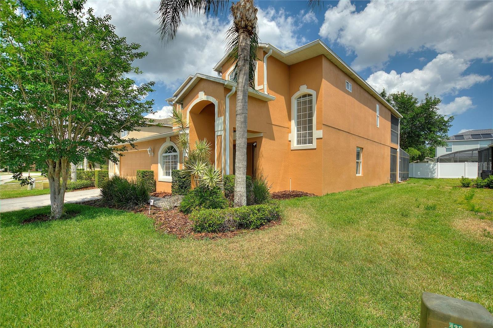 Beautiful and expansive home located in the gated community of The Shire at West Haven. Featuring 5 bedrooms and 3 bathrooms with a PRIVATE BALCONY overlooking the large pool and spa. Open floor plan on the first floor. The great room is open to the eat in kitchen and benefits from views of the pool. The kitchen with central island has Corian counters tops. There is a large bedroom and full bath on the first floor for convenience and the other 4 bedrooms are on the second floor. The master bedroom leads directly out to the screened balcony overlooking the pool and spa. This master bedroom boasts a huge walk in closet and bathroom with soaking tub, separate shower and dual vanities. This home can be a PRIMARY RESIDENCE or SHORT TERM RENTAL home. Homes in the Shire have access to the West Haven clubhouse which has a pool, volleyball court, and gym. There are great amenities included with the HOA fee such as LANDSCAPING, SECURITY GATE, BASIC CABLE & WIFI, CLUBHOUSE, TENNIS ETC. Located just a short drive from Disney and the attractions area, close to I4 access to the west coast beaches/Tampa or eastbound into downtown Orlando and Universal Studios and International Drive. Davenport and ChampionsGate offers great options for shopping, dining and movies at Posner Park Village, dining and golf at the nearby Omni resort as well as local medical facilities, Target, Marshalls, Lowes, BJ's etc.