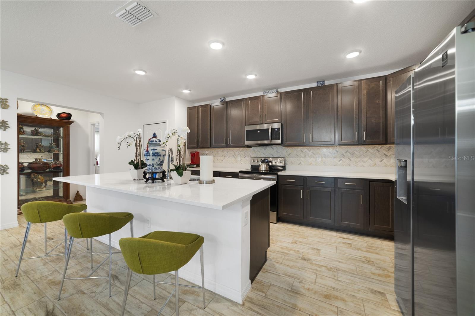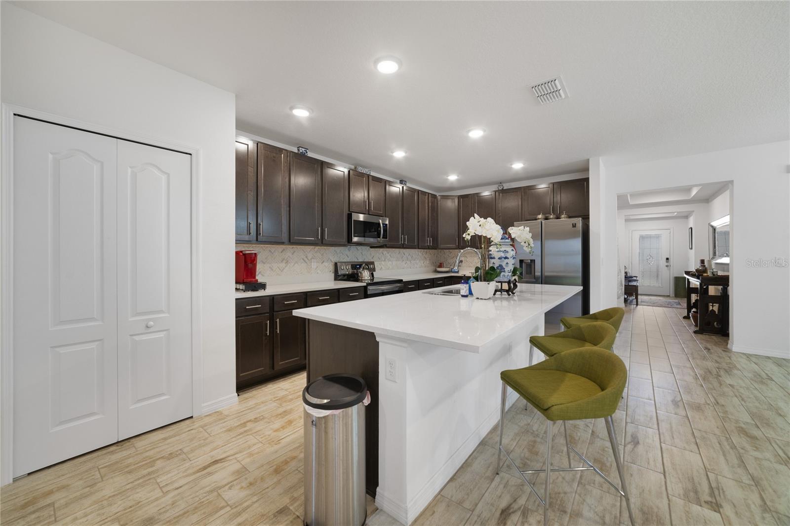 Come tour your new home. Offering a cozy yet spacious layout, this 4-bedroom, 2-bathroom retreat encompasses over 2000 square feet of comfortable living space, accompanied by an ample 2-car garage for your convenience. Prepare meals with ease in the gourmet kitchen, featuring stainless steel appliances, upgraded cabinets, and quartz countertops that add a touch of sophistication. The oversized quartz island provides a casual dining spot and overlooks the welcoming Great Room and Dining Room, creating a perfect space for gathering and entertaining. Relax in the Primary Suite, complete with an oversized closet and en-suite bath featuring quartz countertops for a touch of luxury. Three additional bedrooms share a full bath, providing ample space for family and guests. Plus, enjoy the convenience of indoor laundry with high-quality washer and dryer included. As an added bonus, take advantage of the HOA's recreational facilities, ensuring there's always something fun to do close to home. Don't miss out on the chance to call this stunning home your own. Schedule your private tour today!
