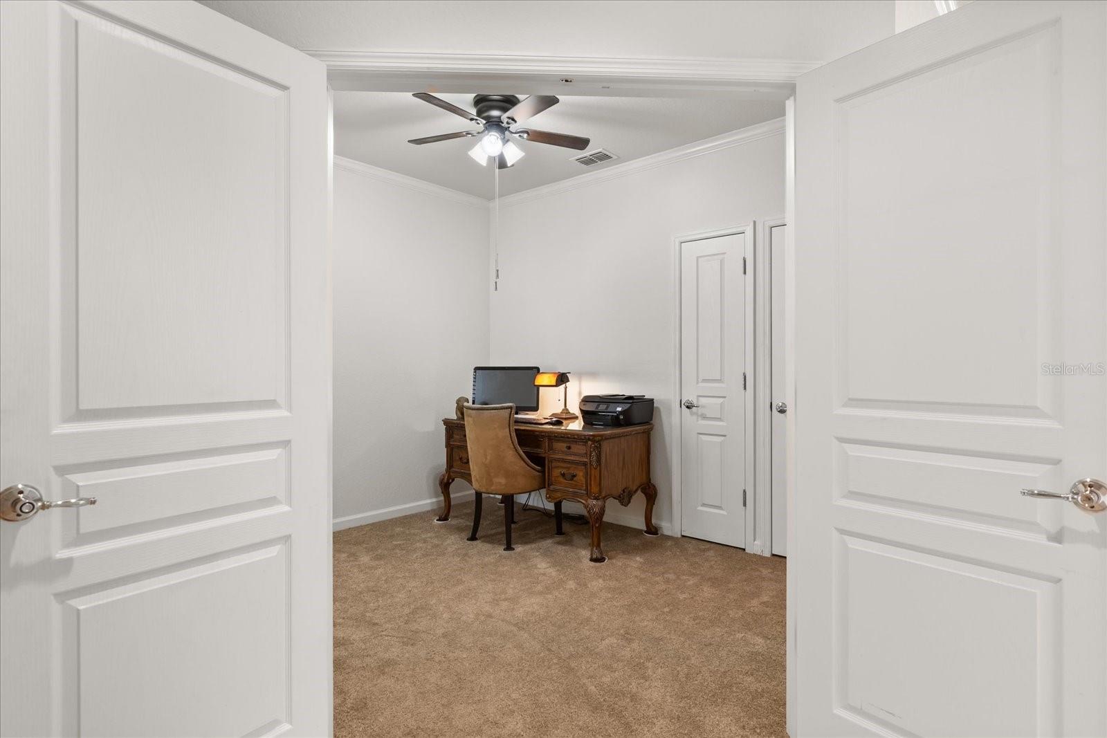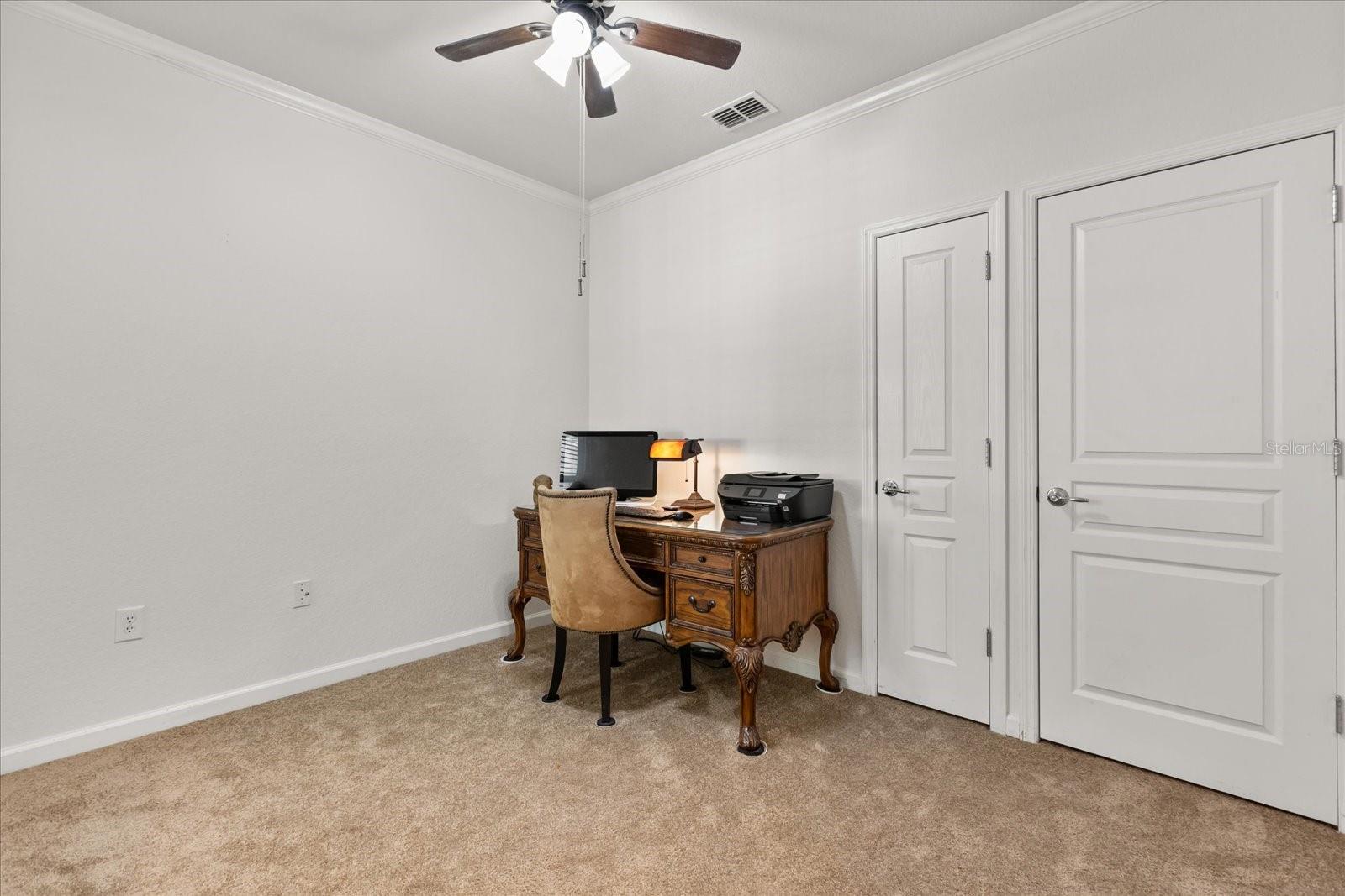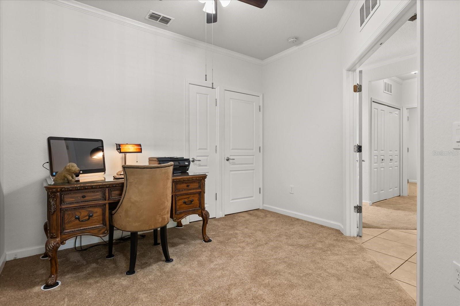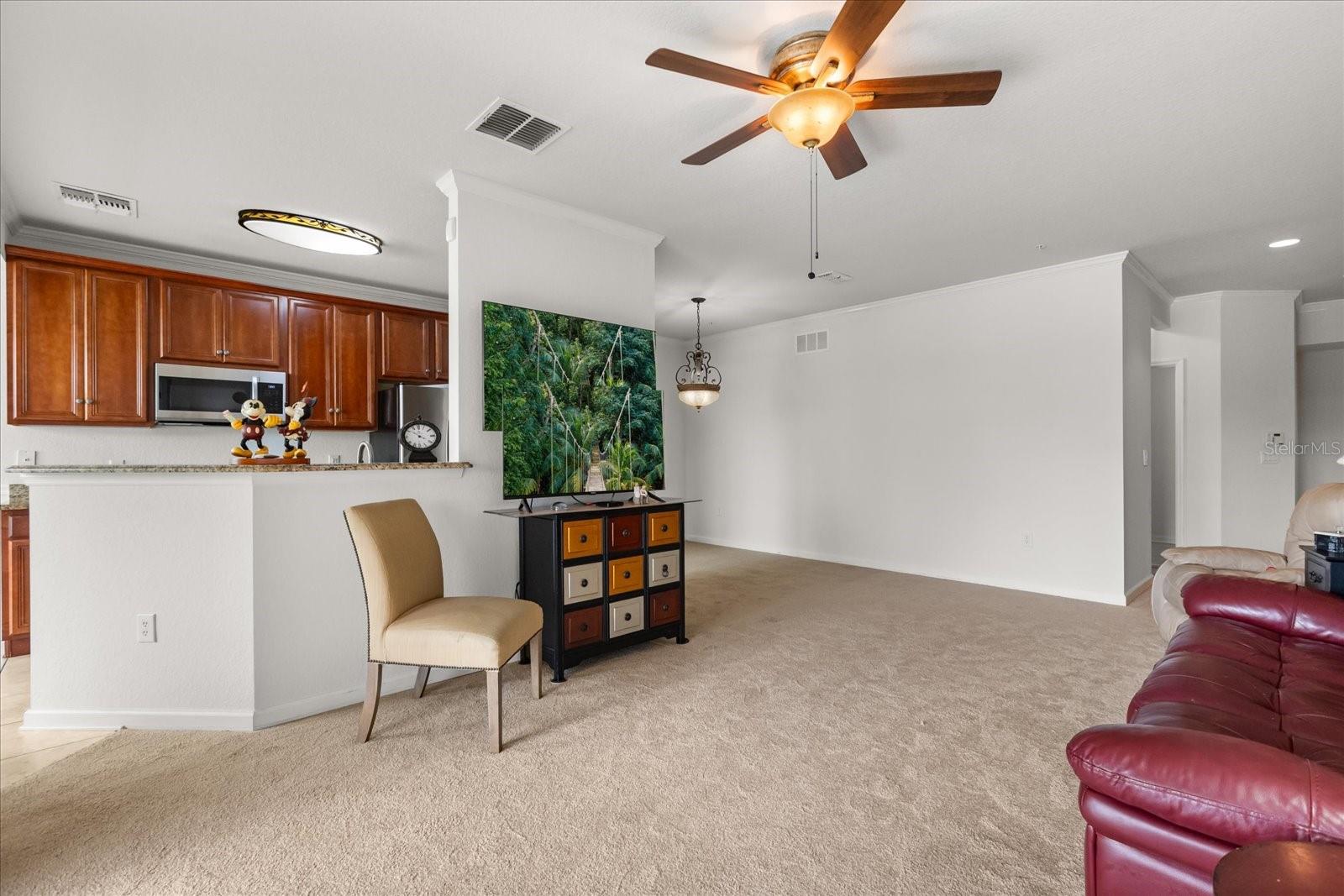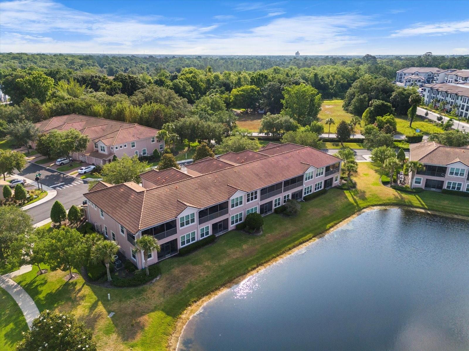 This home has been freshly re-painted with a neutral eggshell color and brand new carpet in all bedrooms, living room and dining room. The residence features 2 bedrooms and 2 full baths. A versatile office/den bonus room provides flexibility to accommodate various lifestyle needs, whether utilized as a home office, creative studio, or additional sleeping quarters. The open floor plan seamlessly connects the living space to the dining area and kitchen, perfect for entertaining guests or enjoying family time. Set against the backdrop of scenic beauty, this residence boasts a screened-in lanai with tile floors that provides breathtaking views overlooking the tranquil pond, creating a serene oasis for relaxation and enjoyment. With a washer and dryer conveniently located inside the unit, everyday tasks become effortless, adding to the overall convenience and comfort of living in this exceptional property. Furthermore, a private one-car garage offers secure parking and additional storage space, ensuring both convenience and security for residents. Residents also have the privilege of residing in a gated community, providing an extra layer of security and peace of mind. Indulge in resort-style amenities including a sparkling pool, rejuvenating jacuzzi, and state-of-the-art fitness center, perfect for maintaining an active and healthy lifestyle. Conveniently located in the heart of Championsgate, this property provides easy access to Disney parks, major highways, shopping, dining, and entertainment. Whether you're seeking a permanent residence, vacation getaway, or investment opportunity, this property represents the pinnacle of resort-style living in one of Florida's most sought-after destinations.