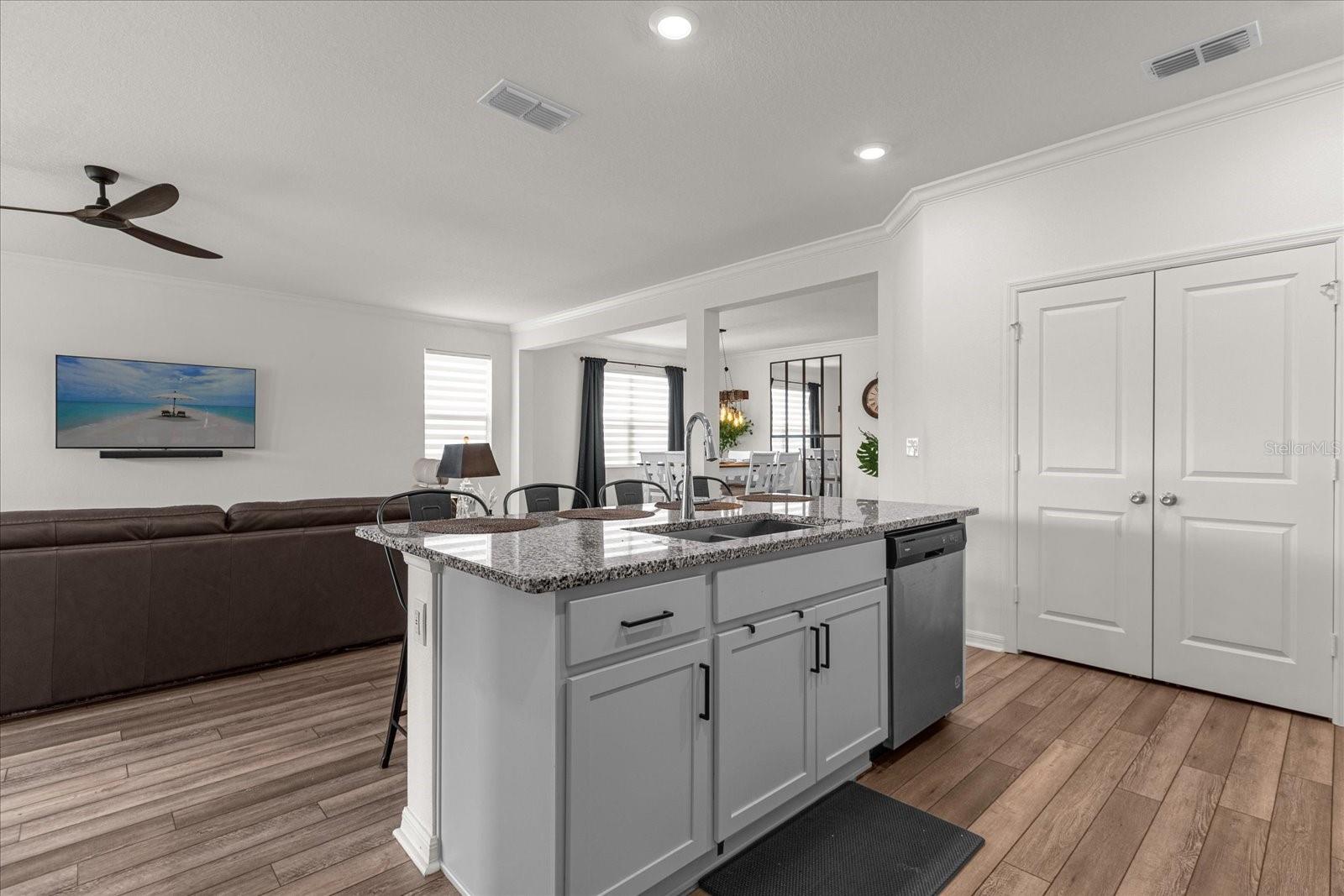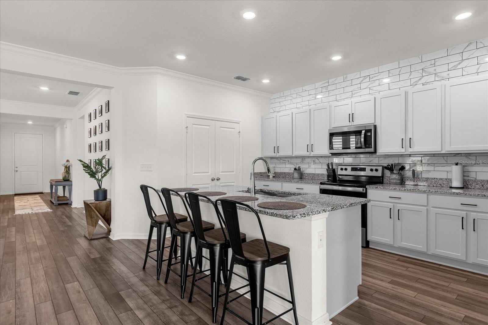 Welcome to 1025 Augustus Drive, Davenport, FL! This charming 4-bedroom, 2-bathroom home offers comfortable living space and a great location. Step inside to discover this meticulous kept hone featuring 9-foot ceilings, crown molding and plenty of natural lighting that add a touch of sophistication to the interior. The kitchen is a chef's dream, featuring granite countertops, traverse lighting, and stainless steel Whirlpool® appliances. The open floor plan that's perfect for modern living that allows for seamless flow between the living spaces, making it ideal for entertaining or simply enjoying day-to-day living. Don't miss this sun-kissed gem!