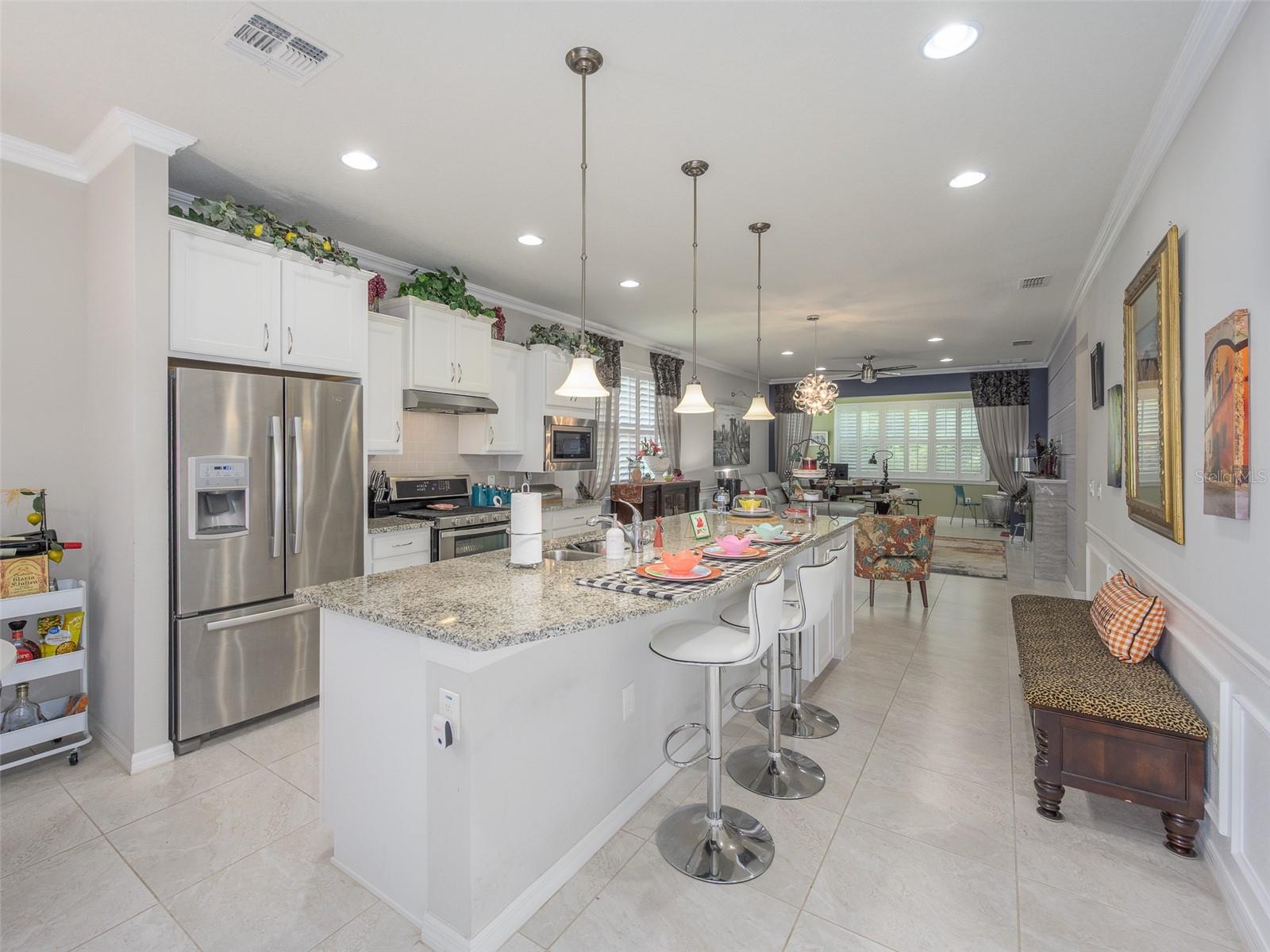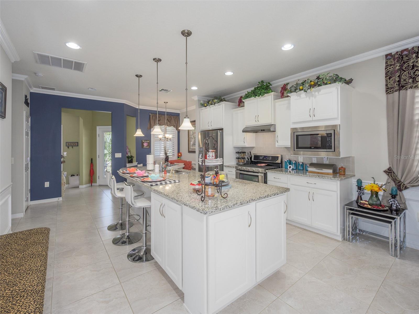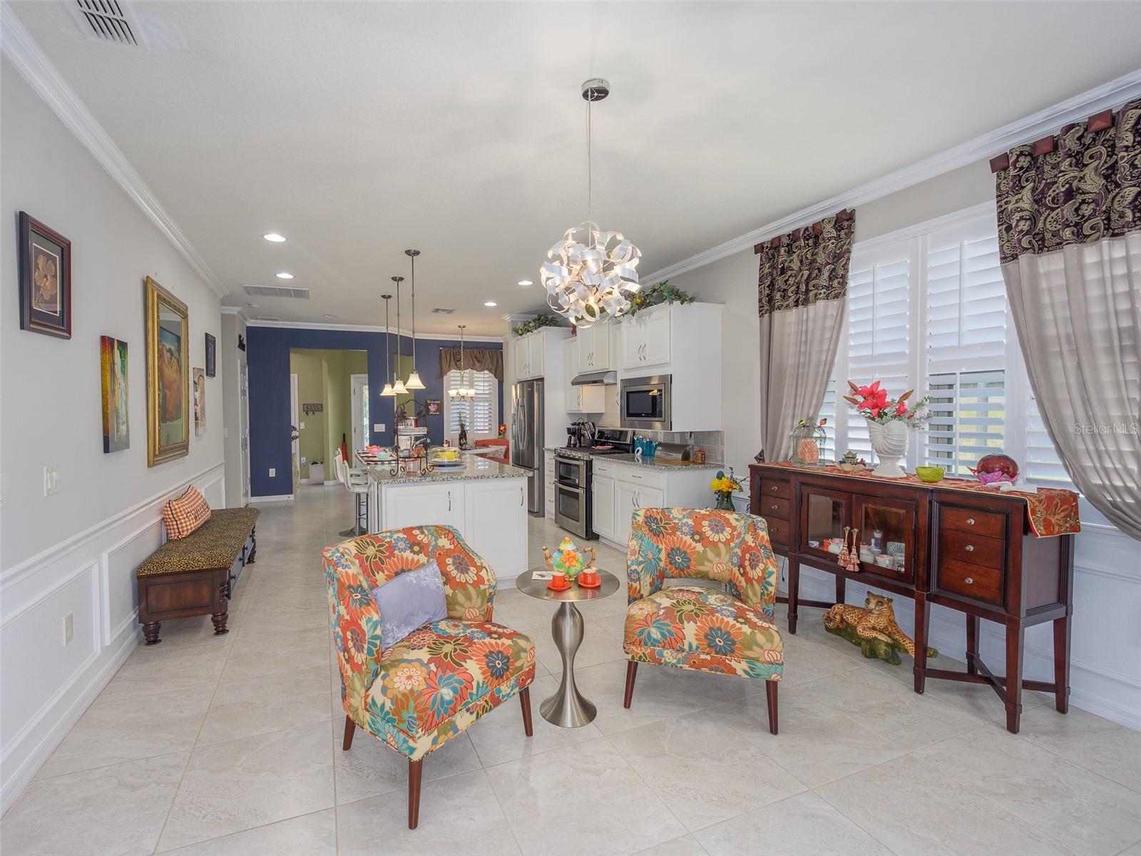 Nestled within the serene community of Dell Webb in Davenport, Florida, this enchanting home offers an unrivaled living experience. Boasting 2 bedrooms and 2 bathrooms, the 1468 Sq Ft residence is a testament to modern luxury and comfort. As you step inside, you are greeted by a flood of natural light that illuminates the stylish interiors. The home features central AC and heating to ensure year-round comfort, extended with a sunroom for extra space that opens up to a private outdoor living space for quiet morning coffee or entertaining family and friends. The gourmet kitchen is a culinary masterpiece, showcasing granite countertops, sleek cabinetry, and modern finishes that elevate the space. The luxuriously appointed master bath provides a spa-like retreat, perfect for unwinding after a long day. The spacious rooms allows ample space for relaxation and entertainment, with walk-in closets providing convenience and storage. Embrace the breathtaking views of the landscaped yard from the comfort of your home, or step outside to enjoy the community amenities and events that foster a vibrant and welcoming atmosphere. The gated community offers peace of mind and security, while the established neighborhood exudes a sense of community and camaraderie. Discover parks and recreation areas nearby, perfect for outdoor enthusiasts and nature lovers. The safe and friendly neighborhood provides a tranquil setting for residents to call home, with walking trails offering a scenic escape for leisurely strolls. Experience the best of Florida living in this charming home located in a vibrant and thriving community. DEL WEBB DAVENPORT is a 55+ community with a tavern, indoor walking track, indoor and outdoor pools and spas and fitness center. Outdoor activities include tennis, bocce, basketball and pickleball. Miles of biking and walking trails within Ridgewood Lakes gated community. Located conveniently to Shopping at Posner Park (4 miles), Disney World, Universal Studios, Orlando & Central FL entertainment nearby, easy access to I-4, medical facilities, airports & Sunrail Station. Advent Health hospital is minutes away.
