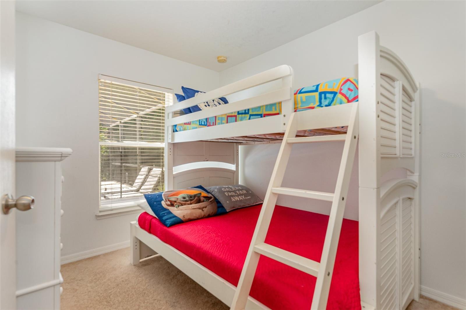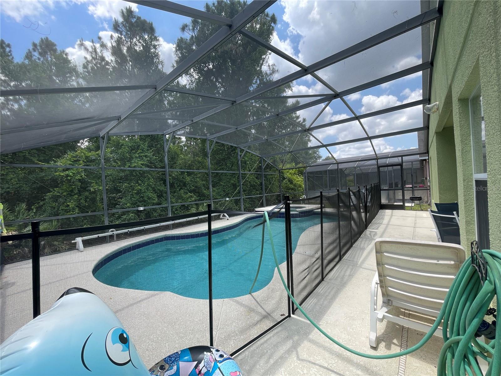 $20,000 PRICE REDUCTION!!! WOW! This fully furnished, 5 bedroom / 3 bathroom SOUTH FACING pool home is nestled on a peaceful cul-de-sac, providing privacy and minimal traffic reduces noise. A NEW ROOF WILL BE INSTALLED BEFORE CLOSING! As you enter the foyer, the first sight to greet you is a well-appointed bedroom on the left. This room is perfectly situated for use as either a guest suite or a home office. The games room is located to the right. Moving forward, you'll find the heart of the home: an open-concept kitchen, complete with black appliances, equipped for short term rentals and plenty of storage space. It opens into a spacious dining area and an inviting living area. This layout ensures seamless interaction between these spaces. The sleeping areas of this home are thoughtfully split for maximum privacy. The master suite and additional bedrooms offer cozy retreats away from common areas. The tranquil pool and spa feature maximum SOUTH sunlight exposure and is SECLUDED, WOODED VIEW - perfect for relaxing or hosting gatherings. The fully equipped kitchen provides space for casual dining at the kitchenette or breakfast bar. The living and dining room offers ample room for relaxation and entertainment, with an open plan design that enhances the sense of space. The living area is open to beautiful views of the sparkling pool, and private, wooded view - bringing an element of nature indoors. This also ensures plenty of natural light filters into the home. The convenient poolside cabana bathroom is perfect for using the restroom, quick changes or rinsing off after a dip in the pool without tracking through the home. The en-suite bedroom is a private sanctuary complete with its own full bathroom, providing comfort and convenience. Every feature in this home adds up to create not only a comfortable living environment but also presents great potential as an investment opportunity for short-term rentals due it's desirable attributes and location. This could provide significant additional income. The design of this 5 bedroom, 3 bath home strikes a balance between communal living and personal space - perfect whether it serves as your primary residence or as an investment property! Sandy Ridge is a tranquil and family-friendly community, conveniently situated near Interstate 4, giving residents easy and quick access to theme parks and to larger cities like Tampa and Orlando. Key features of the community include: - Location: Sandy Ridge is just minutes away from major attractions such as Walt Disney World and Universal Studios. - Nature: The community is surrounded by beautiful conservation areas that provide stunning views and opportunities for wildlife spotting. - Amenities: Residents enjoy common amenities like playgrounds for children and sidewalks for leisure walks or biking. These properties can also serve as vacation rentals due to their close proximity to popular tourist destinations. Sandy Ridge provides a comfortable lifestyle with the added benefit of being close to numerous conveniences ranging from supermarkets like Publix at Ovation, pharmacies, banks, restaurants, golf courses like ChampionsGate Golf Club among others. Whether you’re interested in moving here permanently, seeking a holiday home or investment property... Sandy Ridge may just have what you're looking for! All room, home & lot size are estimated, exact measurements & HOA fees/requirements are the responsibility of buyer or buyer's agent/buyers agent.