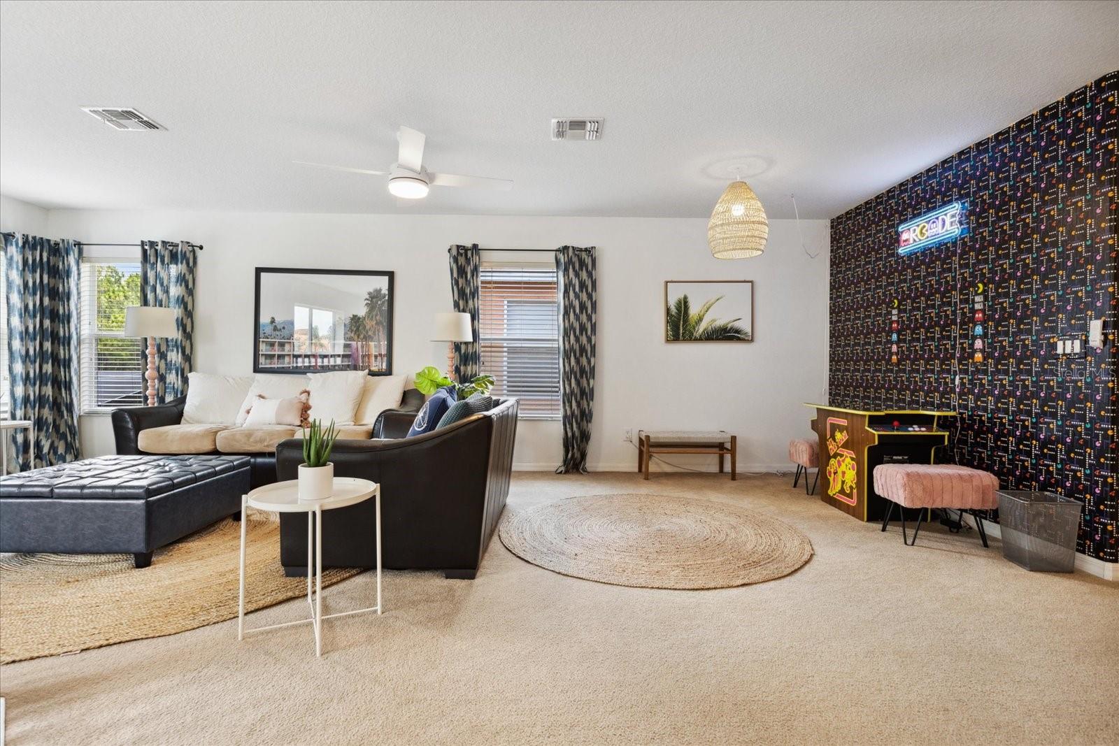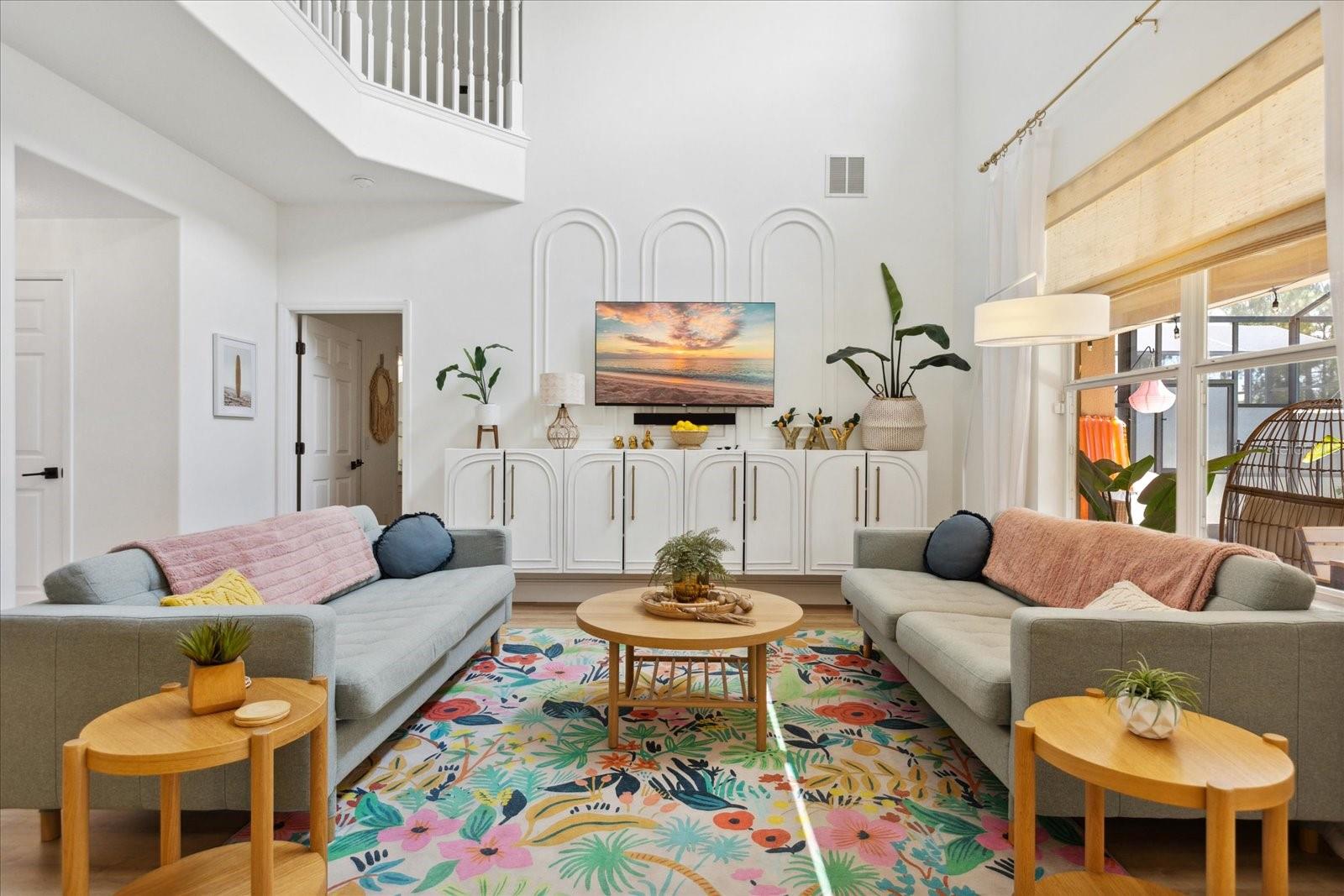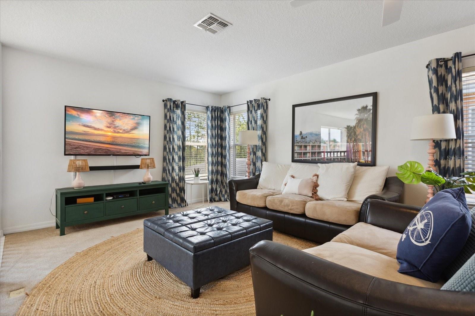 Back on the Market! The home was appraised for $560,000! Welcome to this exquisite home, recently featured in the HGTV Magazine. It comes fully-furnished and decored! The home is located in the sought-after gated community Watersong Resort in Davenport, FL, less than 20 min away from Animal Kingdom and 23 min from Magic Kingdom. Flexibility is key here! This property allows you to live or rent long or short-term (AirBnb). Step inside to find a meticulously upgraded interior, including high-end furniture (Yes! The home comes fully furnished and decorated with Smart HD TVs throughout), stylish accents, luxurious window treatments, waterproof vinyl flooring, and modern fixtures. The first floor features a convenient Master Bedroom suite, while the contemporary kitchen is a chef's dream with upgraded appliances, custom cabinets, and a breakfast bar for casual dining. The outdoor space is an entertainer's paradise, featuring a large covered patio area with a Weber Grill, a gas-heated pool, and a screen enclosure with Florida Glass for privacy. Enjoy the Florida weather in style! Another notable feature of this property is the proximity to the clubhouse with a gym, pool, play area, beach volleyball, and more. Located just a short drive from Disney Parks, this property offers luxury living and convenient access to world-class entertainment. Watersong Resort provides a peaceful retreat with easy access to nearby attractions, making it the perfect blend of relaxation and excitement. Don't miss out on the opportunity to own this exceptional property in a desirable resort-style community. Whether you're looking for a primary residence, vacation home, or investment property, this home ticks all the boxes for comfort, style, and convenience. Contact us today to schedule a viewing and make this dream home yours! *3D floorplan and video available*