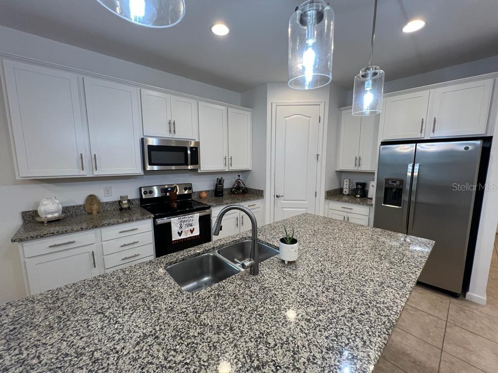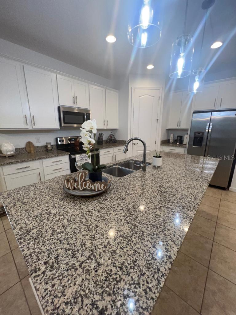 WELCOME TO THIS BEAUTIFUL HOME WITH A FULLY PAID-OFF SOLAR PANEL SYSTEM!!! Seize the chance to own this stunning 4-bedroom, 2-bathroom residence, featuring a generous 1,970 SqFt and an open split floor plan ideal for modern living with optimal privacy. The heart of the home includes a central island and overlooks the dining and family rooms, perfect for entertaining. The owner’s suite boasts a spacious bedroom, a bathroom with double sinks, and a roomy walk-in closet. The home also includes quartz countertops in the bathrooms, stainless steel appliances, and granite countertops in the kitchen. The community offers amenities such as a pool, dog park, and playground for families to enjoy. With easy access to Highway 27 and I-4, you're close to all amenities and Orlando attractions like Walt Disney World, Universal Studios, Legoland, shopping malls, restaurants, hospitals, and much more! This rapidly growing area is waiting for you! Schedule your showing today and discover everything this property has to offer!!