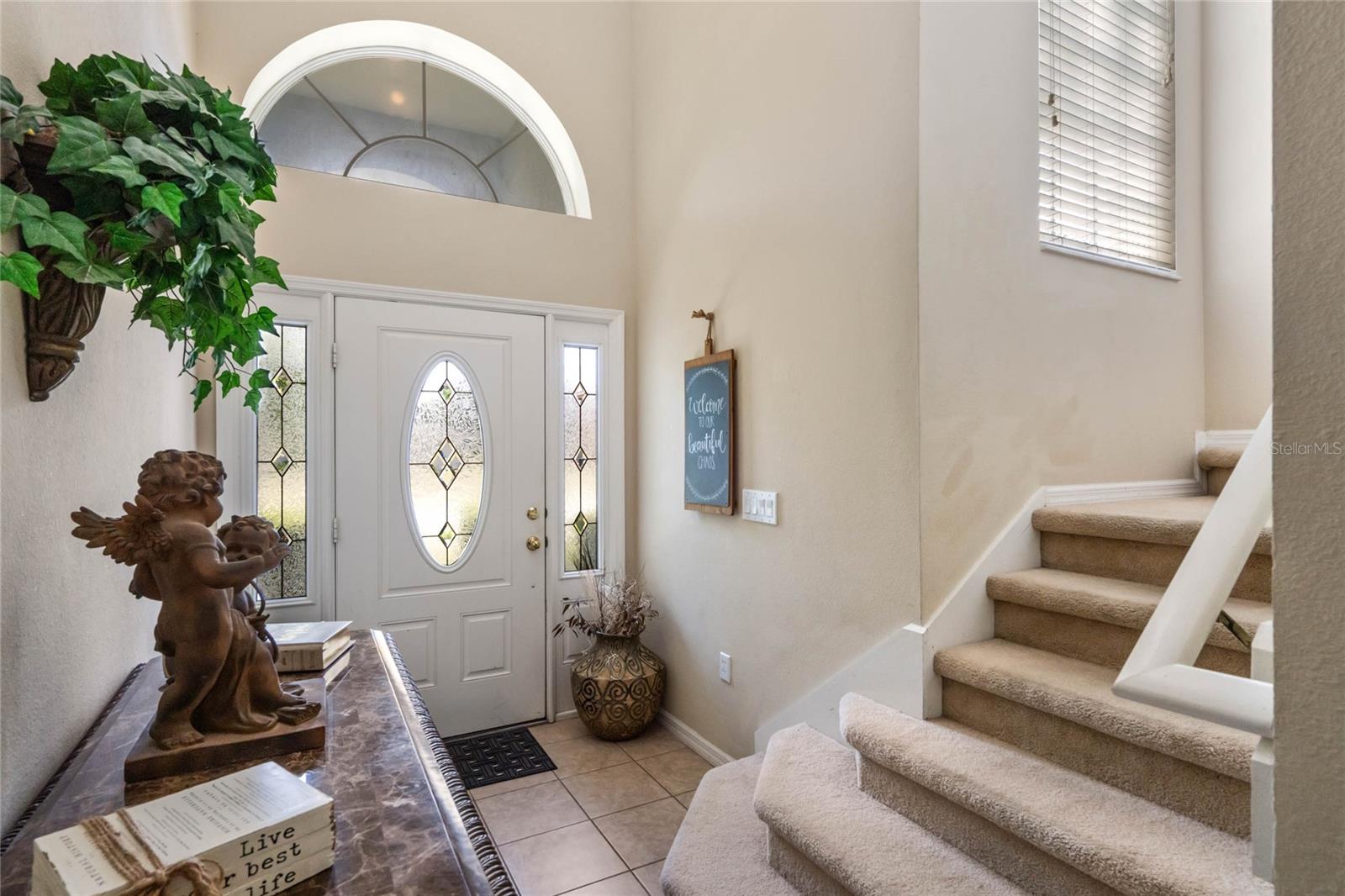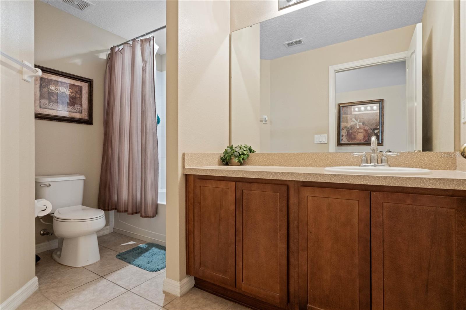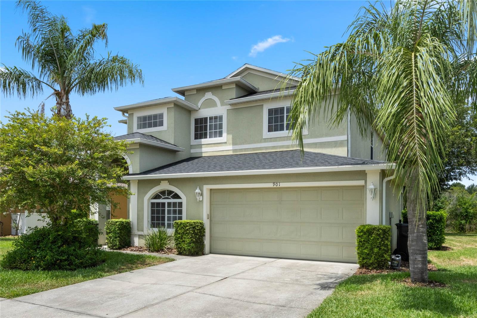 This turn-key 5-bedroom, 3-bathroom fully furnished home in the prestigious gated community of the Shire at West Haven is meticulously maintained and move-in ready. Nestled on a conservation lot with stunning lake views, this home embodies the Florida dream. The kitchen features abundant cabinet storage, stainless steel appliances, a breakfast bar, and a separate breakfast nook. The open-plan design seamlessly connects the dining room, living room, and family room to the kitchen, making it ideal for entertaining. One bedroom is located on the main floor, complete with a private hallway and full bathroom. The primary suite upstairs boasts a king bed, a private screened balcony overlooking the pool area and lake, and an en-suite bathroom with a privacy door. The master bath includes a glass-enclosed tile shower, a large Jacuzzi tub, a separate toilet room, and an expansive walk-in closet. The additional upstairs bedrooms are all generously sized. The neighborhood caters to both year-round residents and vacation property owners. Homeowners Association (HOA) fees cover a range of services, including property landscaping, gate and communal area maintenance, Wi-Fi, and basic cable TV. Residents have access to a private clubhouse with a game room, fitness center, comfortable seating area with vending machines, and tennis courts. Conveniently located near a grocery store, pet supply store, pharmacy, and the Omni Resort Golf and Spa, this home combines luxury with convenience.