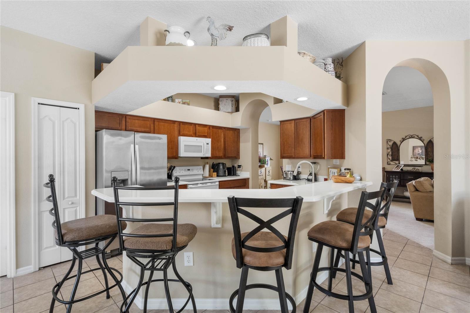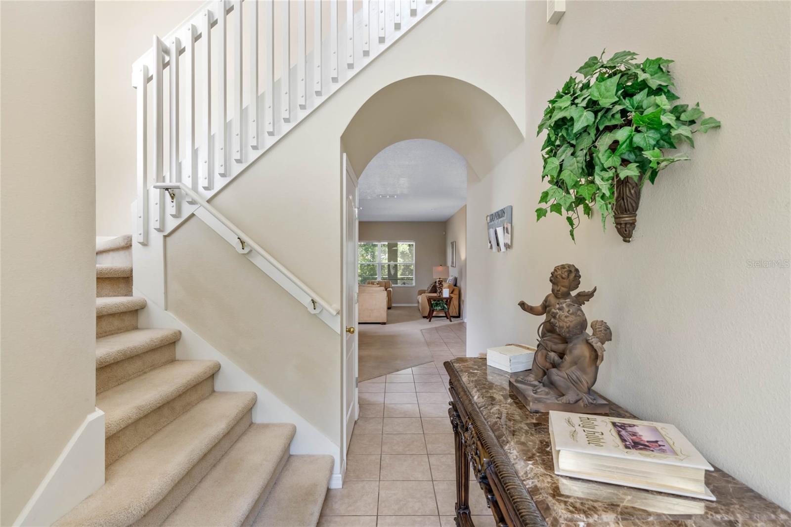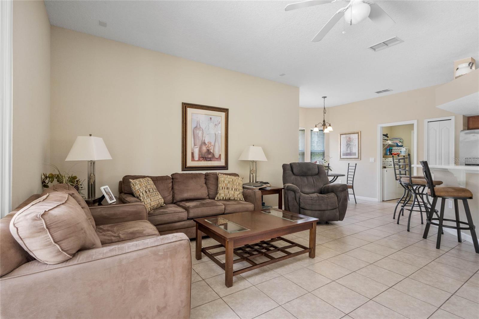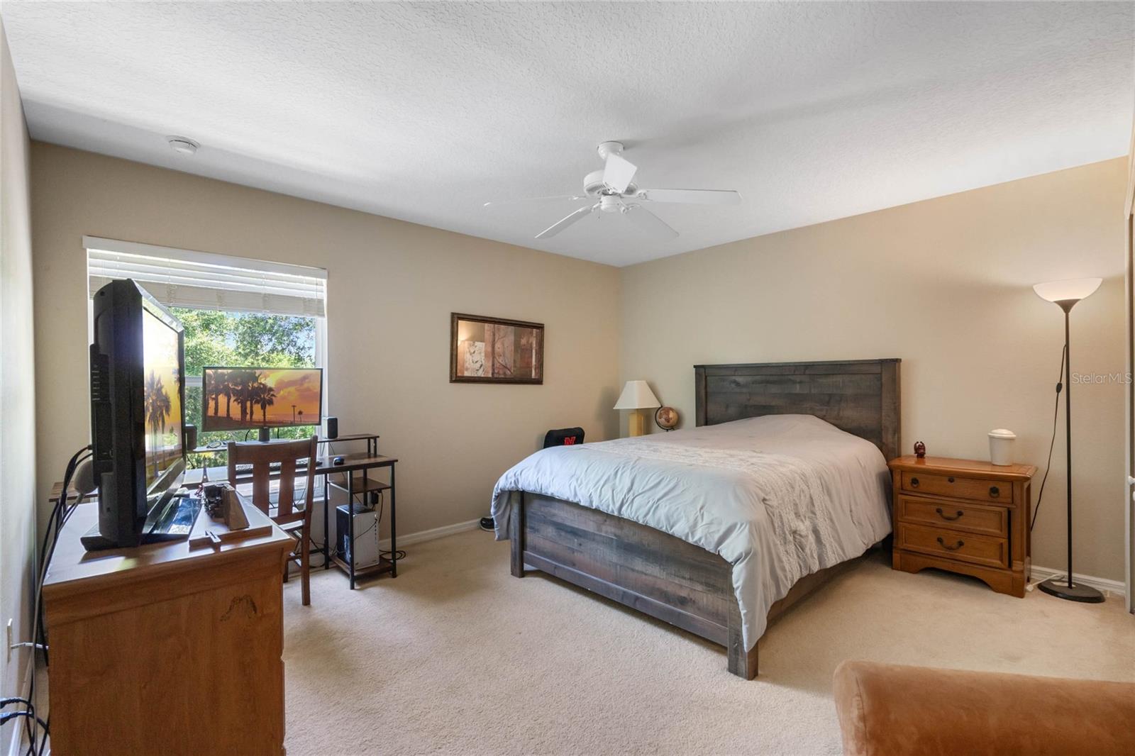 This turn-key 5-bedroom, 3-bathroom fully furnished home in the prestigious gated community of the Shire at West Haven is meticulously maintained and move-in ready. Nestled on a conservation lot with stunning lake views, this home embodies the Florida dream. The kitchen features abundant cabinet storage, stainless steel appliances, a breakfast bar, and a separate breakfast nook. The open-plan design seamlessly connects the dining room, living room, and family room to the kitchen, making it ideal for entertaining. One bedroom is located on the main floor, complete with a private hallway and full bathroom. The primary suite upstairs boasts a king bed, a private screened balcony overlooking the pool area and lake, and an en-suite bathroom with a privacy door. The master bath includes a glass-enclosed tile shower, a large Jacuzzi tub, a separate toilet room, and an expansive walk-in closet. The additional upstairs bedrooms are all generously sized. The neighborhood caters to both year-round residents and vacation property owners. Homeowners Association (HOA) fees cover a range of services, including property landscaping, gate and communal area maintenance, Wi-Fi, and basic cable TV. Residents have access to a private clubhouse with a game room, fitness center, comfortable seating area with vending machines, and tennis courts. Conveniently located near a grocery store, pet supply store, pharmacy, and the Omni Resort Golf and Spa, this home combines luxury with convenience.