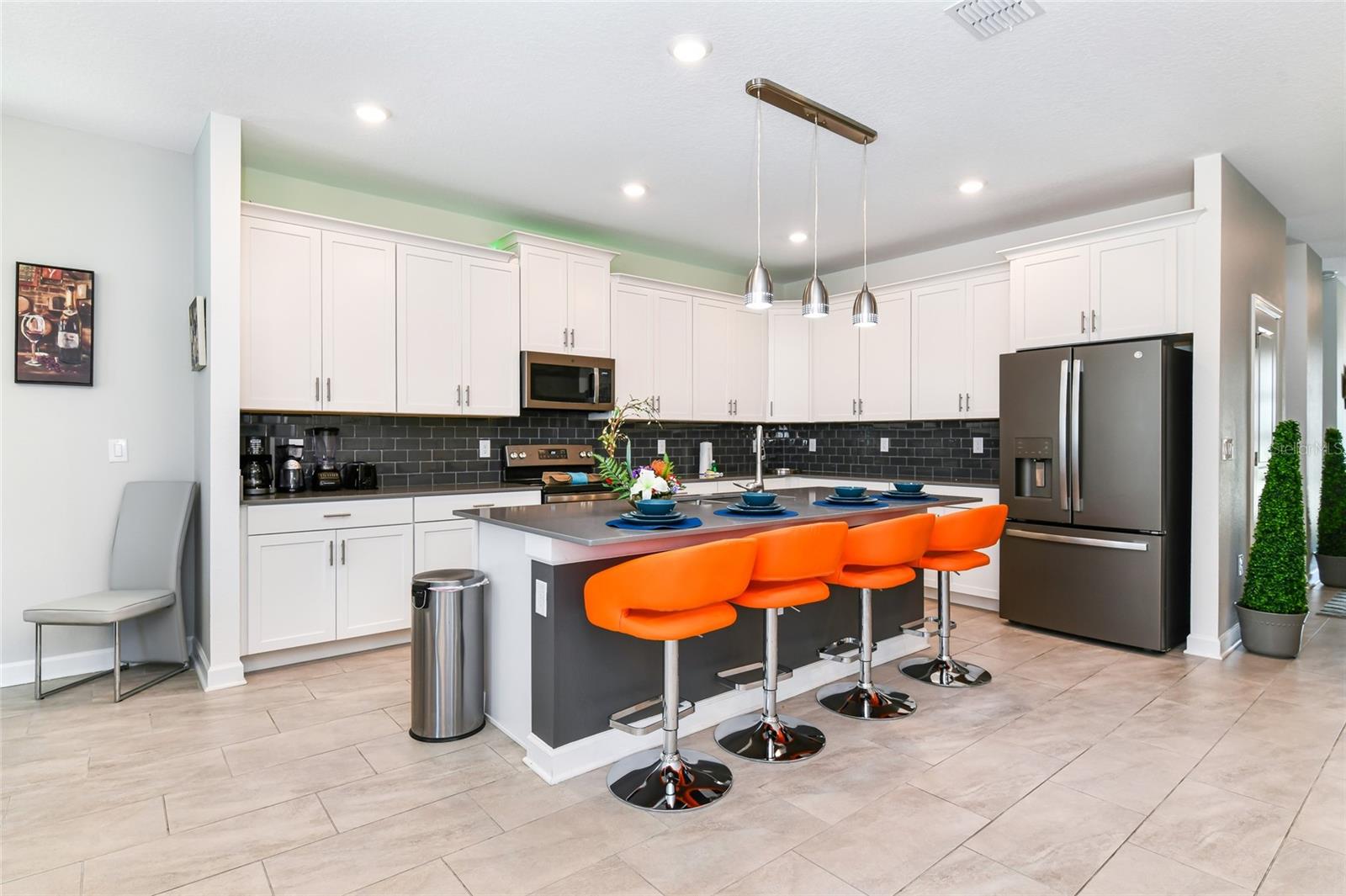 This amazing single-family home, selling fully furnished with luxury furniture. Turnkey property for the new owner to enjoy the summer vacation with family and friends, or start generating the summer booking rental income right away. This exceptional two-story home features six bedrooms, five bathrooms and a large combination dining and family room that overlooks the covered patio. There are two stunning owner suites, a fully-equipped kitchen, a one-car garage, and an upstairs loft. perfect for relaxing with friends and loved ones. With “Everything’s Included”, luxury and value go hand in hand. highly energy efficient homes feature 42” cabinetry, quartz countertops in both kitchen and bathrooms, slate appliances, state of the art security system and blinds. CHAMPIONS GATE RESORT ORLANDO OASIS CLUBCLUBHOUSE AND WATER-PARK: Amenities will include: Lazy River, Water-slides, Swim-Up Bar, Water Falls, Beach Entry, Spa, Splash Pad, Grill, Bar, Fitness Area, Theatre, Games Room, Tiki Bar and Cabanas. Simply relax by the pool, watch your family have the time of their life. All of these amenities, plus seven tennis courts are INCLUDED in HOA. Call for a showing today!
