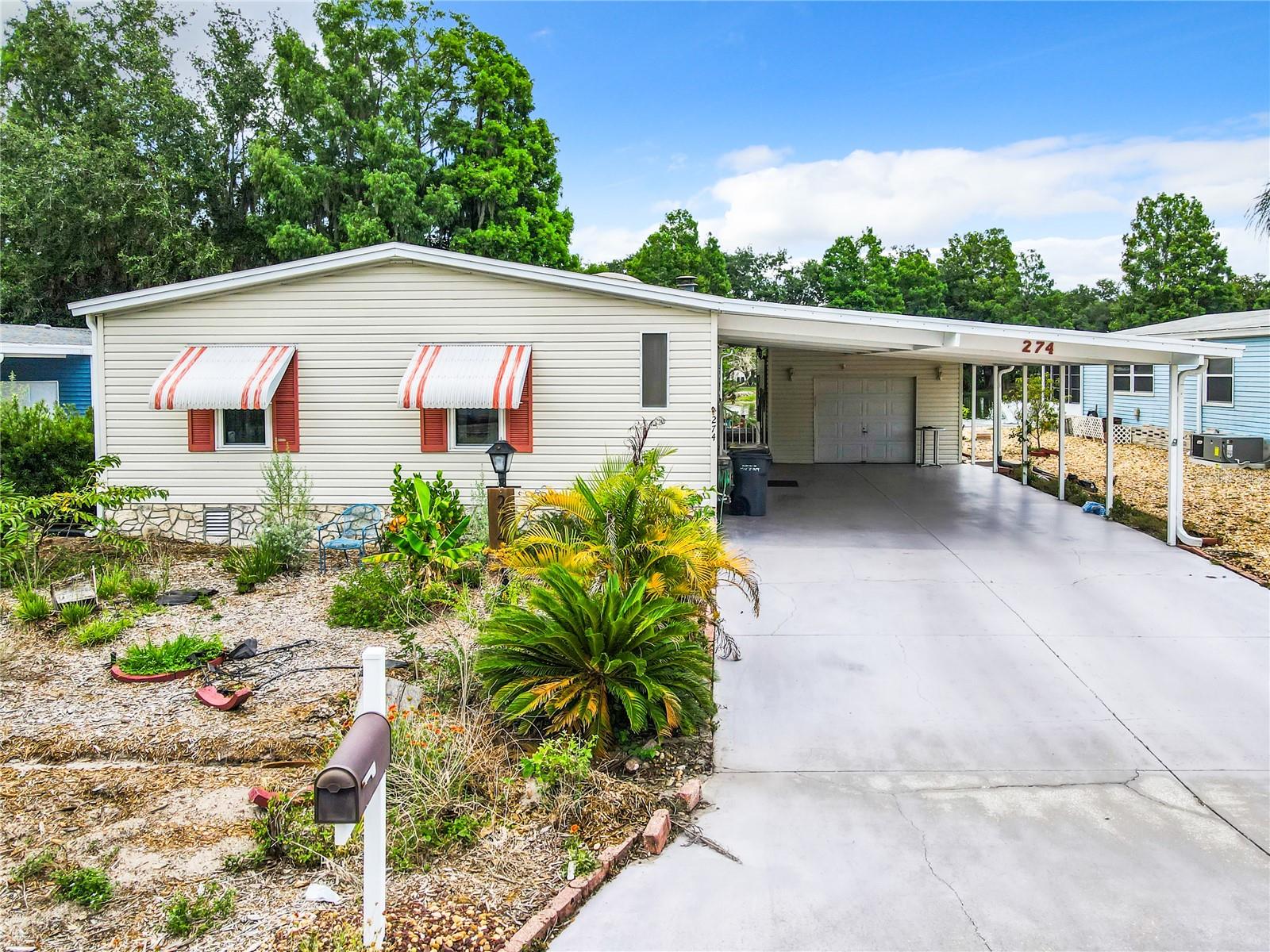 Welcome to the well known 55 & better community of Polo Park! This AMAZING 2 bedroom 2 bath home is situated on a beautiful waterfront OWNER OWNED LOT with a dock overlooking the pond that is 4 years young. Enjoy the scenery of the water, the edible landscaping which consists of banana, strawberries, mango & more! The oversized carport is perfect for not only your vehicles, for guests, and more!! Walk into the front door right into a spacious living area with a fireplace, dining area, and right into your spacious kitchen where all the appliances remaining INCLUDING THE WASHER/DRYER! The oversized bedrooms are perfect for you and your guest to have a restful nights sleep with ample closet space! Take advantage of sitting out in the Florida room on cool evenings! This community has EVERYTHING you could want as far as amenities! From tennis courts, PICKLEBALL, POOL TABLES IN THE CLUBHOUSE, A FITNESS CENTER, & a community pool, A a place to walk your dog & play, & BRING YOUR GOLF CARTS, TO ENJOY DRIVING THE COMMUNITY OR TO DRIVE TO PLAY A ROUND OF GOLF! Rent this property out as a snowbird rental or live in it year long! DID I MENTION THIS IS 10 MINUTES TO DISNEY! This home is truly such a GEM!