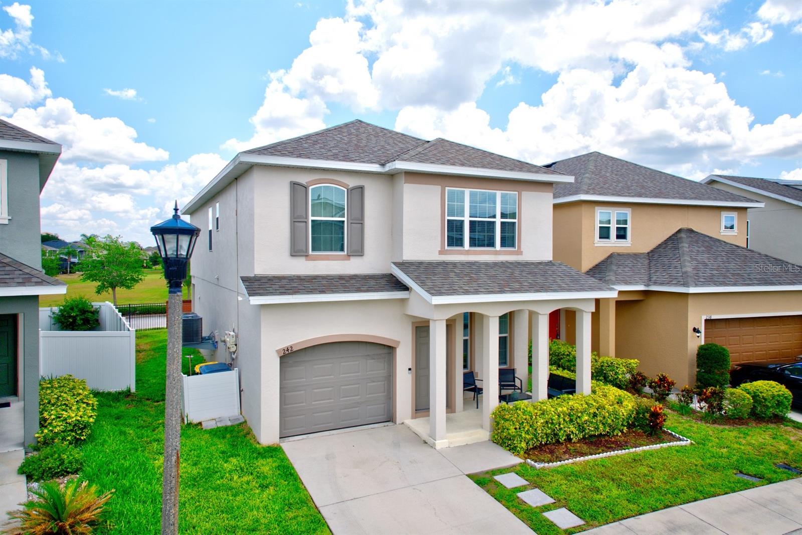 MOVE IN READY! Welcome to Chelsea Park! IDEALLY LOCATED and MOVE IN READY! 242 Aberdeen is a beautiful home, 4 bedrooms and 3 1/2 bathrooms (two master bedrooms) with an open floor plan, spacious living, and dining room, with exquisite laminate floors, no carpets for easy cleaning, two master bedrooms, perfect for guest's entertaintment, for short term or long term rental. in a GATED COMMUNITY just minutes from DISNEY, the AIRPORT, and Downtown Orlando. Enjoy the short distance to golfing at Champions Gate community, shopping at the local Publix, and dining at your favorite restaurants. The upstairs family areas are warm, cozy, and comfortable! The kitchens and baths all have the best upgrades. Make this your new home.
