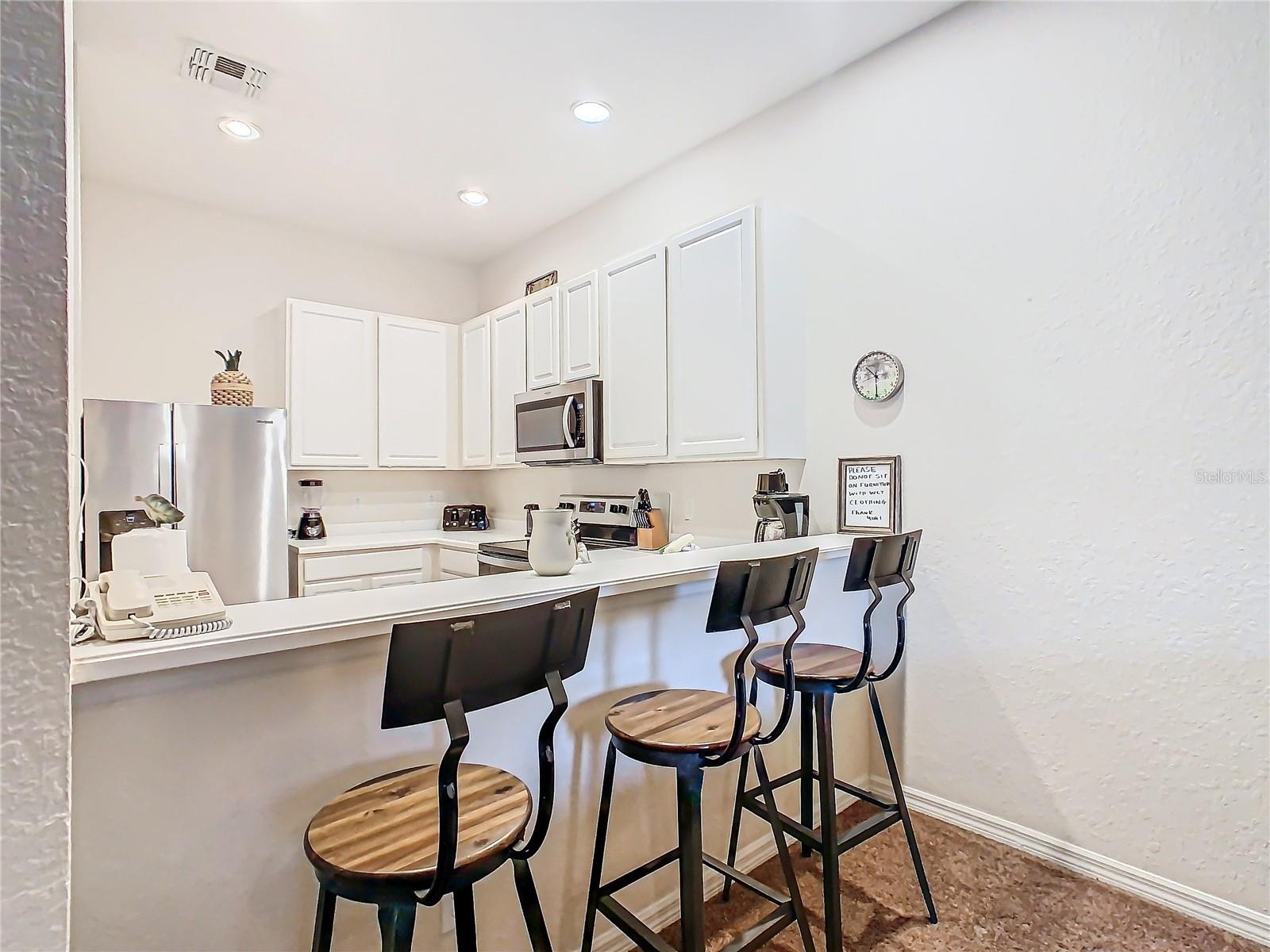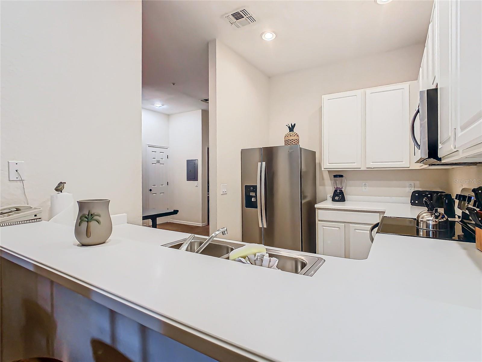MAJOR PRICE IMPROVEMENT & THE BEST WATER VIEW IN BAHAMA BAY!!! Welcome to your slice of paradise at Bahama Bay Subdivision in Davenport, Florida! Nestled within this vibrant community, this stunning 3-bedroom, 2-bathroom condo offers the perfect blend of comfort, convenience, and breathtaking views. Upon entering, you'll be greeted by a spacious foyer leading to a thoughtfully designed split bedroom floor plan. To your left, a cozy bedroom awaits with two twin beds, perfect for accommodating guests or family members. On the right, another inviting bedroom boasts a comfortable queen-size bed, ensuring everyone has their own private retreat. Moving further down the hall, you'll discover a formal dining room ideal for hosting intimate dinners or special gatherings. Adjacent to the dining area lies a full-sized kitchen adorned with ceramic tile flooring, upgraded appliances, and ample counter space. Additional bar stool seating offers a casual dining option, perfect for quick breakfasts or casual conversations. The heart of this condo is undoubtedly the spacious living room, where relaxation meets panoramic views. Through the sliding glass door, nature's beauty unfolds before your eyes, with lush trees, tranquil greenery, and captivating views of both the pond and the pool. Whether you're unwinding after a long day or entertaining guests, this space provides the perfect backdrop for creating lasting memories. Retreat to the master bedroom, featuring its own sliding glass door offering direct access to the rear screened-in porch. Here, you can savor your morning coffee or unwind with a good book while enjoying the serene surroundings. The master bathroom, conveniently located within the room, offers privacy and convenience, complete with modern amenities. As part of the Bahama Bay community, residents enjoy a wealth of amenities, including a sandy beach nestled next to the picturesque pond, a volleyball court, tennis court, fitness center, on-site spa, and scenic walking trails. With plenty of restaurant options nearby, dining out is always a treat. For added convenience, the condo fee covers all utilities except electricity, ensuring a hassle-free living experience. Additionally, the property is currently managed by the on-site Vacasa property manager, offering peace of mind for homeowners. However, buyers have the flexibility to choose their preferred property management company within the neighborhood. Don't miss the opportunity to experience resort-style living at its finest in this Bahama Bay condo. Schedule your private tour today and discover the lifestyle you've been dreaming of!