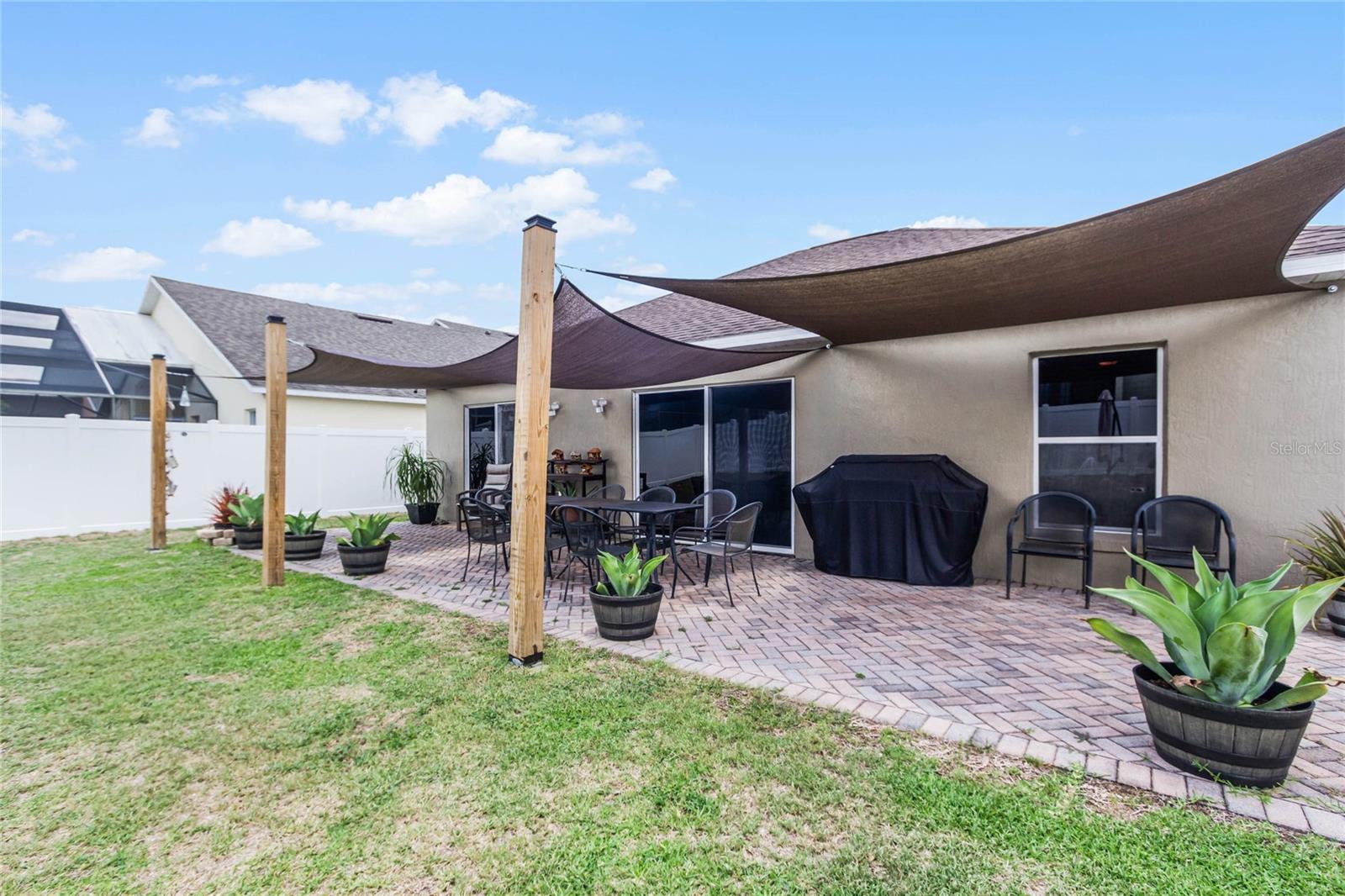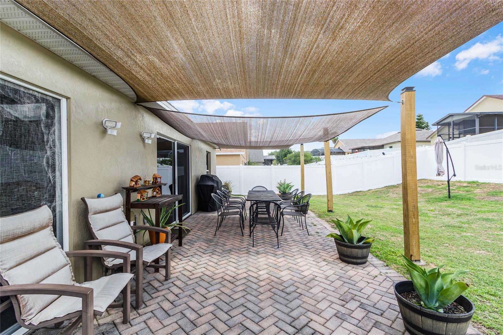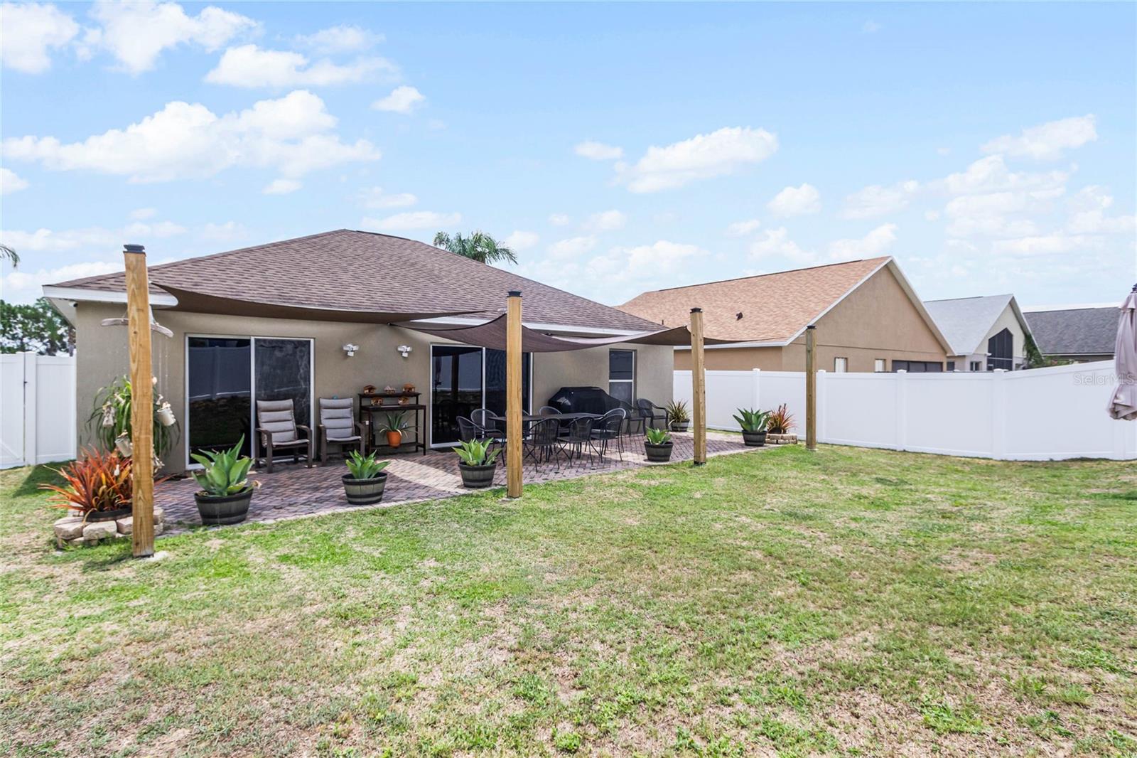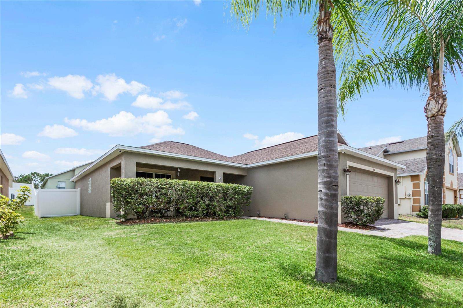Welcome Home to The Green at West Haven! Imagine living in a stunning, modernized home in the exclusive, gated community of The Green at West Haven. This property features 3 bedrooms, 2 bathrooms, and 1,320 square feet of well-designed living space. This home boasts a roof installed in 2018, offering peace of mind and long-term savings. The spacious backyard is ideal for hosting gatherings, playing, or accommodating pets. It also includes a motion detector light and a chic sail shade. Inside, tile throughout the house. The gourmet kitchen is perfect for your inner chef, with granite countertops, a double sink, stainless steel appliances, and a trendy backsplash. Both bathrooms have been modernized with new tiles, glass doors, and updated fixtures. Additional updates include new baseboards, smart switches, a new security camera system, and more. The brick paver driveway and porch add to the home’s curb appeal, and a new washing machine and newly installed fence provide added convenience and privacy. The air conditioning unit is only five years old, ensuring efficient cooling during hot Florida days. The Green at West Haven is a secure, gated community with walking and running sidewalks, tennis courts, and a delightful communal pool. The HOA covers lawn maintenance and basic cable, allowing you to spend more time enjoying life. Located near Champions Gate, this home is close to golf courses and a variety of amenities. It is also conveniently located near Disney and I-4, making trips to theme parks and easy commutes a breeze. You’ll find restaurants, shopping centers, and entertainment just minutes away. Whether you’re looking for a safe and vibrant community, convenience, a peaceful retreat, or a prime property near top attractions, this home has it all. Don’t miss out on this gem. Schedule a private tour today and step into the finest of Florida living.