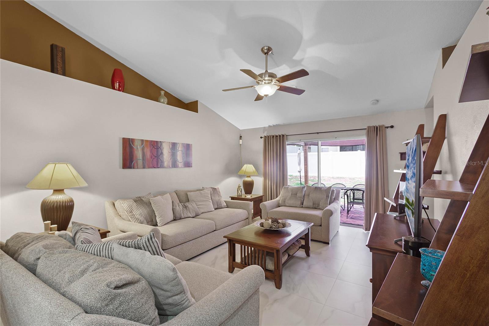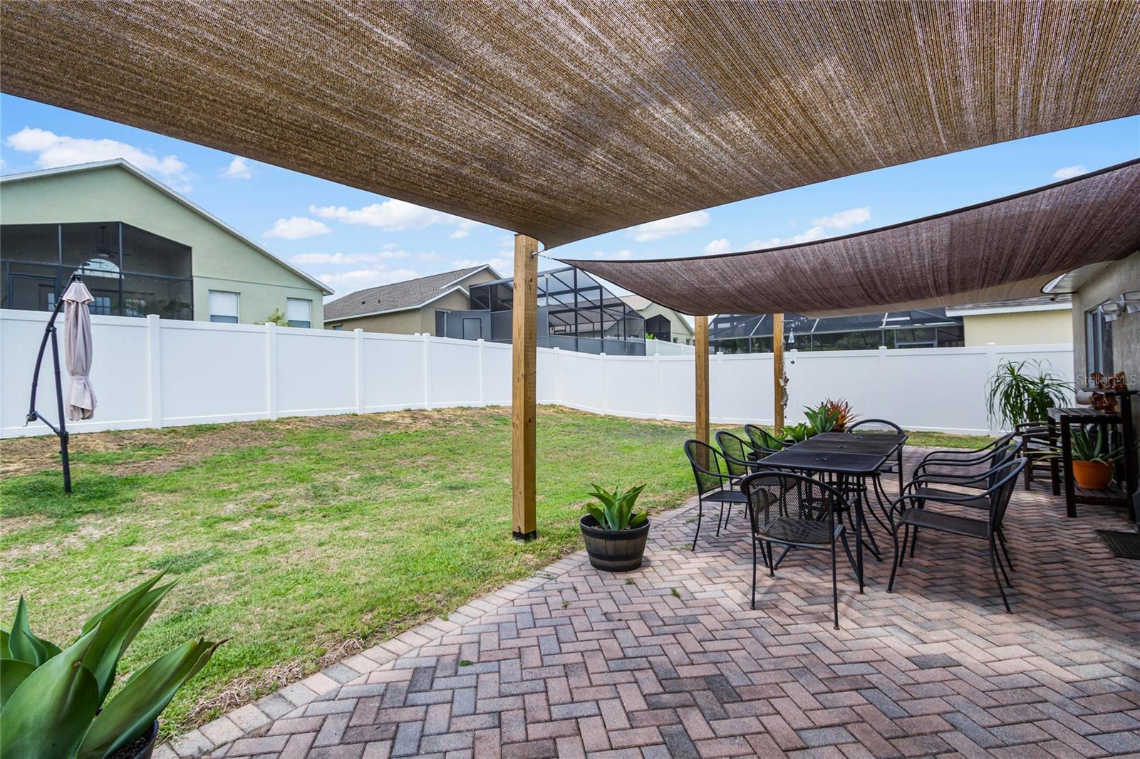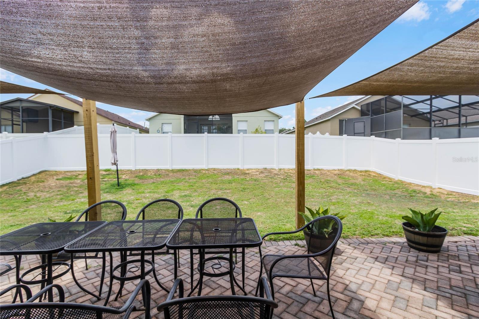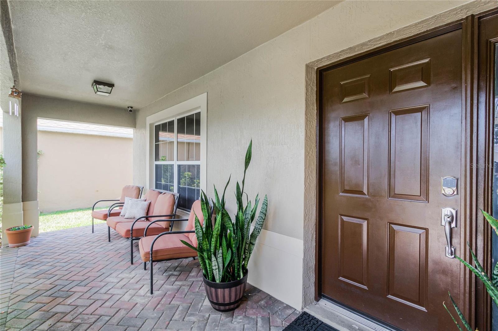 Welcome Home to The Green at West Haven! Imagine living in a stunning, modernized home in the exclusive, gated community of The Green at West Haven. This property features 3 bedrooms, 2 bathrooms, and 1,320 square feet of well-designed living space. This home boasts a roof installed in 2018, offering peace of mind and long-term savings. The spacious backyard is ideal for hosting gatherings, playing, or accommodating pets. It also includes a motion detector light and a chic sail shade. Inside, tile throughout the house. The gourmet kitchen is perfect for your inner chef, with granite countertops, a double sink, stainless steel appliances, and a trendy backsplash. Both bathrooms have been modernized with new tiles, glass doors, and updated fixtures. Additional updates include new baseboards, smart switches, a new security camera system, and more. The brick paver driveway and porch add to the home’s curb appeal, and a new washing machine and newly installed fence provide added convenience and privacy. The air conditioning unit is only five years old, ensuring efficient cooling during hot Florida days. The Green at West Haven is a secure, gated community with walking and running sidewalks, tennis courts, and a delightful communal pool. The HOA covers lawn maintenance and basic cable, allowing you to spend more time enjoying life. Located near Champions Gate, this home is close to golf courses and a variety of amenities. It is also conveniently located near Disney and I-4, making trips to theme parks and easy commutes a breeze. You’ll find restaurants, shopping centers, and entertainment just minutes away. Whether you’re looking for a safe and vibrant community, convenience, a peaceful retreat, or a prime property near top attractions, this home has it all. Don’t miss out on this gem. Schedule a private tour today and step into the finest of Florida living.