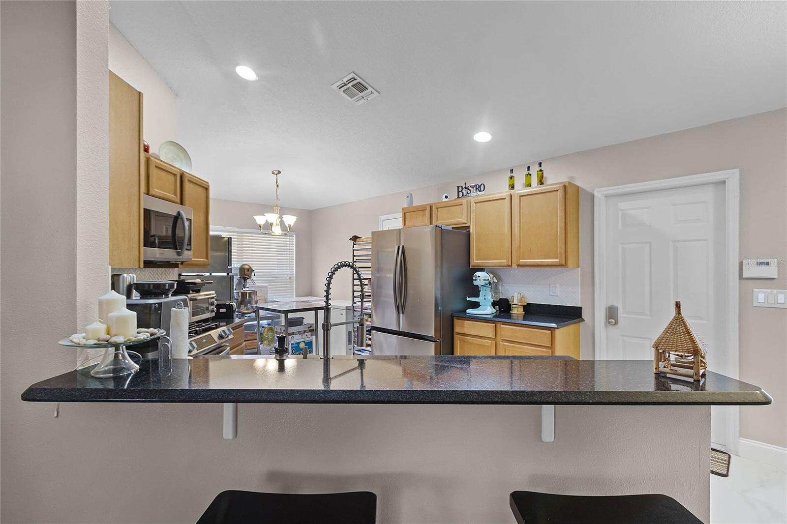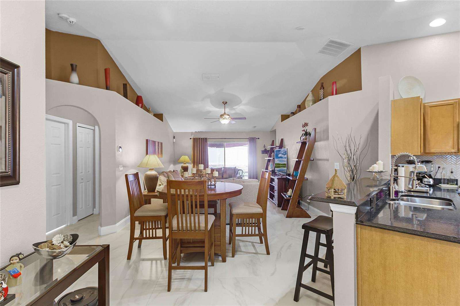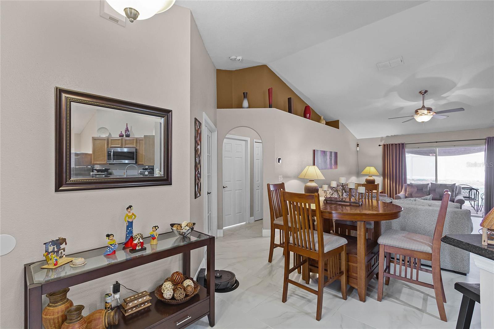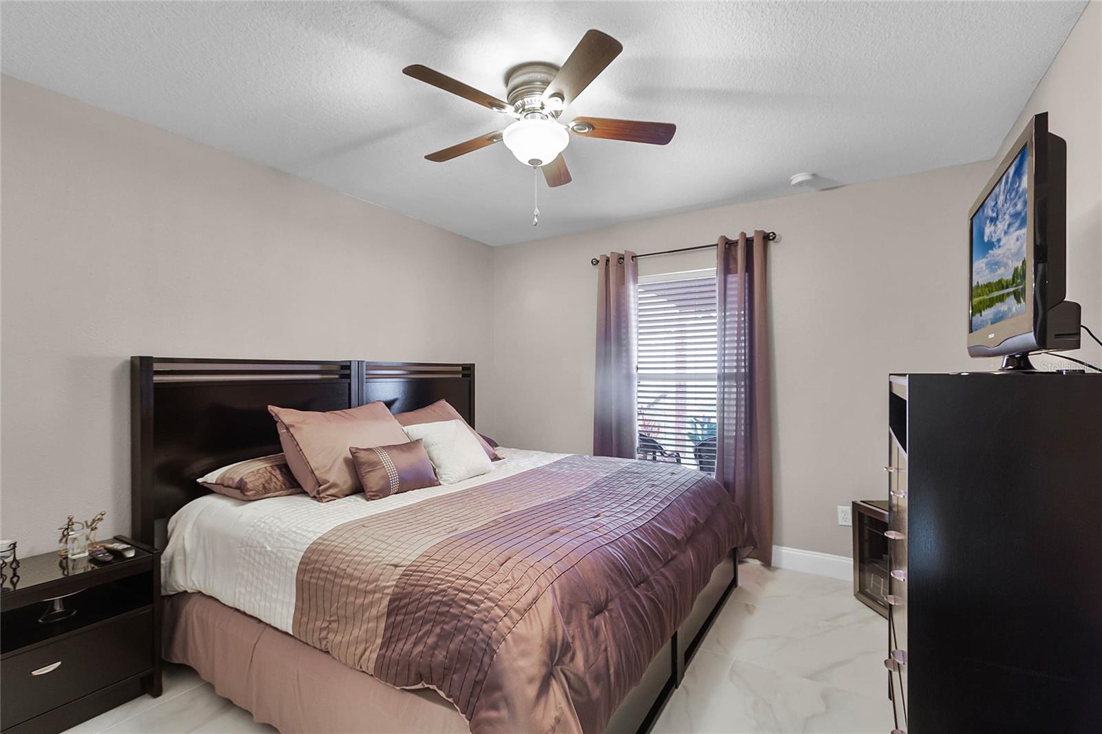Welcome Home to The Green at West Haven! Imagine living in a stunning, modernized home in the exclusive, gated community of The Green at West Haven. This property features 3 bedrooms, 2 bathrooms, and 1,320 square feet of well-designed living space. This home boasts a roof installed in 2018, offering peace of mind and long-term savings. The spacious backyard is ideal for hosting gatherings, playing, or accommodating pets. It also includes a motion detector light and a chic sail shade. Inside, tile throughout the house. The gourmet kitchen is perfect for your inner chef, with granite countertops, a double sink, stainless steel appliances, and a trendy backsplash. Both bathrooms have been modernized with new tiles, glass doors, and updated fixtures. Additional updates include new baseboards, smart switches, a new security camera system, and more. The brick paver driveway and porch add to the home’s curb appeal, and a new washing machine and newly installed fence provide added convenience and privacy. The air conditioning unit is only five years old, ensuring efficient cooling during hot Florida days. The Green at West Haven is a secure, gated community with walking and running sidewalks, tennis courts, and a delightful communal pool. The HOA covers lawn maintenance and basic cable, allowing you to spend more time enjoying life. Located near Champions Gate, this home is close to golf courses and a variety of amenities. It is also conveniently located near Disney and I-4, making trips to theme parks and easy commutes a breeze. You’ll find restaurants, shopping centers, and entertainment just minutes away. Whether you’re looking for a safe and vibrant community, convenience, a peaceful retreat, or a prime property near top attractions, this home has it all. Don’t miss out on this gem. Schedule a private tour today and step into the finest of Florida living.
