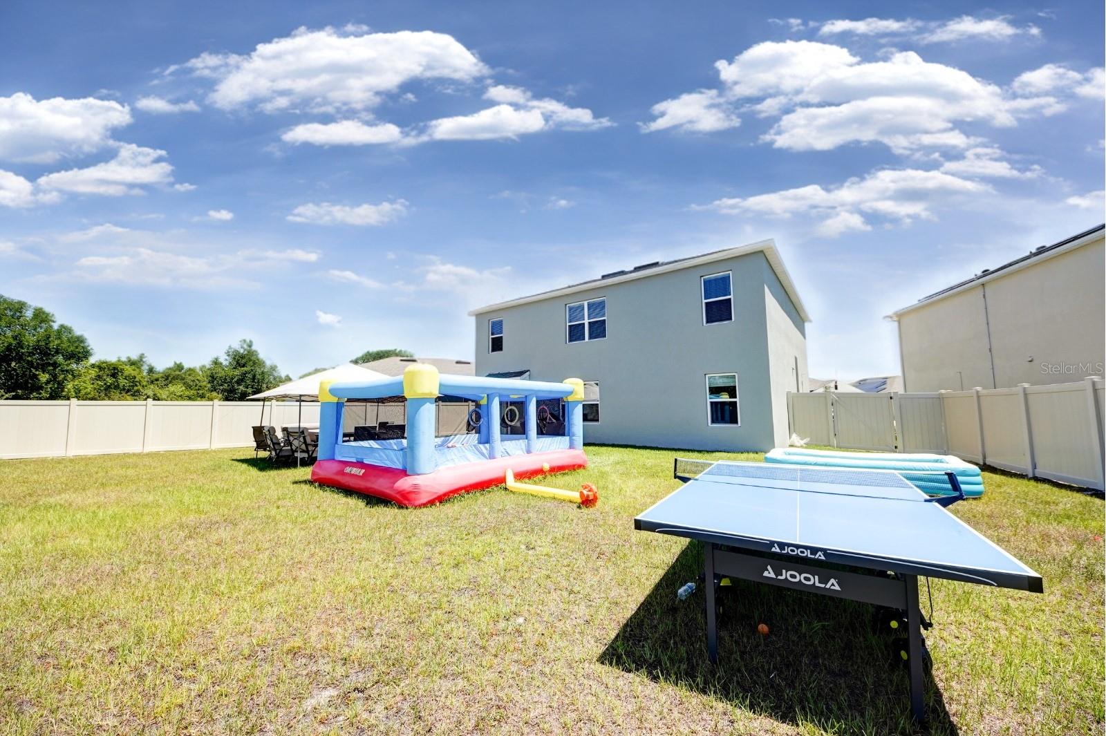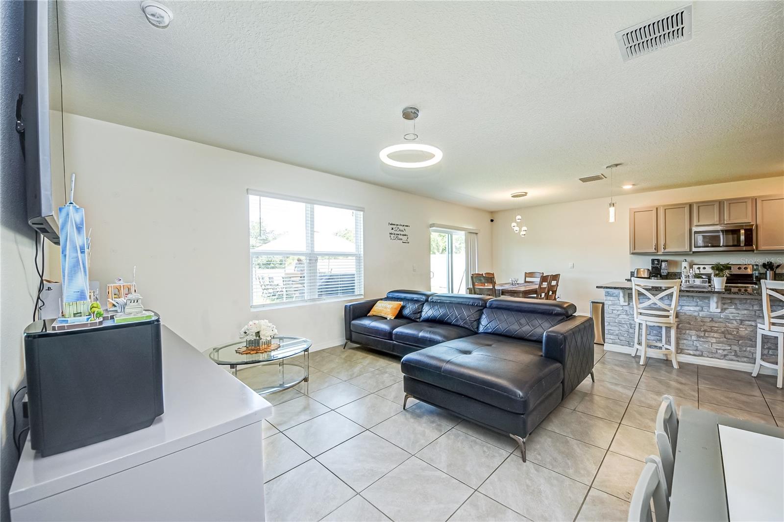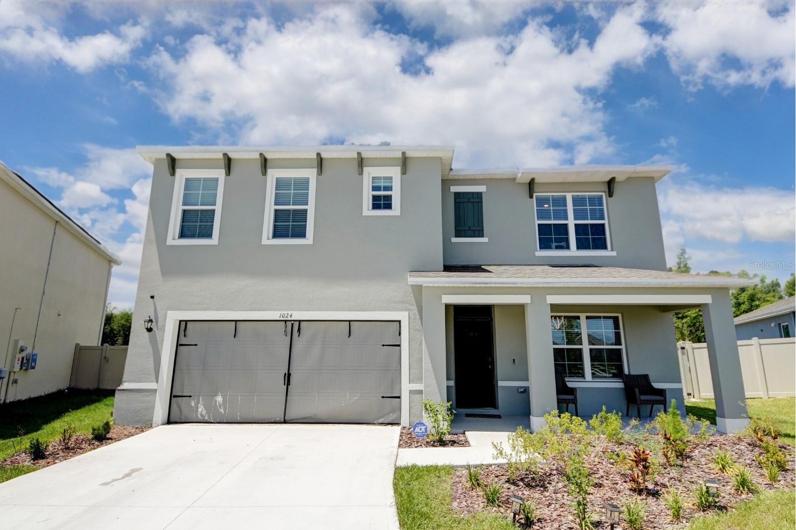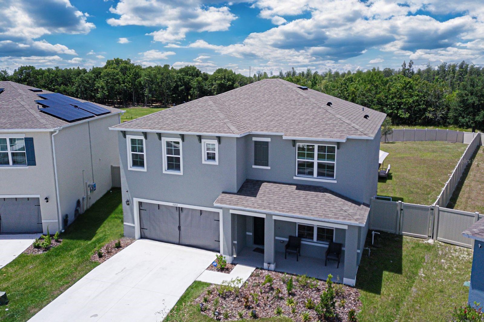Welcome to this stunning single-family home in Davenport, FL, built in 2022, nestled on an oversized premium fenced lot. This all-concrete block construction boasts 5 bedrooms and 3 bathrooms, offering an open concept design that optimizes living space. The spacious kitchen, overlooking the dining and great room, features an island with bar seating, ample cabinet and counter space, and stainless-steel appliances, perfect for entertaining. The main floor includes a flex room for work or play, a bedroom, and a full bathroom. Upstairs, the master suite features an ensuite bathroom, accompanied by three additional bedrooms, a second living area, a full bathroom, and a laundry area. Enjoy the covered lanai with ample natural light from numerous windows and sliding glass doors. Located in Davenport, close to shopping and the hospital, this home includes the smart home technology package, allowing seamless control from your smart device. Coma and see this amazing and spacious home today.
