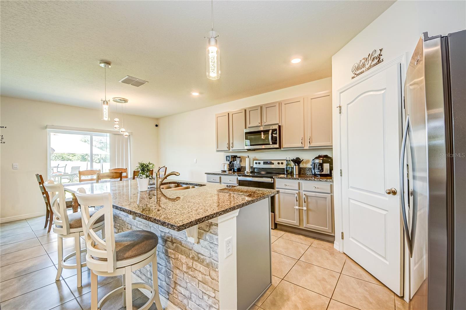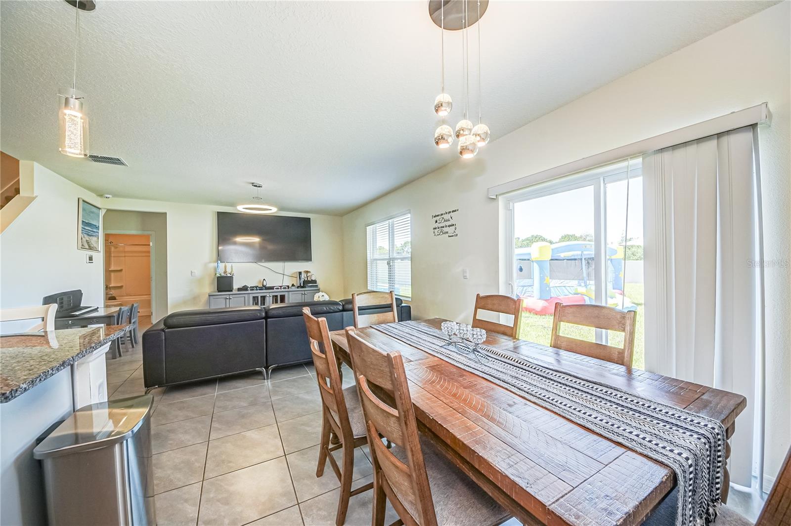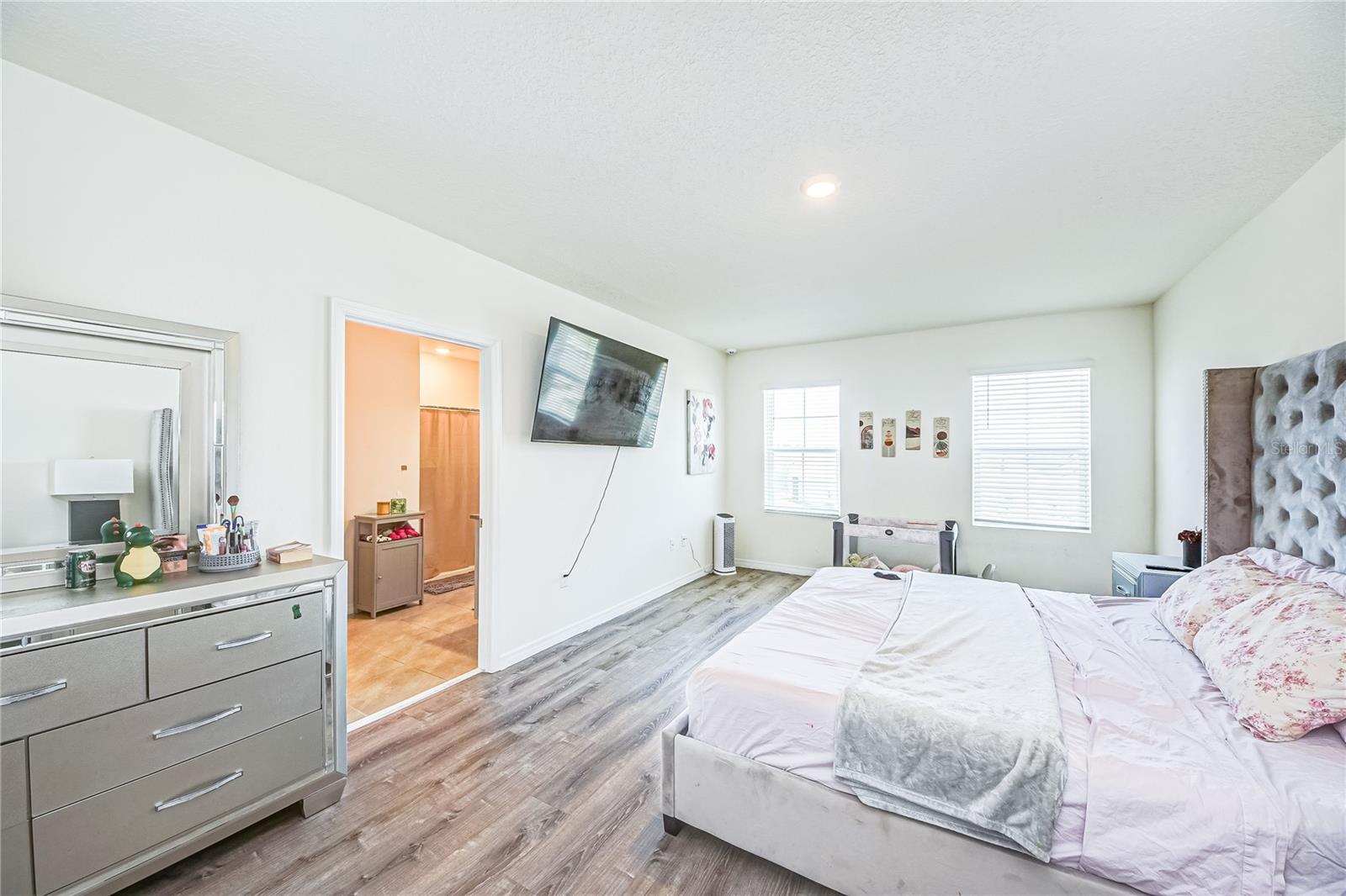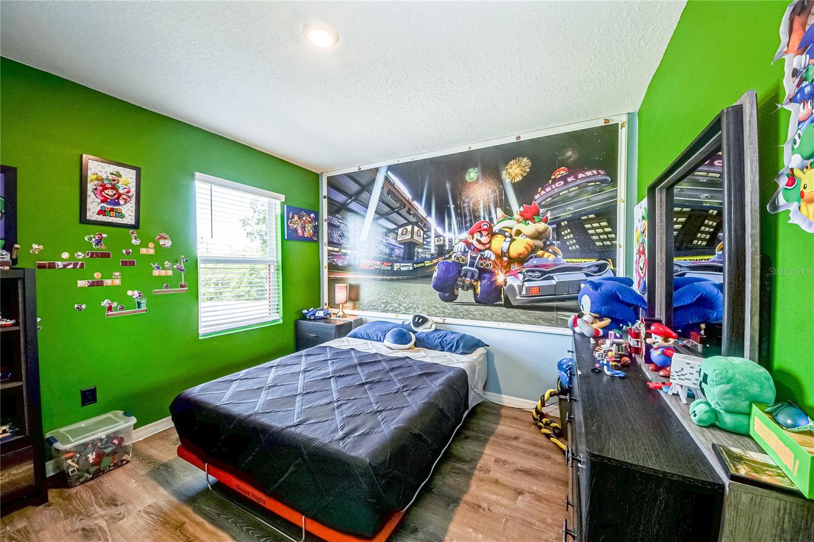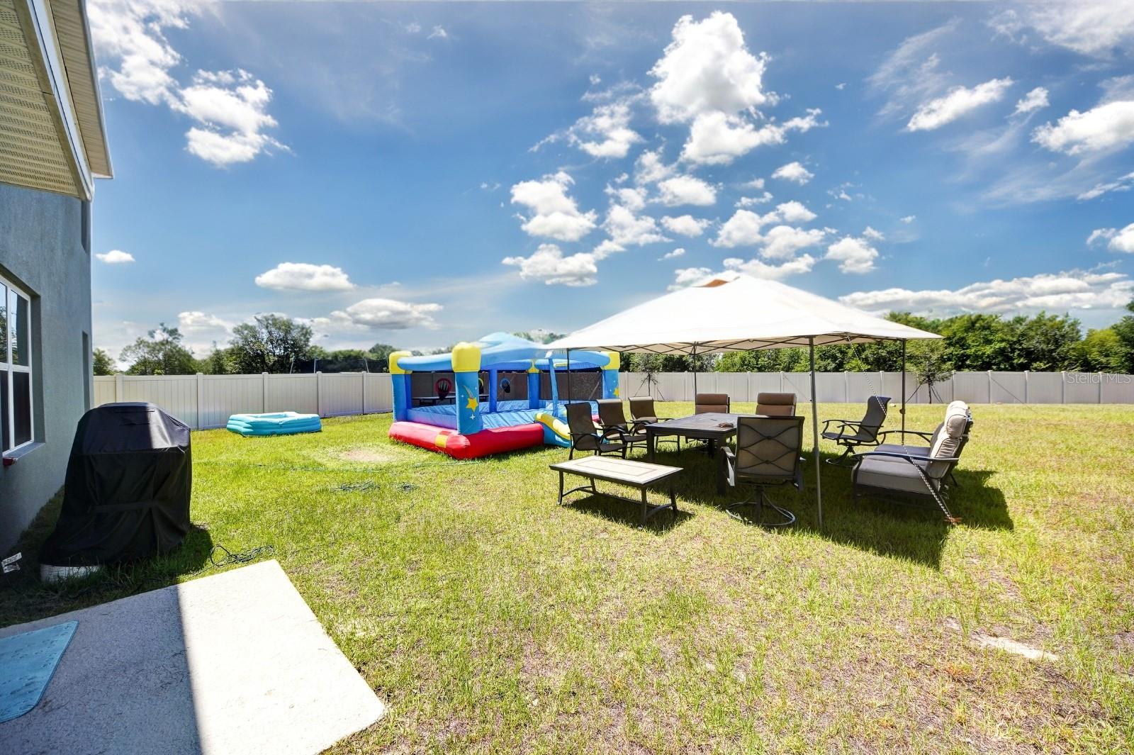 Welcome to this stunning single-family home in Davenport, FL, built in 2022, nestled on an oversized premium fenced lot. This all-concrete block construction boasts 5 bedrooms and 3 bathrooms, offering an open concept design that optimizes living space. The spacious kitchen, overlooking the dining and great room, features an island with bar seating, ample cabinet and counter space, and stainless-steel appliances, perfect for entertaining. The main floor includes a flex room for work or play, a bedroom, and a full bathroom. Upstairs, the master suite features an ensuite bathroom, accompanied by three additional bedrooms, a second living area, a full bathroom, and a laundry area. Enjoy the covered lanai with ample natural light from numerous windows and sliding glass doors. Located in Davenport, close to shopping and the hospital, this home includes the smart home technology package, allowing seamless control from your smart device. Coma and see this amazing and spacious home today.