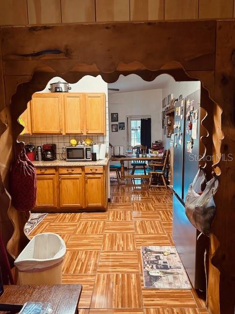 REDUCED!!! MOTIVATED seller. This home is a 3 bedroom/1 bath concrete block structure, with a newly installed A-frame metal roof, providing durability and a modern aesthetic. The laundry room is located inside and could easily be converted to another bathroom. Upgraded features include a new panel box and wiring throughout, ensuring efficient and reliable electrical systems. Most of the windows are new, excluding four, which are located in the family room/owner suite area. All new windows are double-paned, contributing to energy efficiency and enhancing interior comfort. The family room has wood-paneled walls with concrete behind them, adding a rustic charm and structural integrity. The room features drop-down ceilings, which can enhance acoustic properties and lighting options. A covered/screened/attached front porch adds to the living space, perfect for relaxation. This property boasts a landscaped yard, showcasing well-maintained greenery and flower beds. A detached one-car garage is located at the rear of the property, offering additional storage space as well as a covered, aluminum patio. A great place to sit and relax or entertain guests. The utilities feature private septic with a recently installed drain field for efficient wastewater management. Public water supply ensures reliable access to clean water. Irrigation is available with five runs (zones), facilitating easy maintenance of the landscaped yard and gardens. Located within Davenport's city limits, this home offers convenient access to shopping and commuting routes, making daily life more manageable.