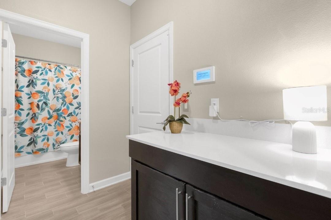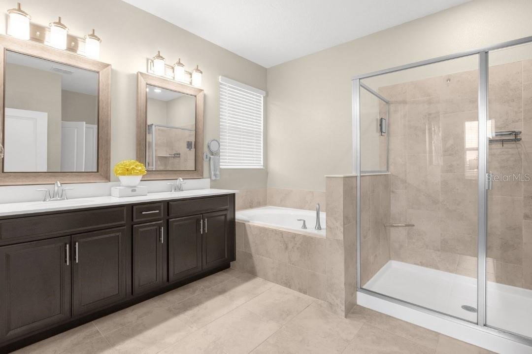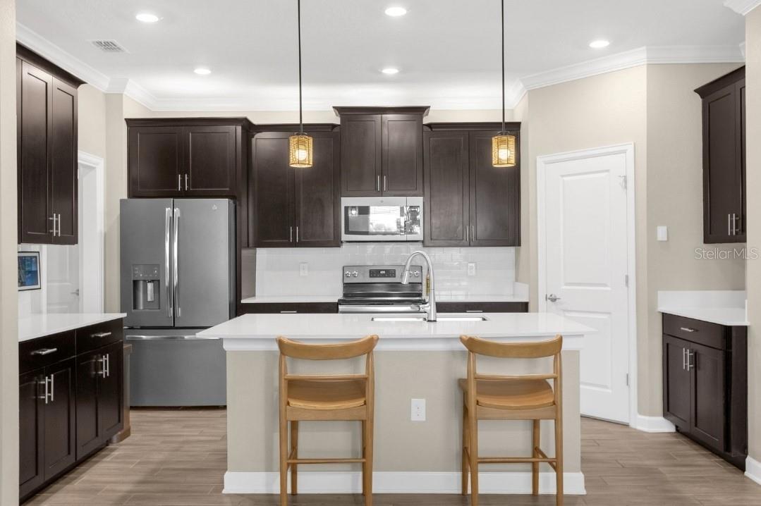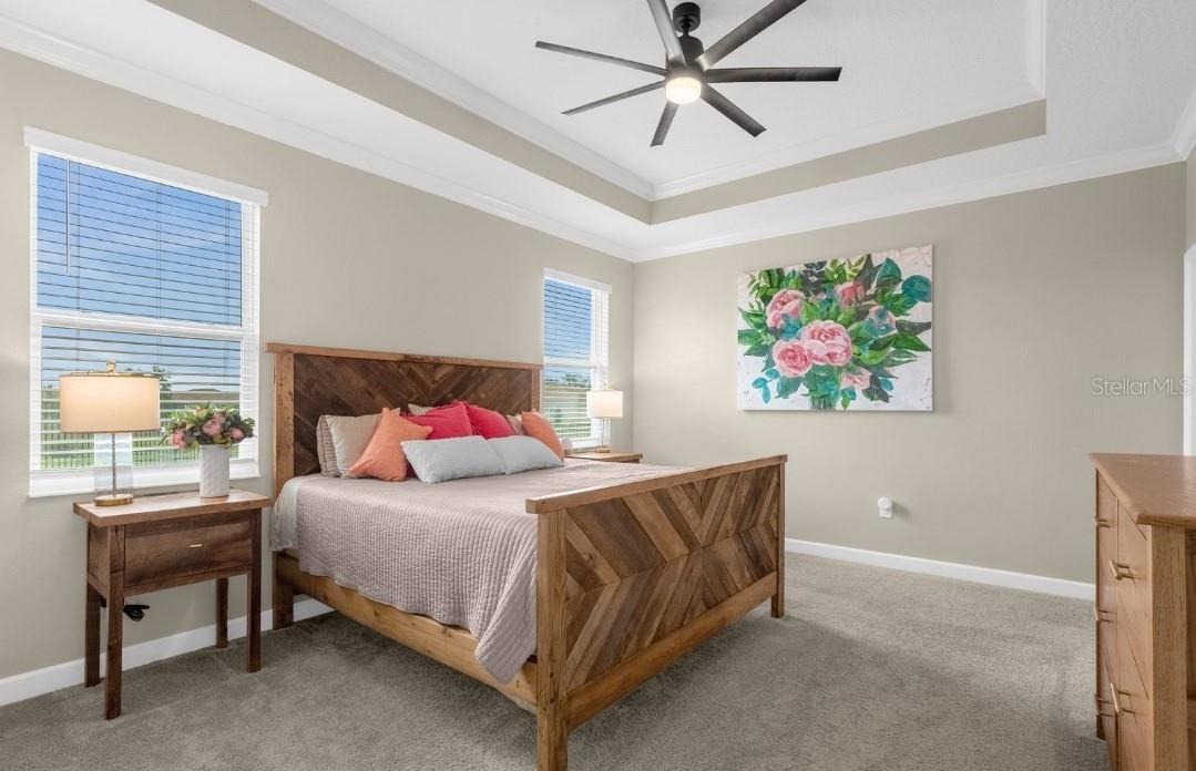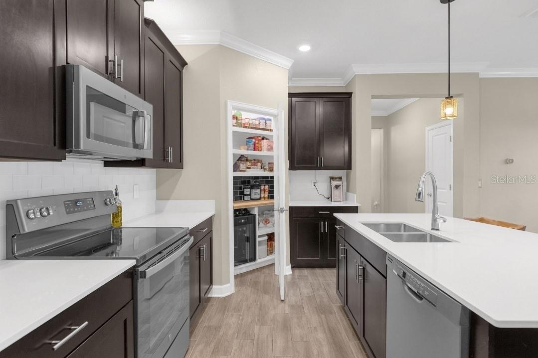 THIS WELL MAINTAINED HOME COMES WITH A GOLF AND TENNIS MEMBERSHIP IN THE HOA! Perfect floor plan offers 4 BEDROOMS, 3 FULL BATHS, and 2 CAR GARAGE ON A FENCED OVERSIZED CORNER LOT! SHOWS LIKE A MODEL! BUILT IN 2020! Job transfer makes this home available immediatly. Upon entering this home, you access two bedrooms and full bathroom on the left. An inviting entry hall leads to a GENEROUS OPEN FLOOR PLAN, perfect for entertaining guests! The kitchen overlooks the oversized living room. The kitchen offers a custom-built walk-in pantry which includes a coffee/wine bar! Abundant wood cabinetry, beautiful quartz countertops and stainless-steel appliances completes the spacious kitchen. The laundry room includes custom cabinets, making this space very organized and is connected to the primary bathroom for convenience. The Primary bedroom features a large walk-in closet and a luxurious primary bathroom with double sinks, soaking tub and walk-in tiled shower. There is also a covered lanai which is screened in, along with a large fenced in backyard, with water views. Home also has a state-of-the-art security system. HOA FEE COVERS YOUR ACCESS TO THE RESORT STYLE OASIS CLUB with lazy river and splash pad, THE PRIVATE RESIDENT ONLY PLAZA, AMAZING FITNESS CENTERS, A SAUNA, THE RETREAT, GOLF COURSE CLUB HOUSE and all its wonderful amenities. This includes full golf/ tennis membership, guard gated entries, complete lawn care, security monitoring, cable, phone and internet. CDD and trash are included in the taxes. CHAMPIONSGATE COMMUNITY IS THE PERFECT PLACE TO LIVE AND ENJOY ALL THE NEARBY DISNEY THEME PARKS, SHOPPING AND DINING EXPERIENCES THAT THE ORLANDO AREA! MOVE IN READY!