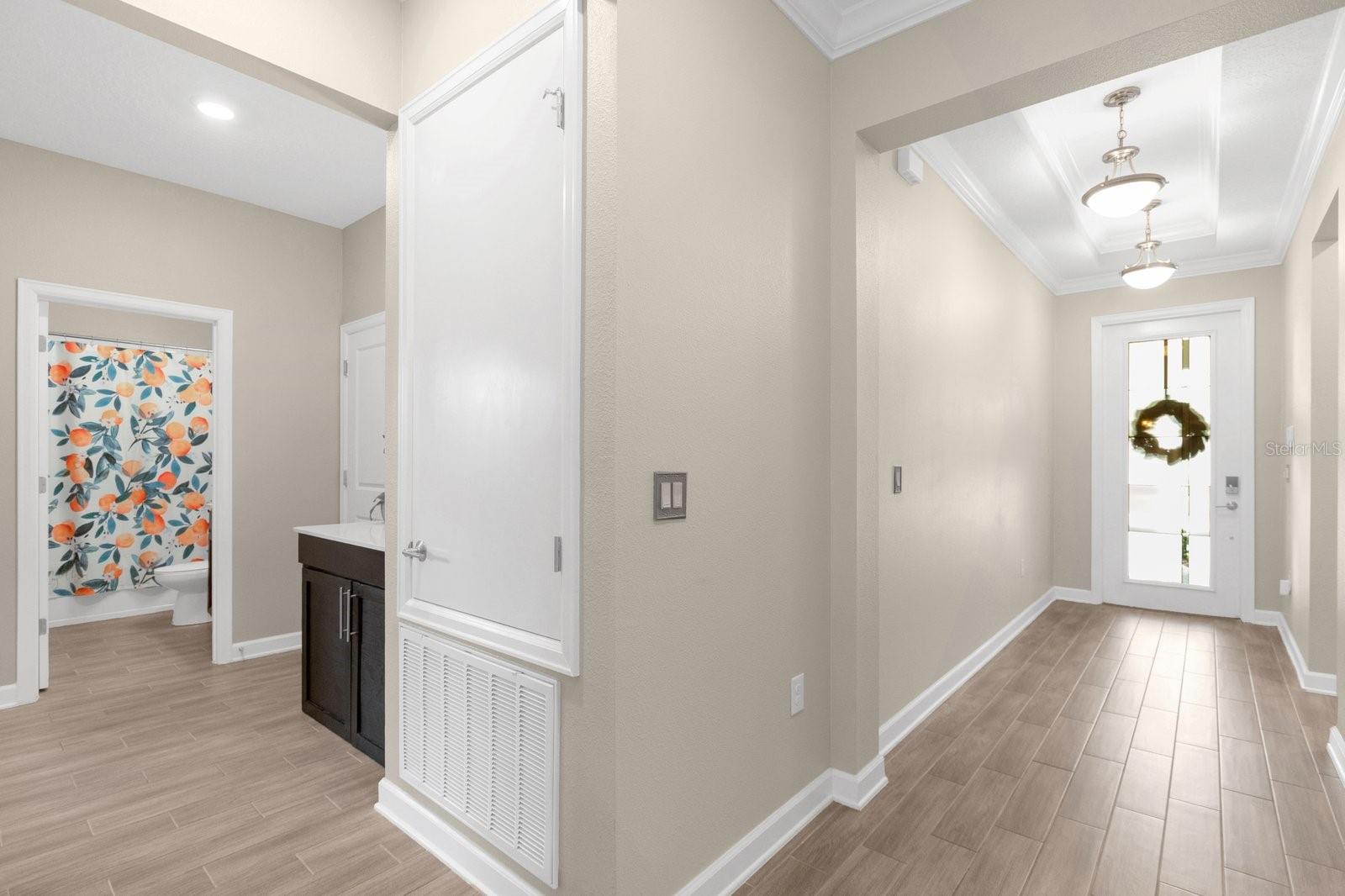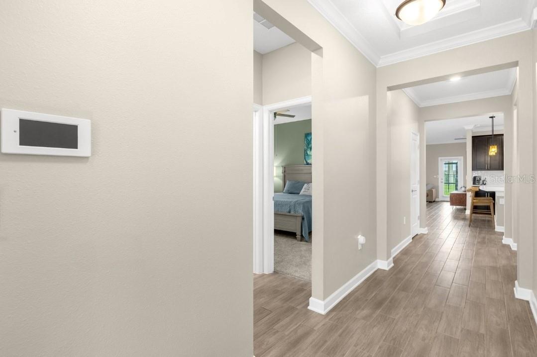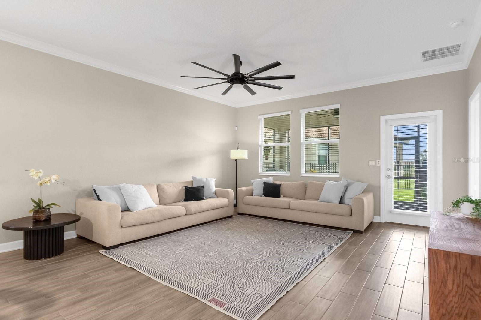 THIS WELL MAINTAINED HOME COMES WITH A GOLF AND TENNIS MEMBERSHIP IN THE HOA! Perfect floor plan offers 4 BEDROOMS, 3 FULL BATHS, and 2 CAR GARAGE ON A FENCED OVERSIZED CORNER LOT! SHOWS LIKE A MODEL! BUILT IN 2020! Job transfer makes this home available immediatly. Upon entering this home, you access two bedrooms and full bathroom on the left. An inviting entry hall leads to a GENEROUS OPEN FLOOR PLAN, perfect for entertaining guests! The kitchen overlooks the oversized living room. The kitchen offers a custom-built walk-in pantry which includes a coffee/wine bar! Abundant wood cabinetry, beautiful quartz countertops and stainless-steel appliances completes the spacious kitchen. The laundry room includes custom cabinets, making this space very organized and is connected to the primary bathroom for convenience. The Primary bedroom features a large walk-in closet and a luxurious primary bathroom with double sinks, soaking tub and walk-in tiled shower. There is also a covered lanai which is screened in, along with a large fenced in backyard, with water views. Home also has a state-of-the-art security system. HOA FEE COVERS YOUR ACCESS TO THE RESORT STYLE OASIS CLUB with lazy river and splash pad, THE PRIVATE RESIDENT ONLY PLAZA, AMAZING FITNESS CENTERS, A SAUNA, THE RETREAT, GOLF COURSE CLUB HOUSE and all its wonderful amenities. This includes full golf/ tennis membership, guard gated entries, complete lawn care, security monitoring, cable, phone and internet. CDD and trash are included in the taxes. CHAMPIONSGATE COMMUNITY IS THE PERFECT PLACE TO LIVE AND ENJOY ALL THE NEARBY DISNEY THEME PARKS, SHOPPING AND DINING EXPERIENCES THAT THE ORLANDO AREA! MOVE IN READY!