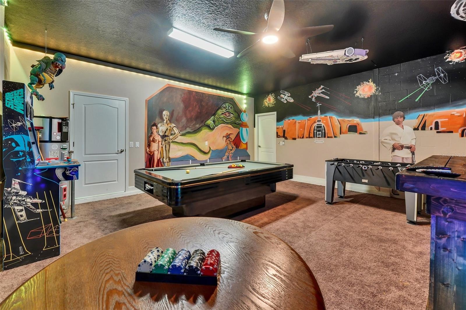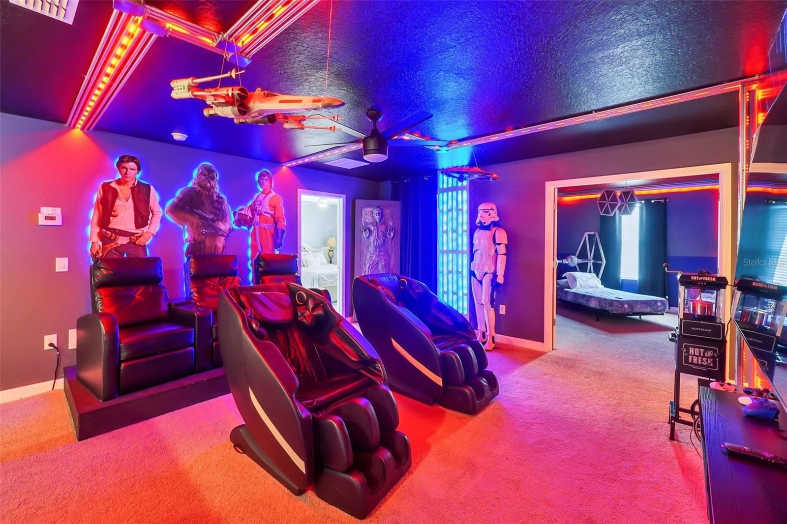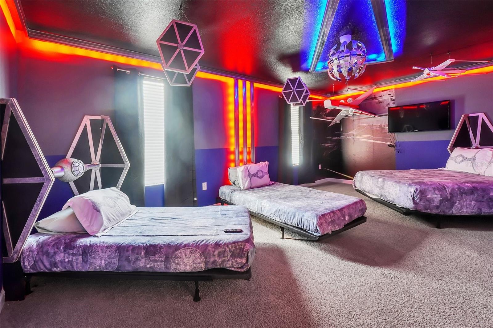 Welcome to the exquisite Champions Gate, your perfect Airbnb/VRBO investment opportunity! This stunning home boasts over $75k in upgrades, fully furnished and ready to impress. Ideal for both short-term and long-term rentals, this Phase 1 gem features 9 spacious bedrooms, 5 bathrooms, a theater room, game room, and a private pool with a lanai. Step into luxury living with an open floor plan, a gourmet kitchen with 42" cabinets and granite countertops, and a main floor master suite. Themed rooms add charm and appeal throughout. Explore the community with ease using golf carts and enjoy the resort-style amenities including the Oasis Club with its 14,000 sq ft clubhouse, restaurant, movie theater, fitness center, game room, tiki bar, lazy river, cabanas, and more! Adjacent to the newly finished Retreat Club featuring a full water park, pool, and restaurant, every day feels like a vacation. HOA covers access to these exclusive clubs, gated security, lawn care, trash service, and even cable, phone, and internet, making ownership effortless. Located in Champions Gate, just minutes from Orlando's theme parks, golf courses, shopping, and dining, this is more than a home—it's a lifestyle investment you don't want to miss. Schedule your tour today!"