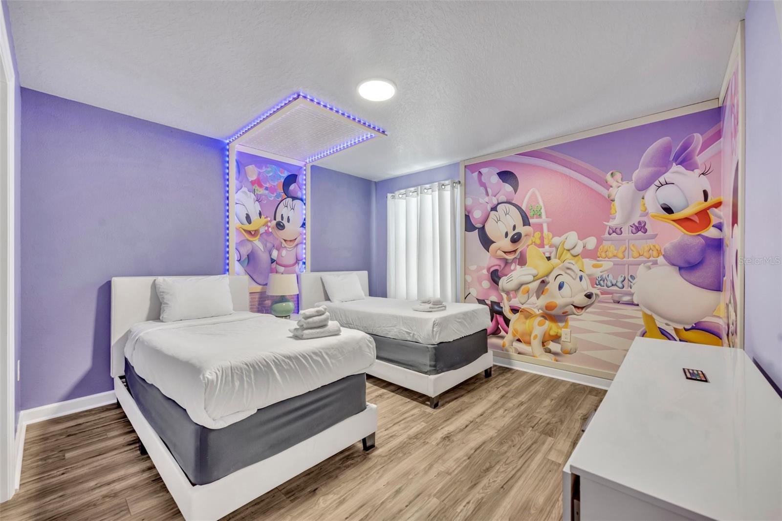 Introducing a remarkable luxury short/long-term rental retreat in the esteemed Champions Gate community of sunny Florida, boasting over $100K in breathtaking design upgrades. FRESHLY PAINTED throughout the entire home, this exquisite 8-bedroom, 5-bathroom haven has been meticulously enhanced with themed bedrooms, a converted garage, and a state-of-the-art movie theater, solidifying its status as a premier destination among self-managed vacation rentals. This high-end luxury turnkey investment property yields upwards of $100,000 USD in gross rentals annually. Outside, the property showcases a two-car driveway, walkway pavers, and a tiled roof, exuding curb appeal and sophistication. Upon entry, guests are immediately drawn to the home's elegance and style. The kitchen features stainless steel appliances and 42" cabinets, ideal for crafting culinary delights for visitors. Disney-themed rooms and quality laminate flooring throughout the bedrooms and living areas further enhance the home's allure, while modern and functional decor adds a touch of sophistication. Outdoors, a sparkling private pool and hot tub, complete with an Aqualink remote control and monitoring system, await, offering the perfect respite from the Florida heat on the full-width lanai. Indulge in cinematic experiences in the private movie theater room with LED lights installed, boasting plush seating and a 100-inch high-definition projector. Efficiency is paramount with Seer 15 dual-zone A/C, while residents also enjoy access to the Oasis Club at Champions Gate, featuring resort-style amenities such as pools, a lazy river, and a fitness center. Conveniently located near Walt Disney World, Universal Studios, golf courses, shopping, and dining, this home is a highly sought-after destination for vacationers. For those seeking a self-managed, high-performing short-term rental property that sets a new standard for luxury and entertainment, look no further. Don't miss the opportunity to own this stunning property and embark on a journey of impressive rental income and unforgettable guest experiences. Schedule a showing today and let this remarkable property exceed your expectations.