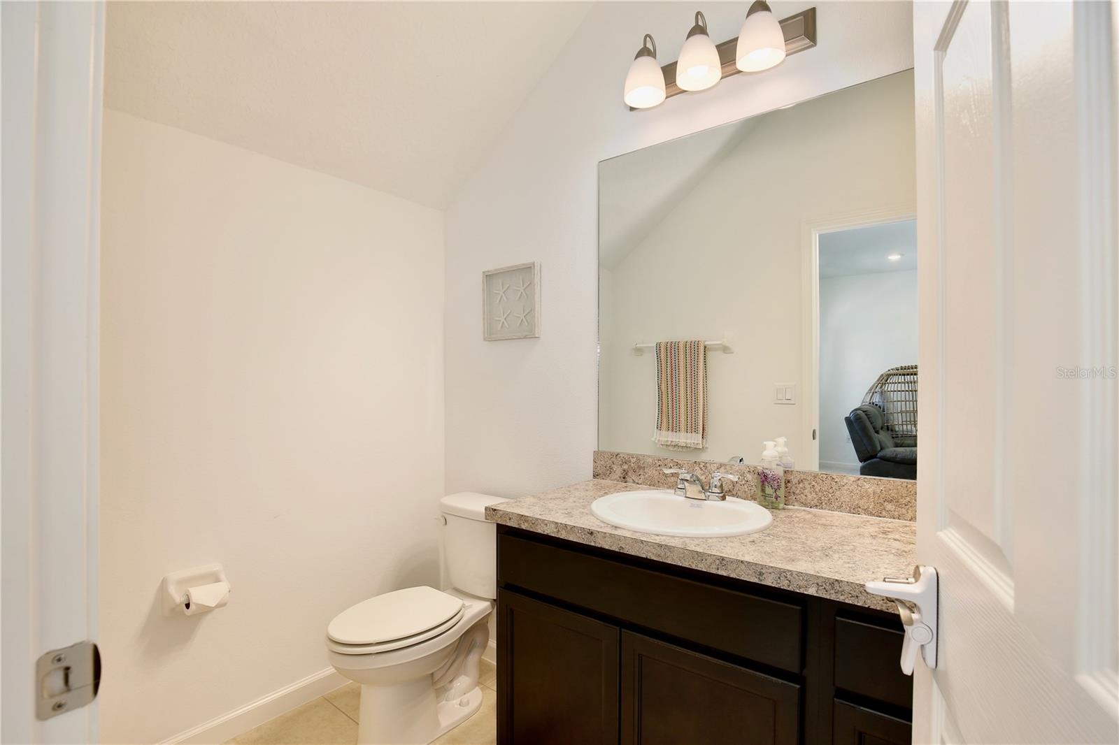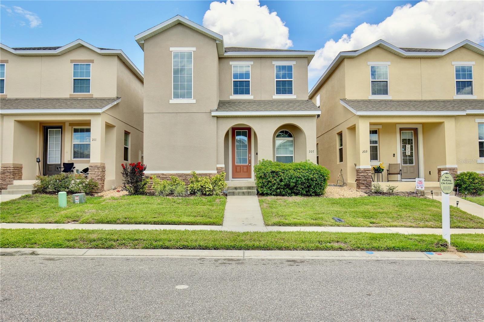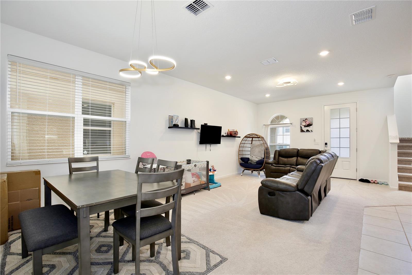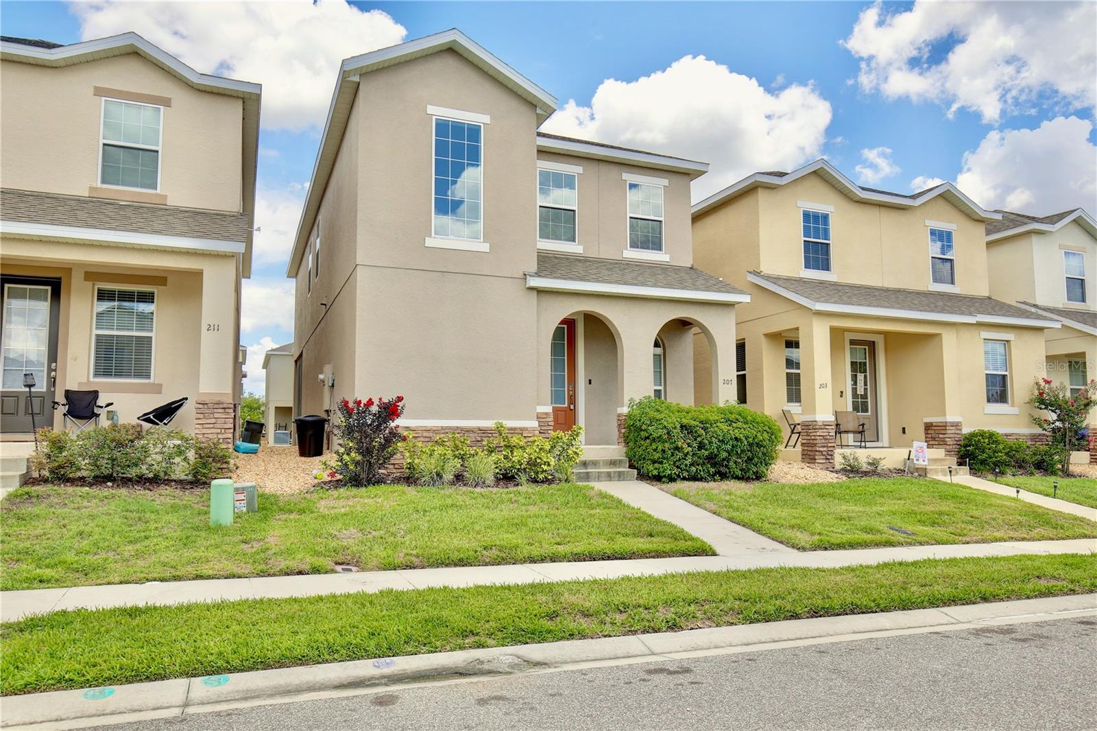Lowest Listed Price in the Community- Step into the essence of modern comfort with this stunning three bedroom, two and a half bath house nestled in a gated community. With its curb appeal and landscaping, this home features stone facade and a welcoming covered front porch that sets the tone for the inviting ambiance within. Once inside, you'll be greeted by an open floor plan that is both airy and bright, painted in soothing neutral colors that provide the perfect canvas for your personal touch. Adorned with modern LED light fixtures, the living room seamlessly flows into the dining area, granting easy access to the rear entry one car garage. The kitchen is a chef's delight featuring mocha shaker cabinets, gleaming stainless steel appliances, and a center island with bar top seating. Sliding glass doors open to the covered patio, an idyllic spot for summer barbecues and family gatherings. A convenient half bath on the first floor caters to guests, while the staircase leads to a loft space that can transform into a home office, gym, theater, or playroom. The spacious primary suite boasts a walk in closet and ensuite bath with dual sinks, a glass door shower, and a separate bathtub. Two additional guest bedrooms, a full guest bath with a tub/shower combo, and a laundry room complete the second floor. A community swimming pool is walking distance away, awaiting summer fun with family and friends in the Florida sunshine. With quick access to highway 27 and I-4, shopping and dining, Target, Walmart, HomeGoods, and major attractions including Disney World and Disney Springs, everything you need is within close proximity. Don't miss your chance to own this captivating home—call today to schedule a showing and start making memories that will last a lifetime!
