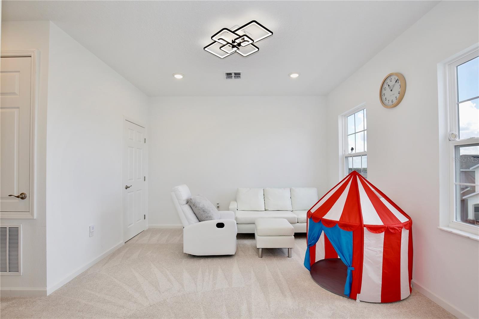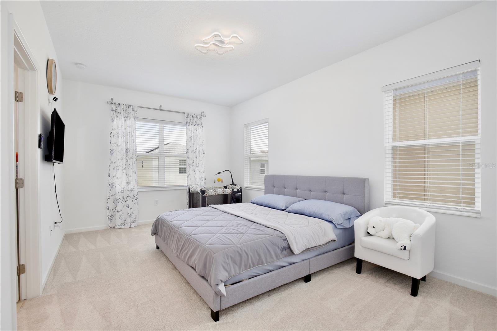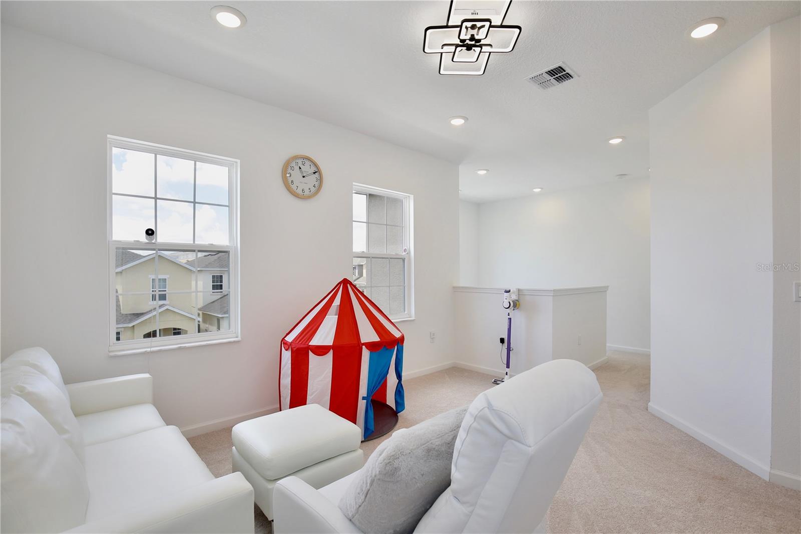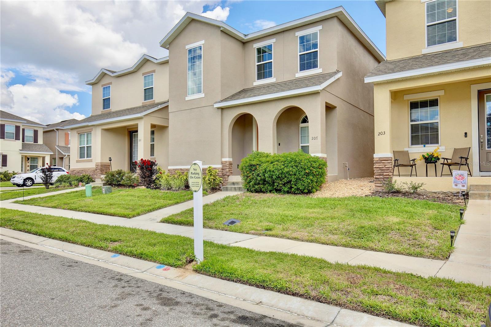 Lowest Listed Price in the Community- Step into the essence of modern comfort with this stunning three bedroom, two and a half bath house nestled in a gated community. With its curb appeal and landscaping, this home features stone facade and a welcoming covered front porch that sets the tone for the inviting ambiance within. Once inside, you'll be greeted by an open floor plan that is both airy and bright, painted in soothing neutral colors that provide the perfect canvas for your personal touch. Adorned with modern LED light fixtures, the living room seamlessly flows into the dining area, granting easy access to the rear entry one car garage. The kitchen is a chef's delight featuring mocha shaker cabinets, gleaming stainless steel appliances, and a center island with bar top seating. Sliding glass doors open to the covered patio, an idyllic spot for summer barbecues and family gatherings. A convenient half bath on the first floor caters to guests, while the staircase leads to a loft space that can transform into a home office, gym, theater, or playroom. The spacious primary suite boasts a walk in closet and ensuite bath with dual sinks, a glass door shower, and a separate bathtub. Two additional guest bedrooms, a full guest bath with a tub/shower combo, and a laundry room complete the second floor. A community swimming pool is walking distance away, awaiting summer fun with family and friends in the Florida sunshine. With quick access to highway 27 and I-4, shopping and dining, Target, Walmart, HomeGoods, and major attractions including Disney World and Disney Springs, everything you need is within close proximity. Don't miss your chance to own this captivating home—call today to schedule a showing and start making memories that will last a lifetime!