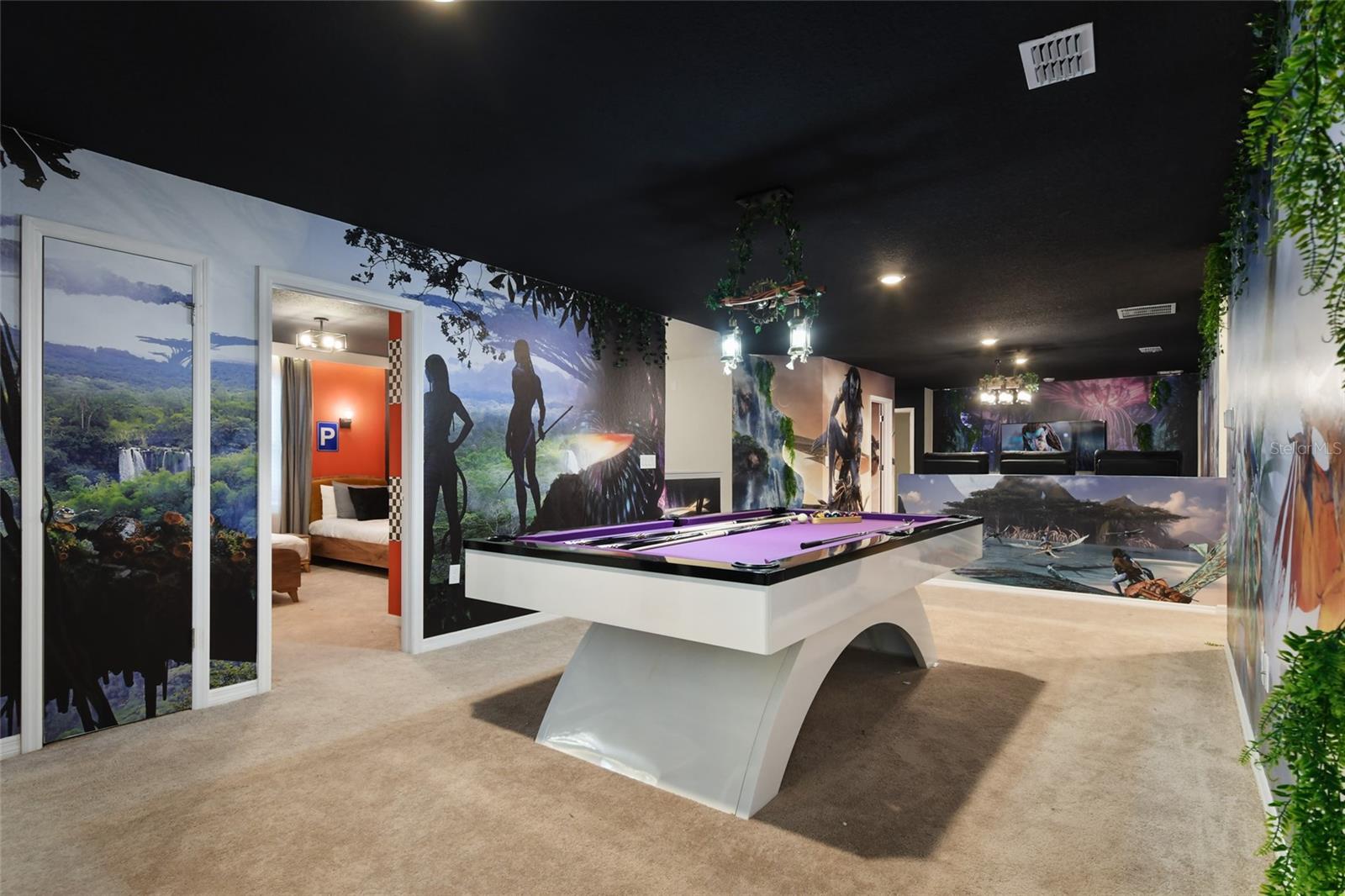 This beautifully decorated home features themed and customized furniture, making it highly desirable for rentals with excellent occupancy rates and daily rates. The property boasts a spacious gathering room, multiple guest bedrooms, an open kitchen, a private pool, and a luxurious covered lanai, offering a superb vacation experience. No expense was spared in the design, from the flooring to the lighting. The first floor includes an Owner’s Suite, an oversized kitchen, and an open gathering room, while the second floor offers a game room/loft space and 6 additional bedrooms. Accommodating up to 20 guests comfortably, this home is perfect for both full-time residence or a second home. Located in Windsor Island, the property enjoys top-notch amenities including a zero-entry resort pool, lazy river, water slides, splash pad, fitness center, game room, mini-golf, hammock garden, sand volleyball court, basketball court, private cabanas, poolside and ice-cream/snack bars, and a 24-hour guarded gate for enhanced security.